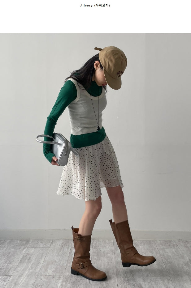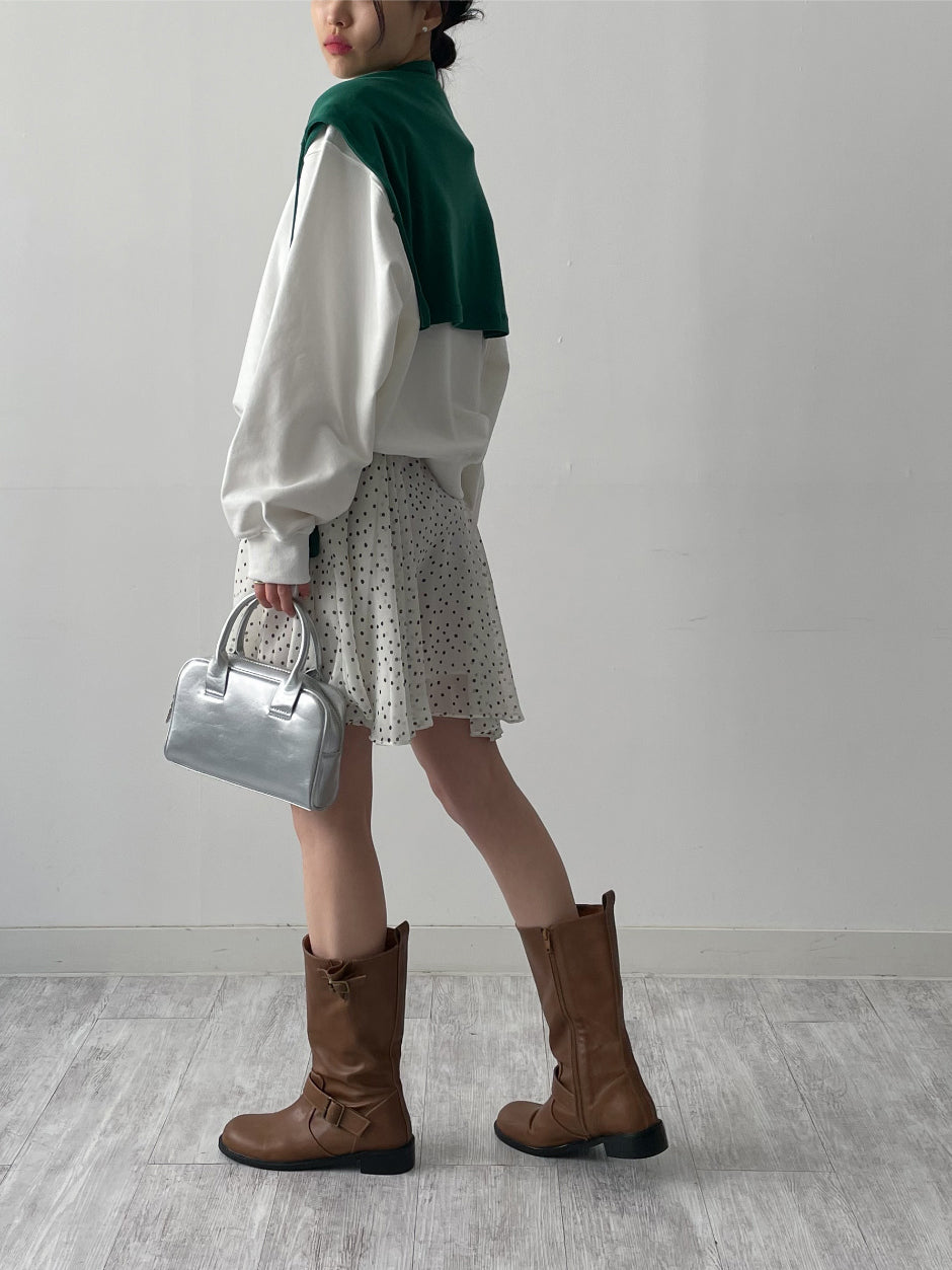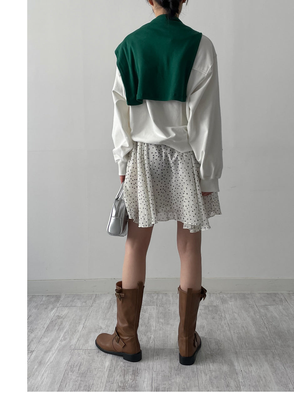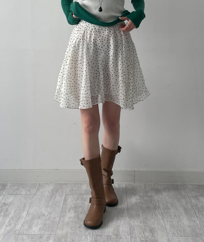 ドットシフォンフレアミディスカート