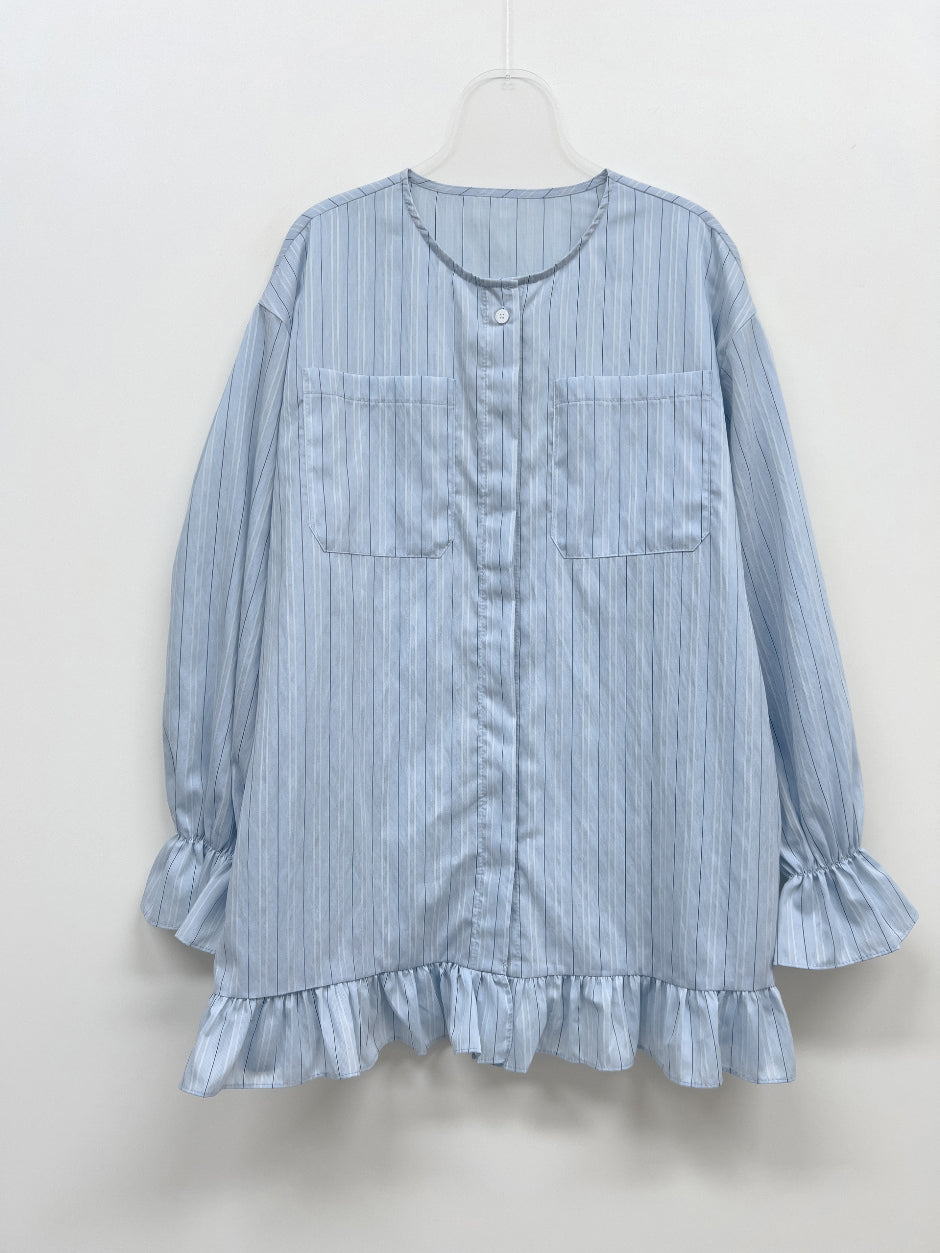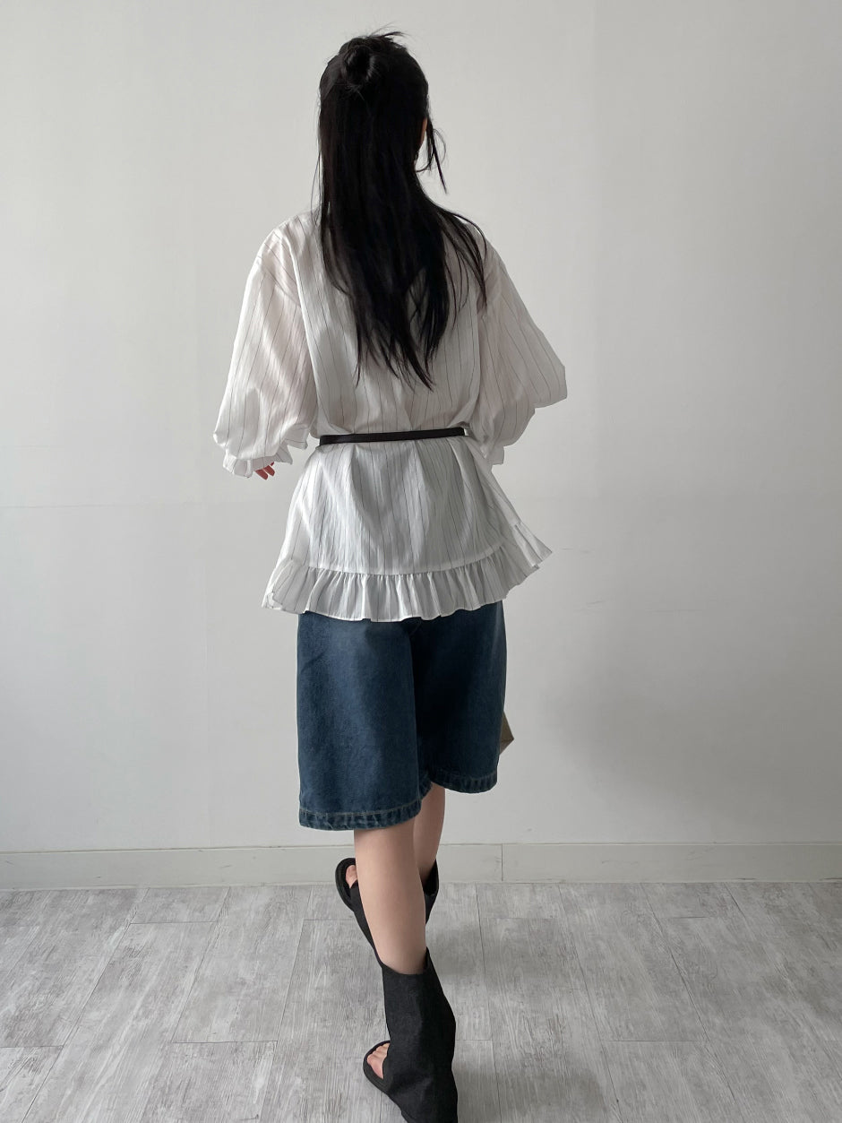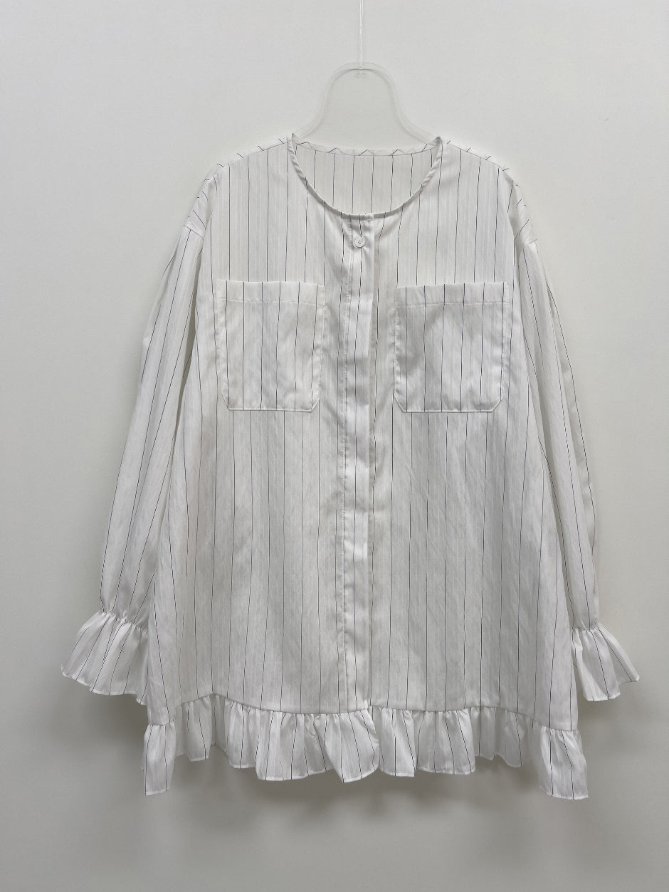 Frill Stripe Loose Fit Blouse