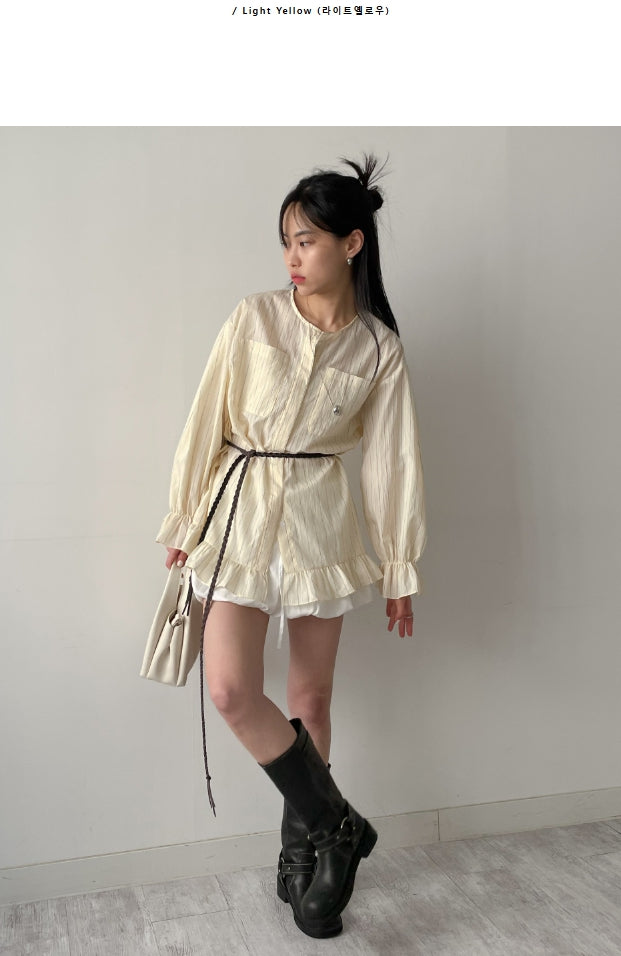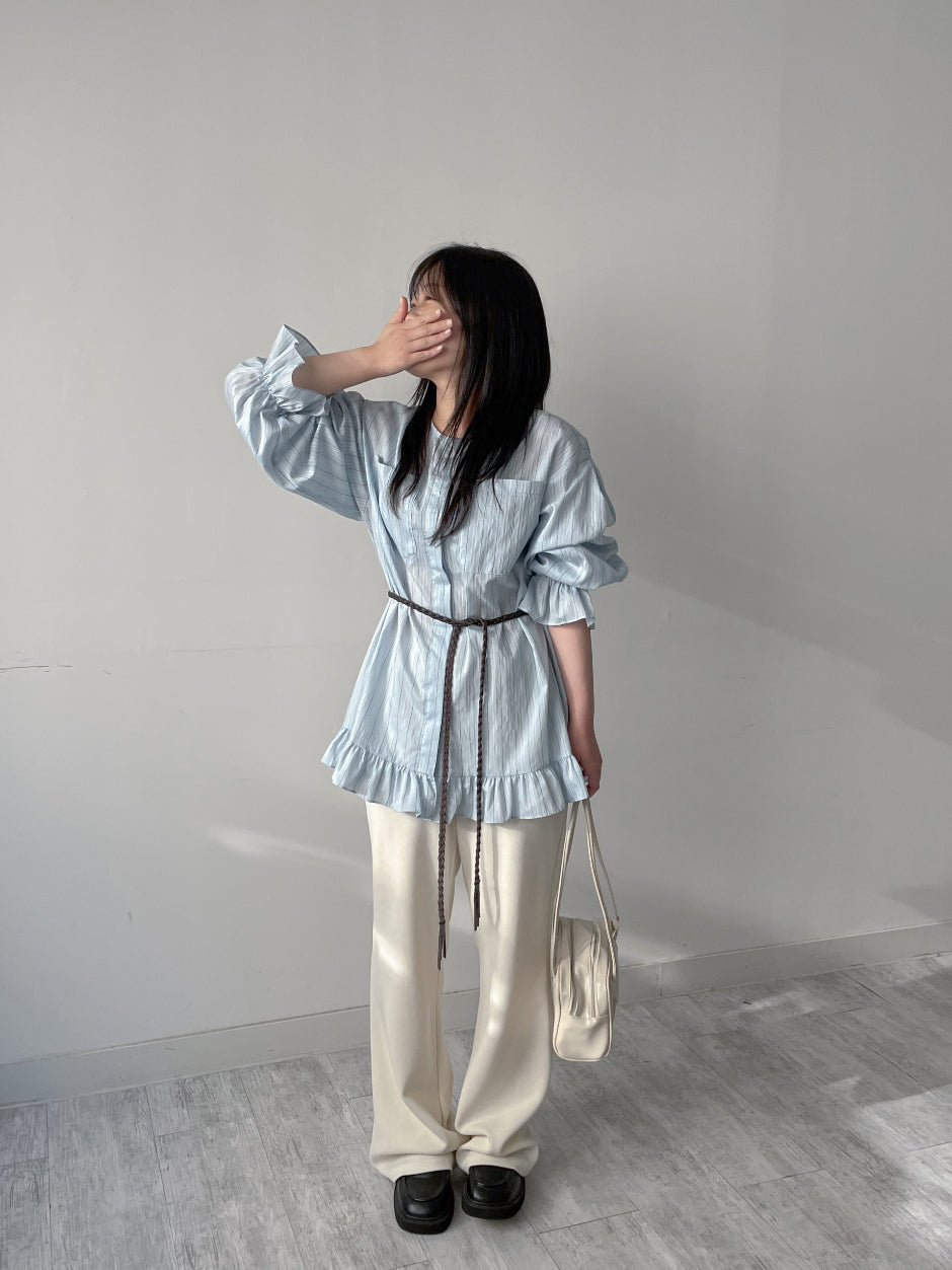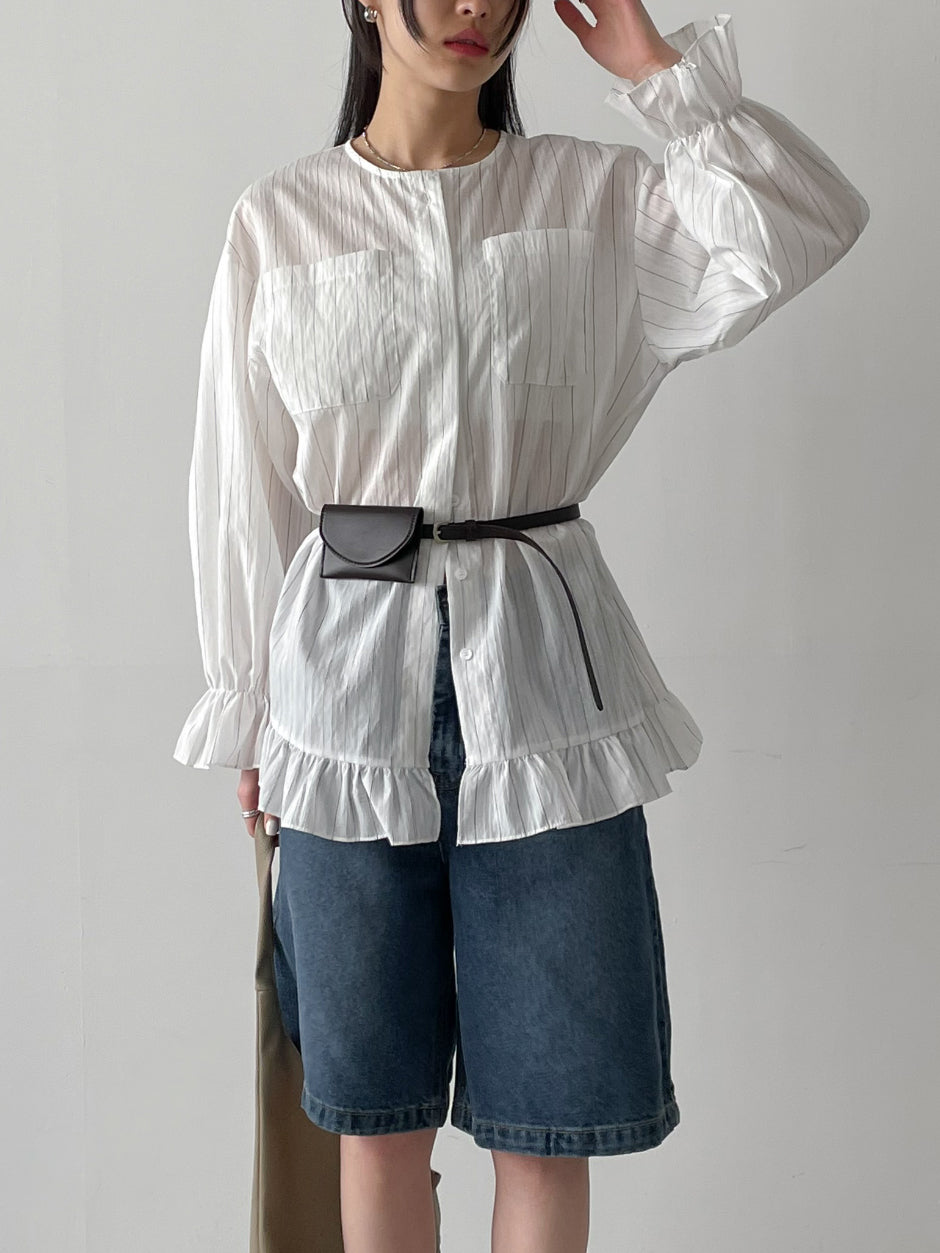 Frill Stripe Loose Fit Blouse