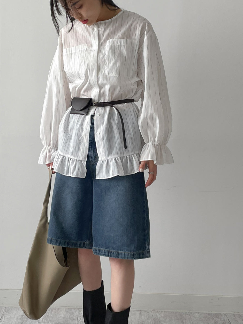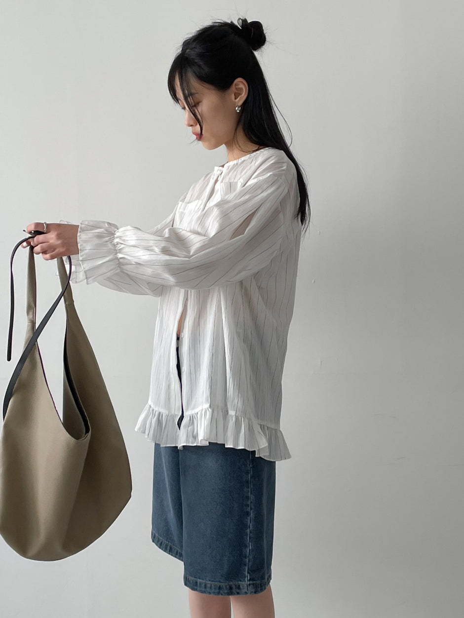 フリルストライプルーズフィットブラウス