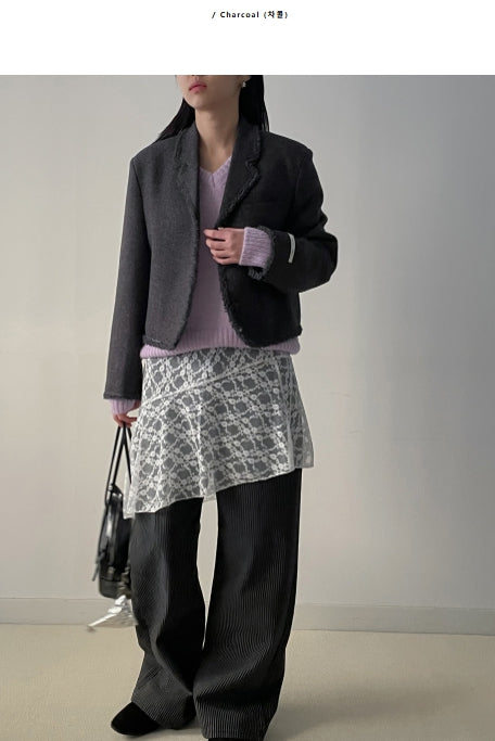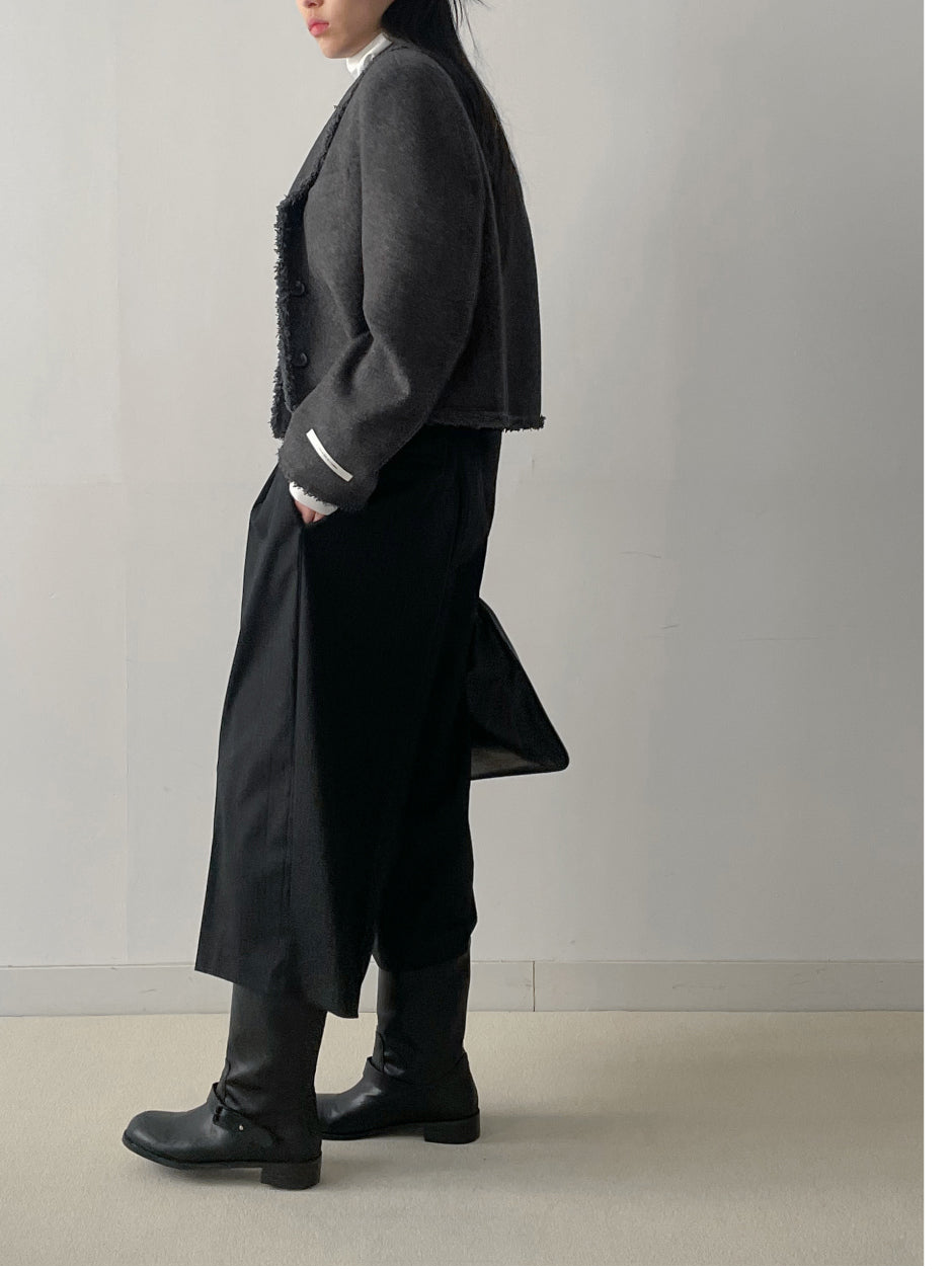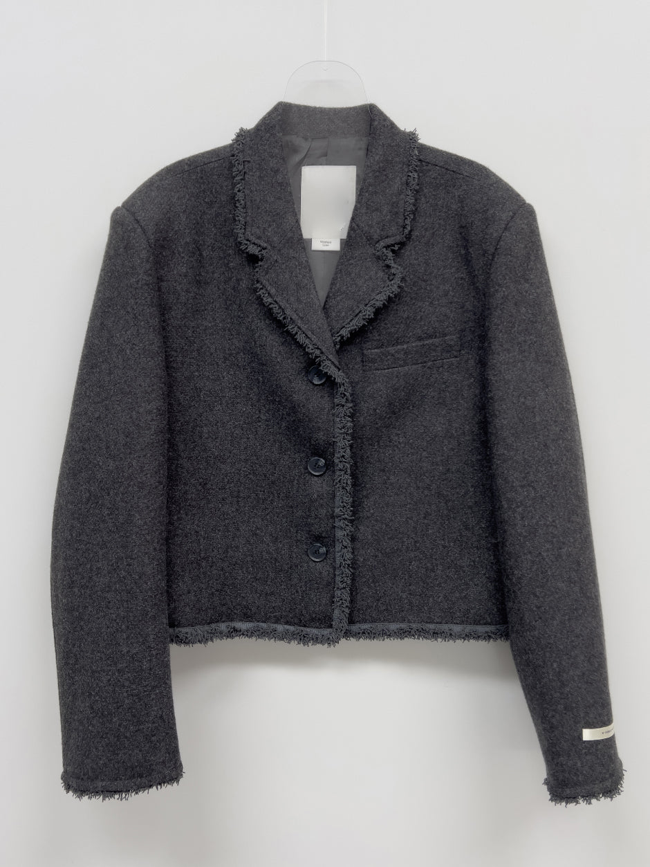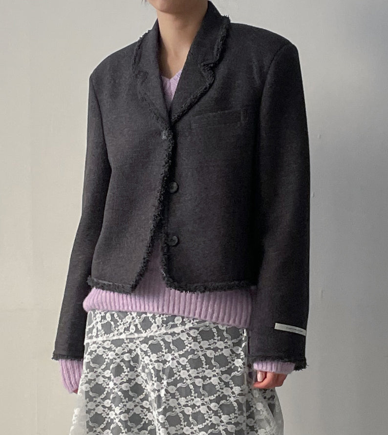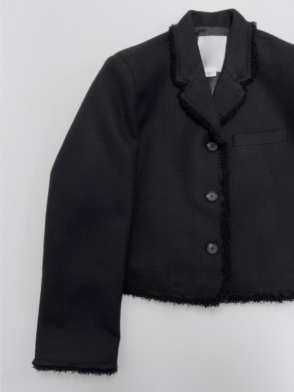 フリンジ3ボタンオーバーフィットクロップジャケット