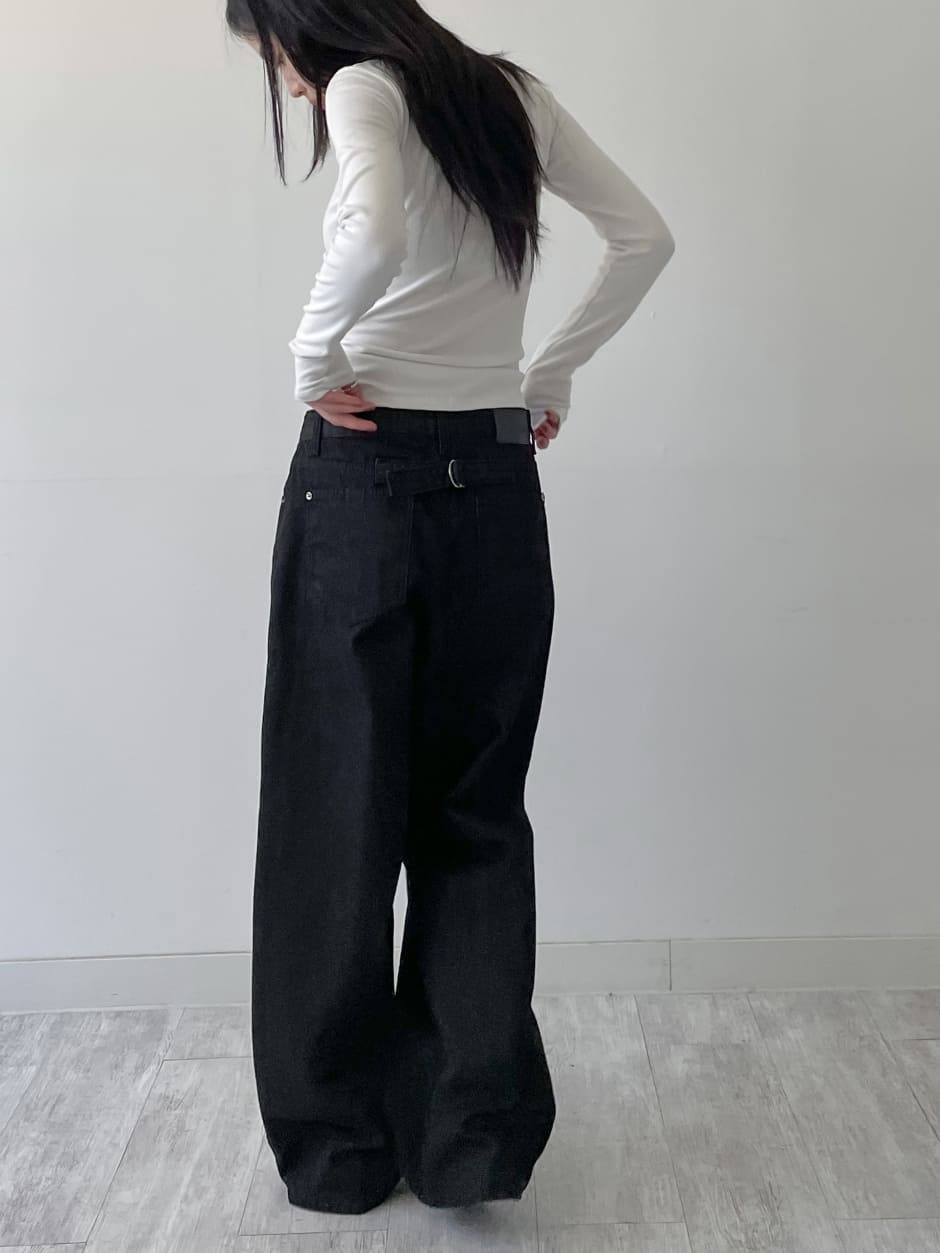 [FW/裏起毛]シンチバックセルベージワイドデニムパンツ