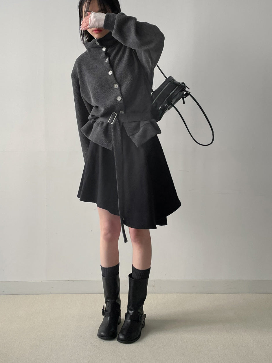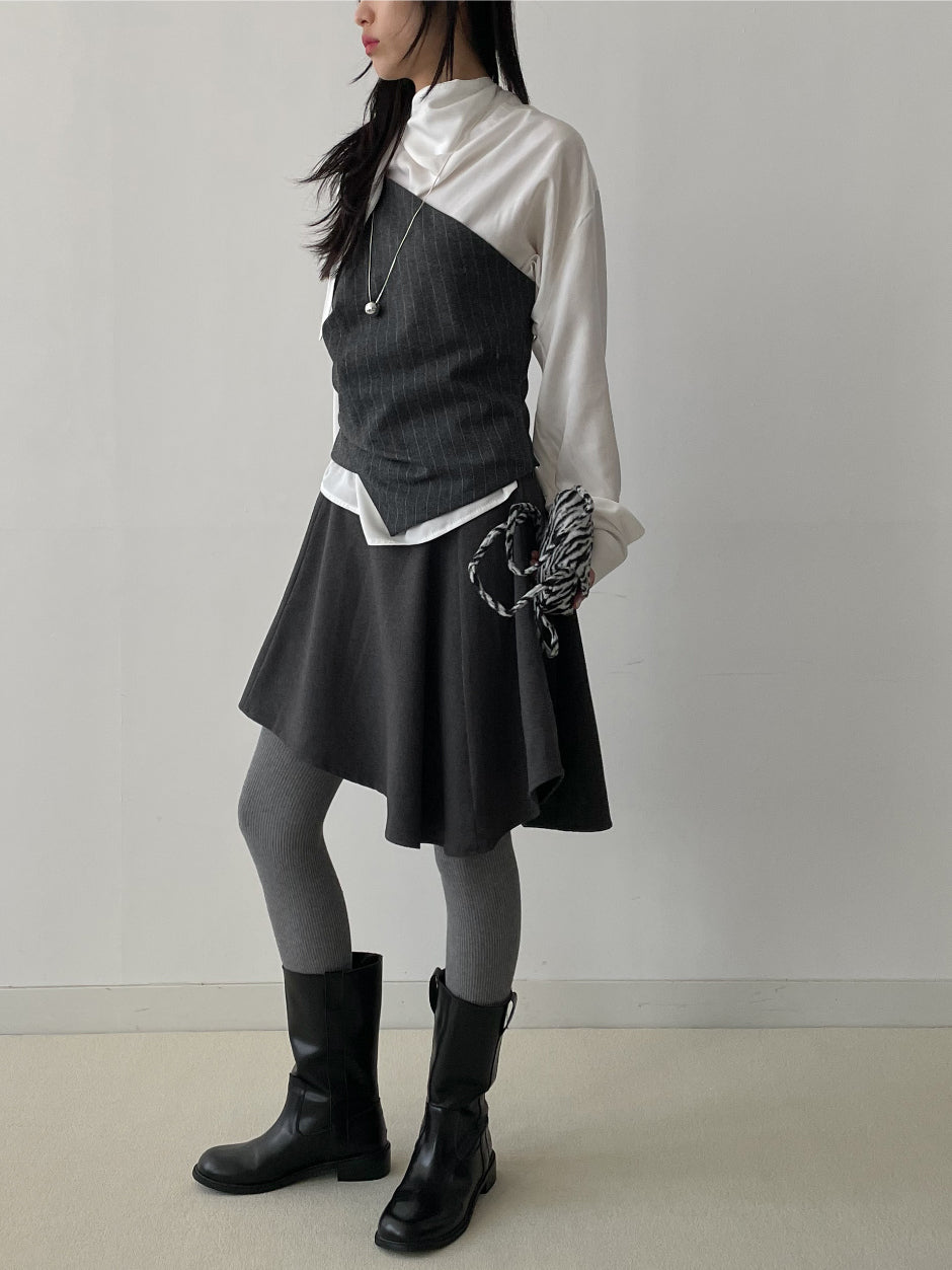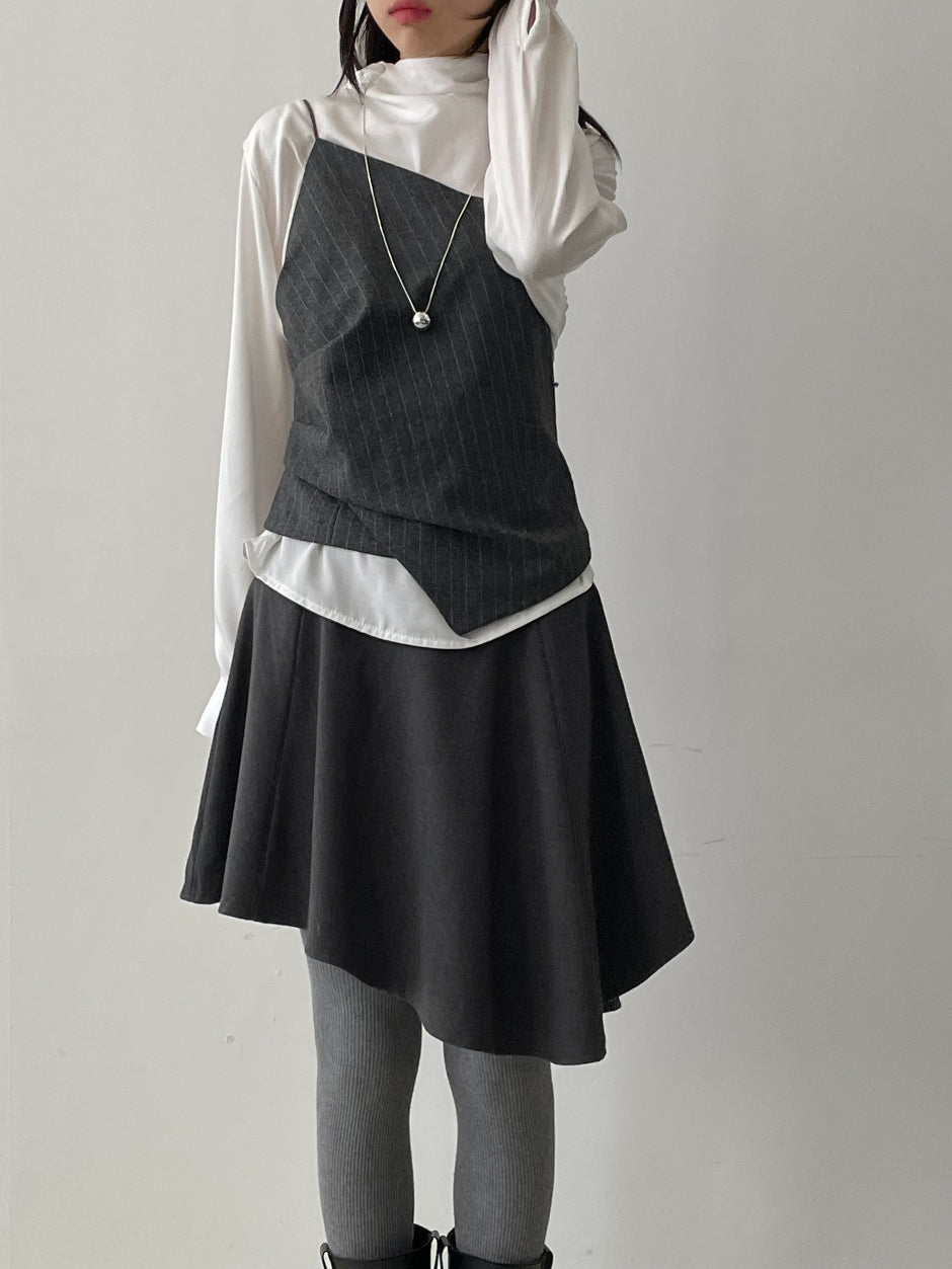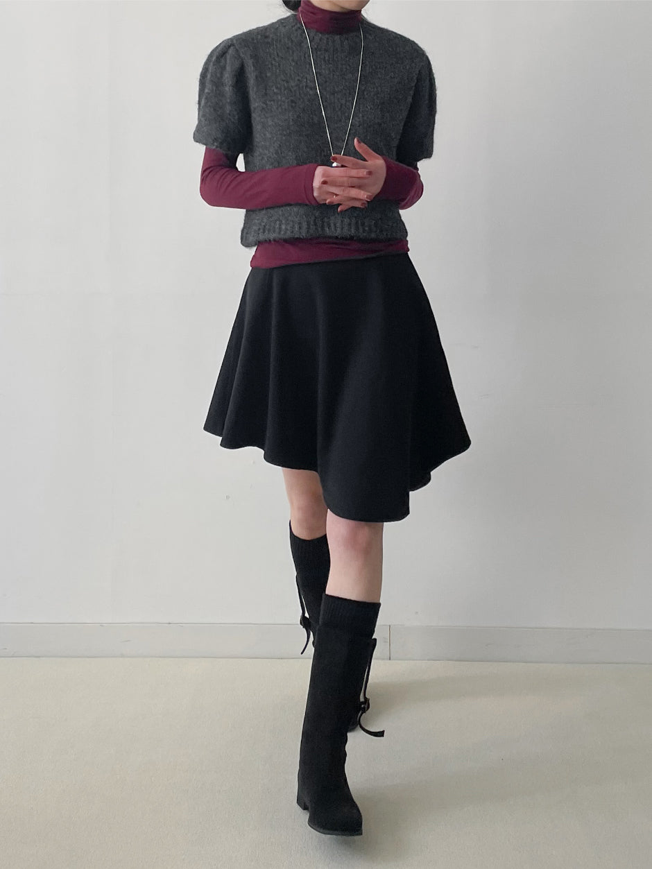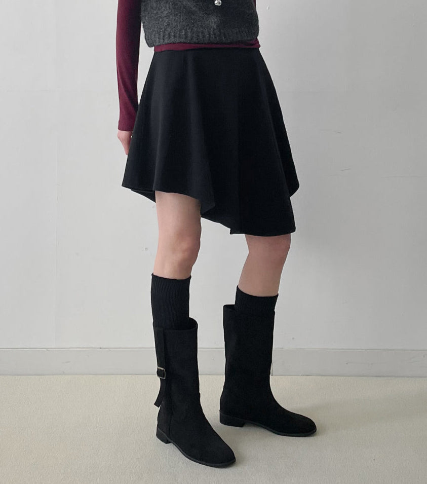 [FW/Brushed] Unbalance Midi Flare Skirt
