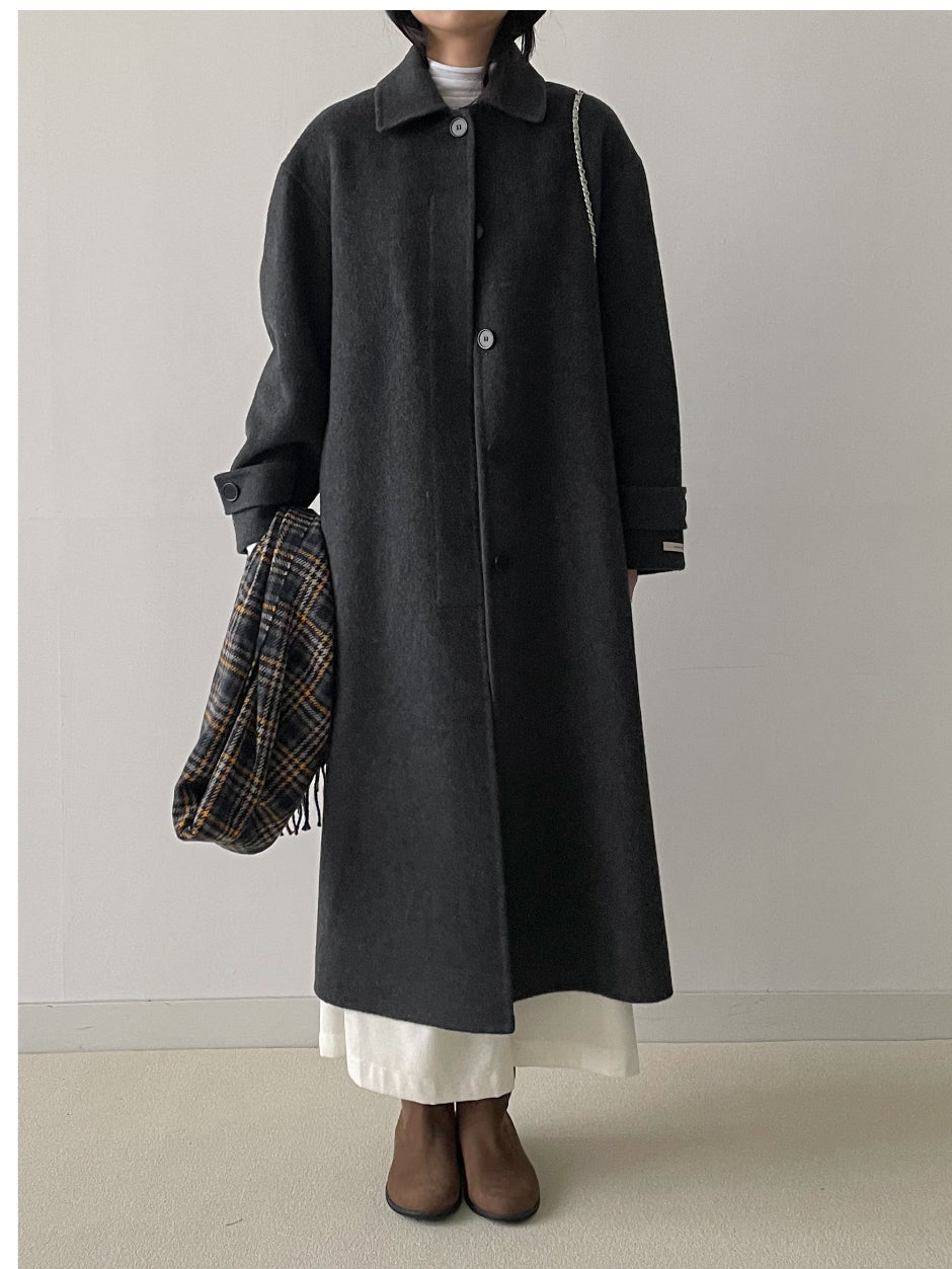 [handmade/wool90%] Mohair Hidden Robe Handmade Long Coat