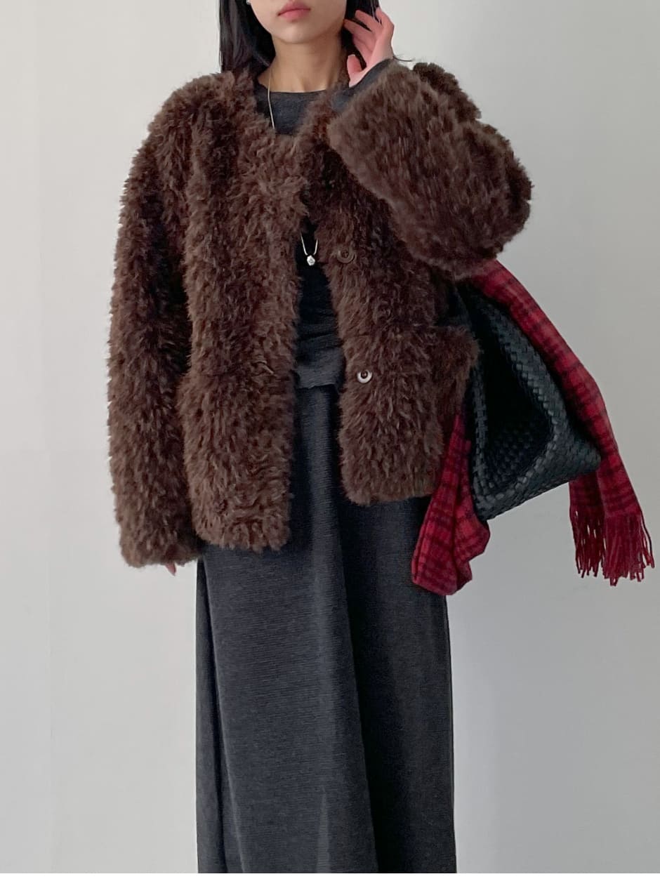 ジャクリーンラウンドオーバーフィットファージャケット
