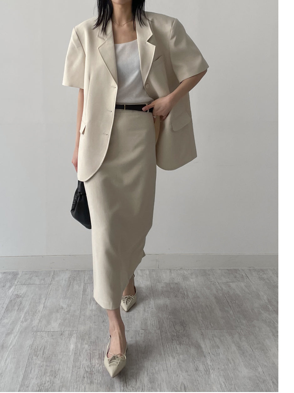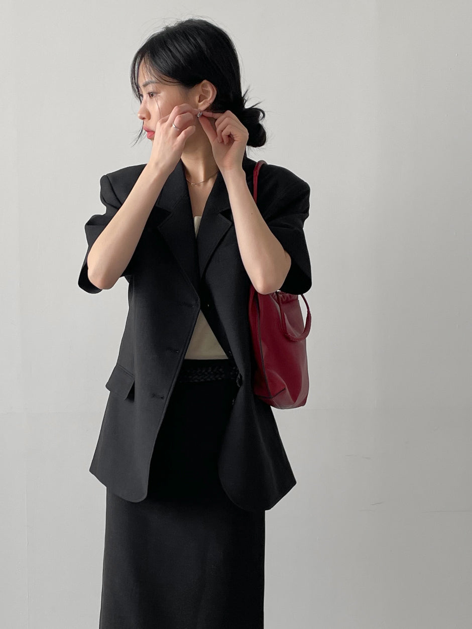 カンナリネン3ボタンオーバーフィット半袖ジャケット