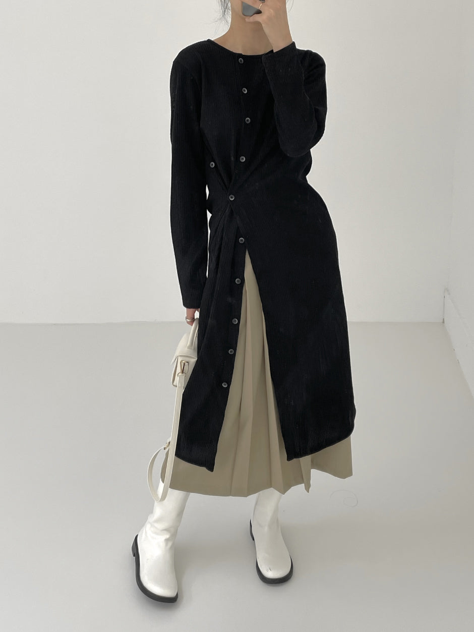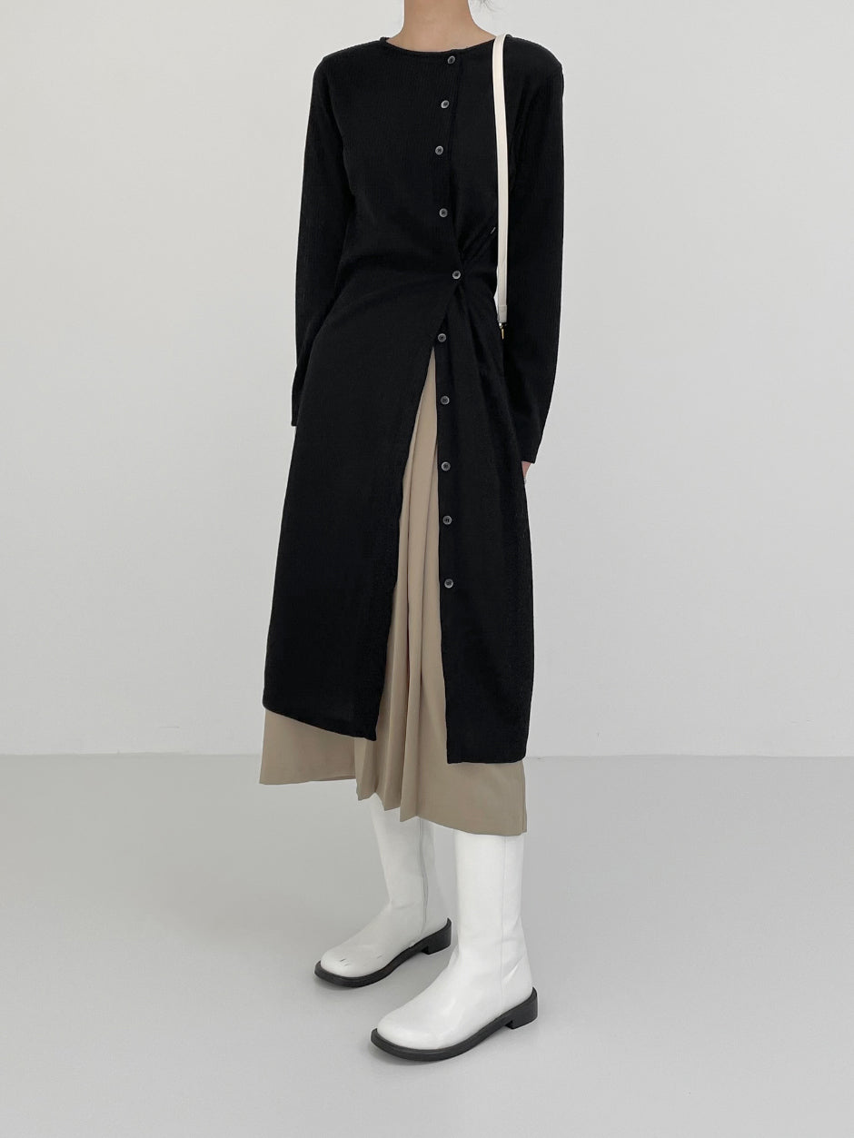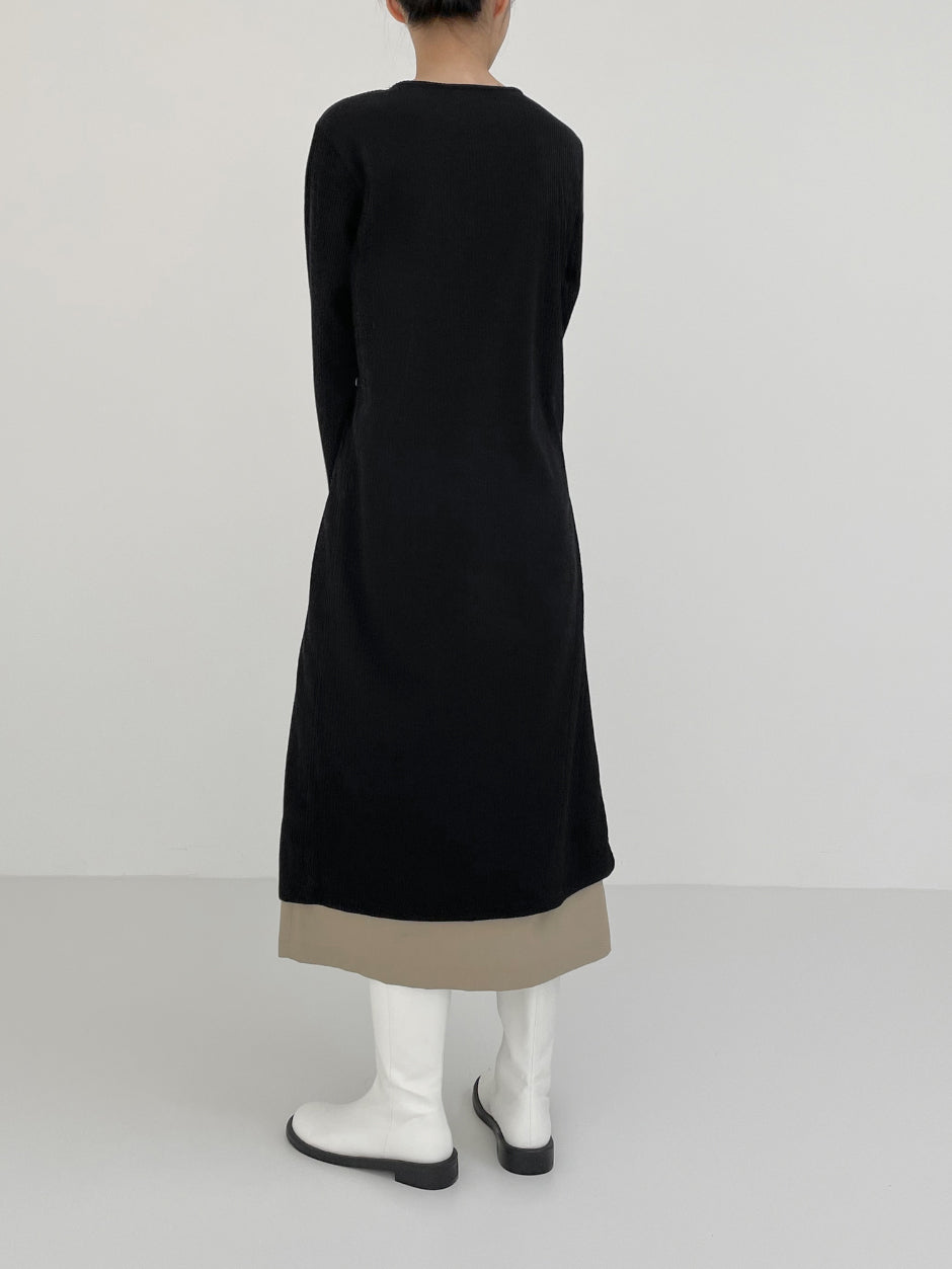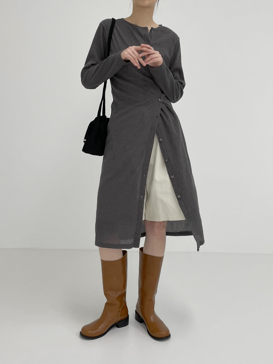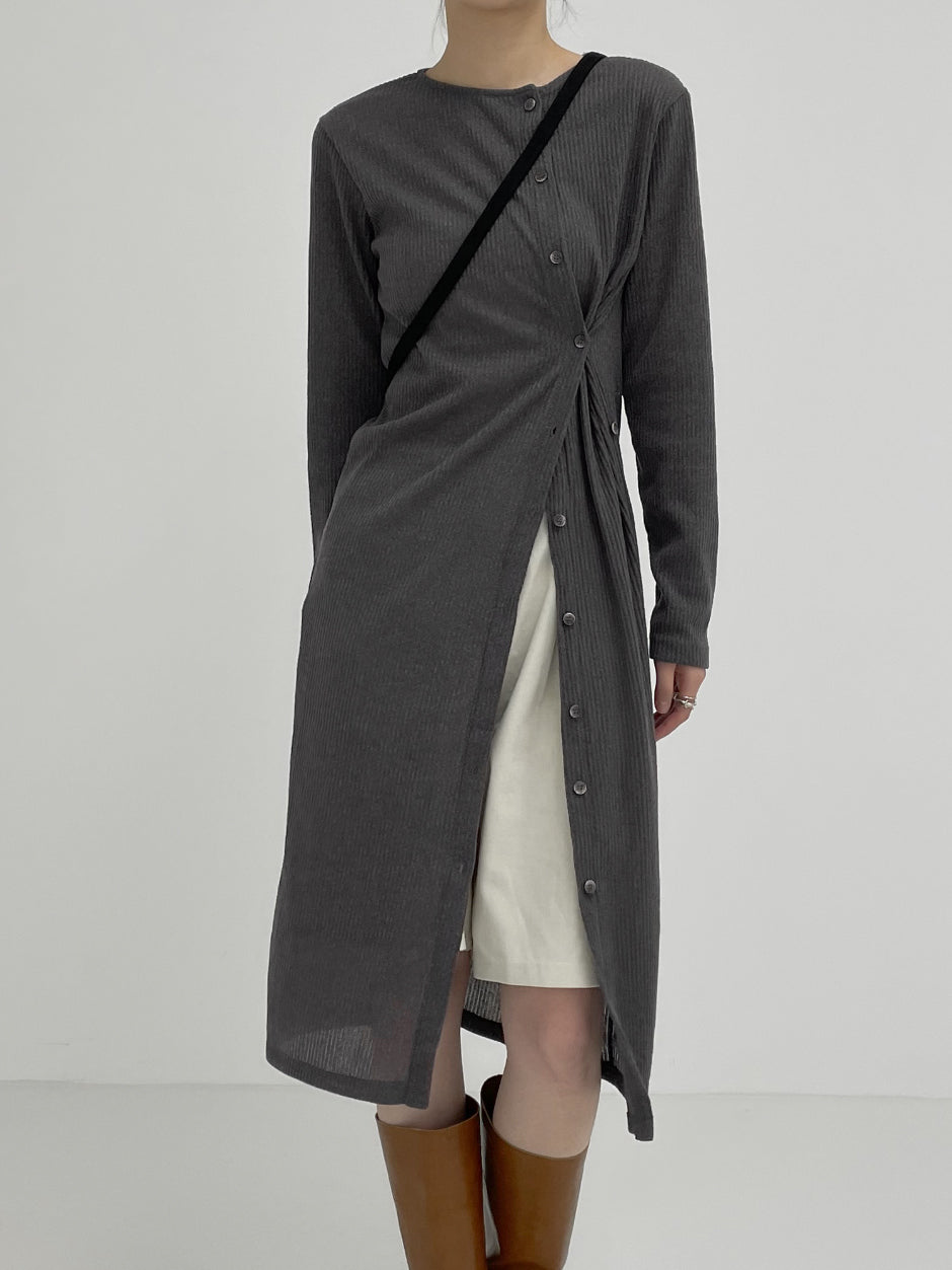 [Long sleeve ver.] Ribbed unbalance wrap one piece
