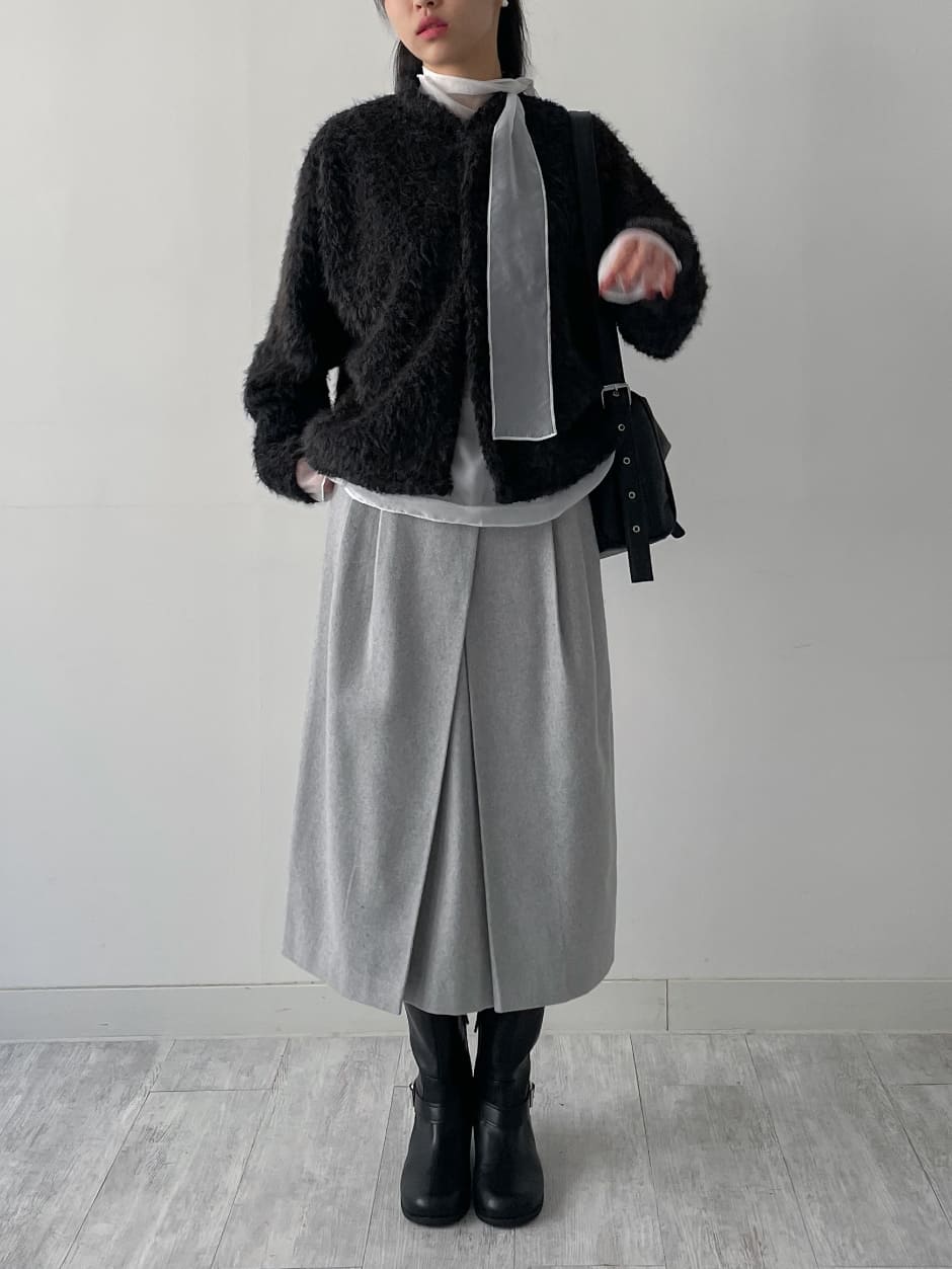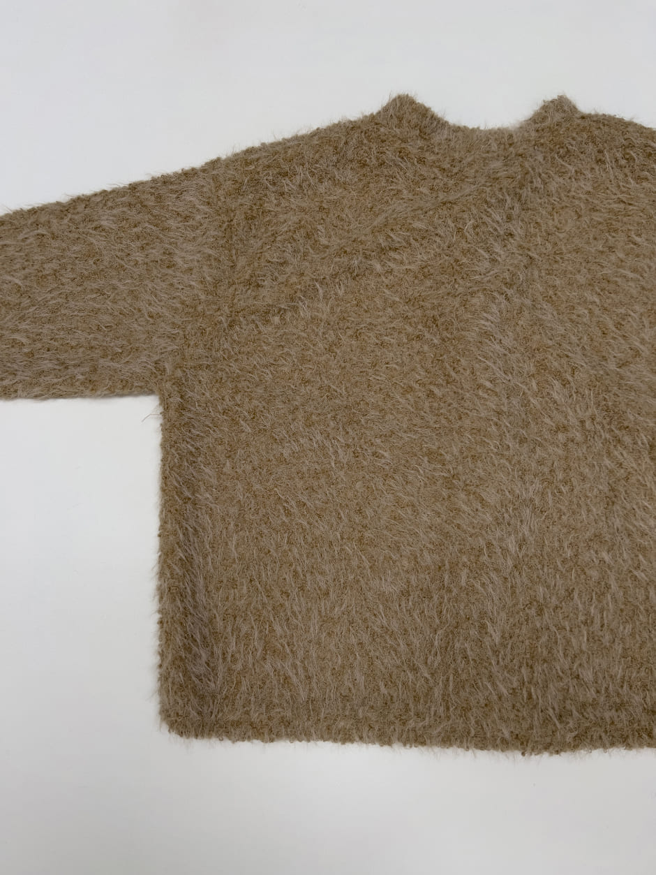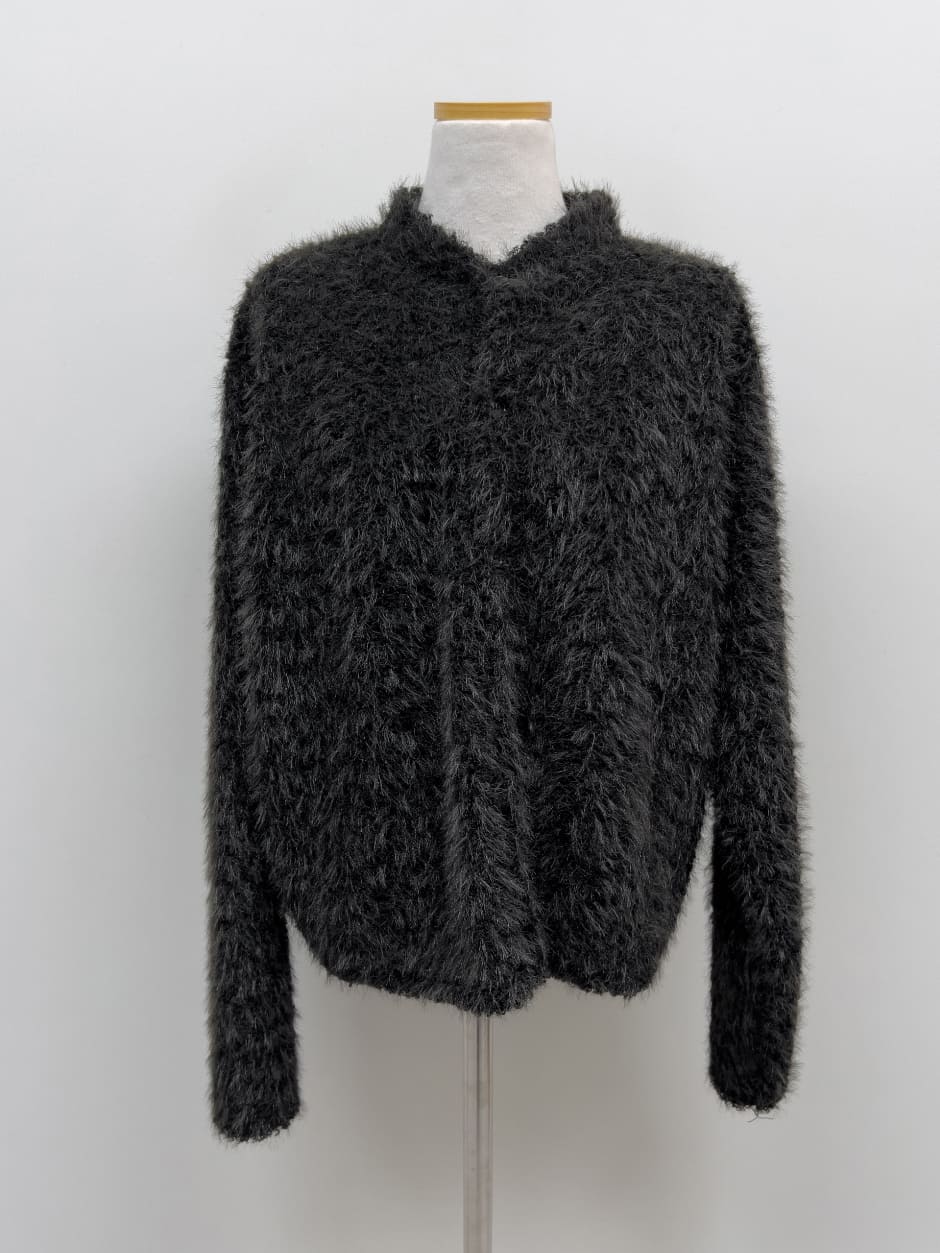 モックネックオーバーフィットファーカーディガン