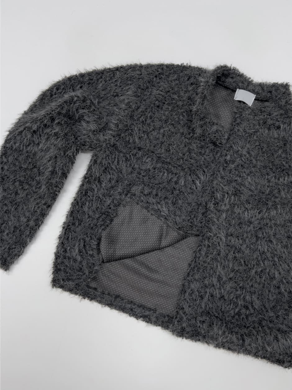 Mockneck Overfit Fur Cardigan