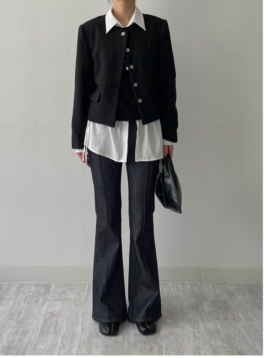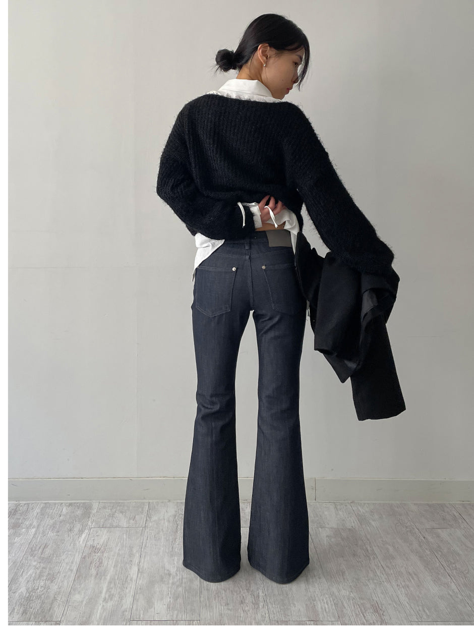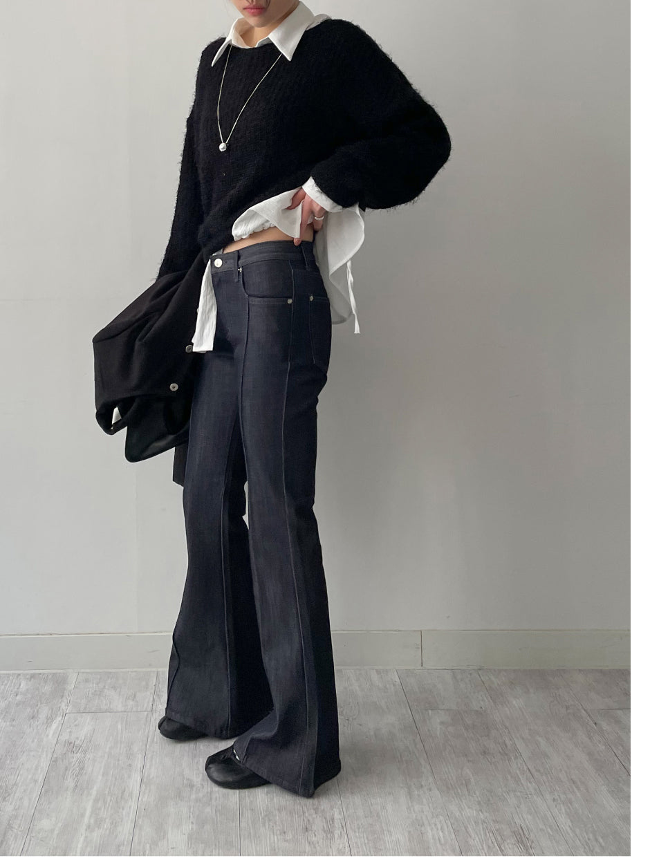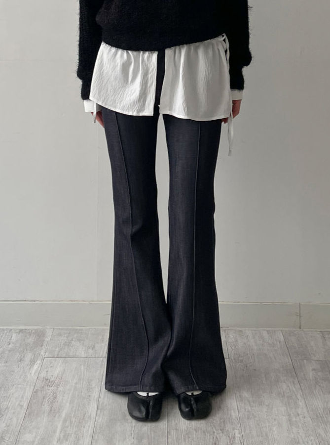 [non-fade] Selvedge Pin Tuck Long Bootcut Denim Pants