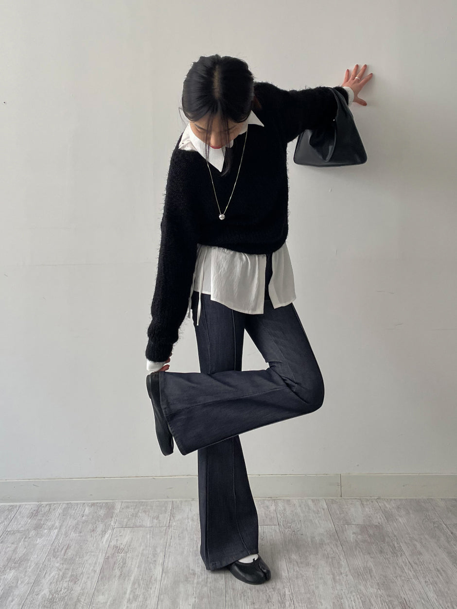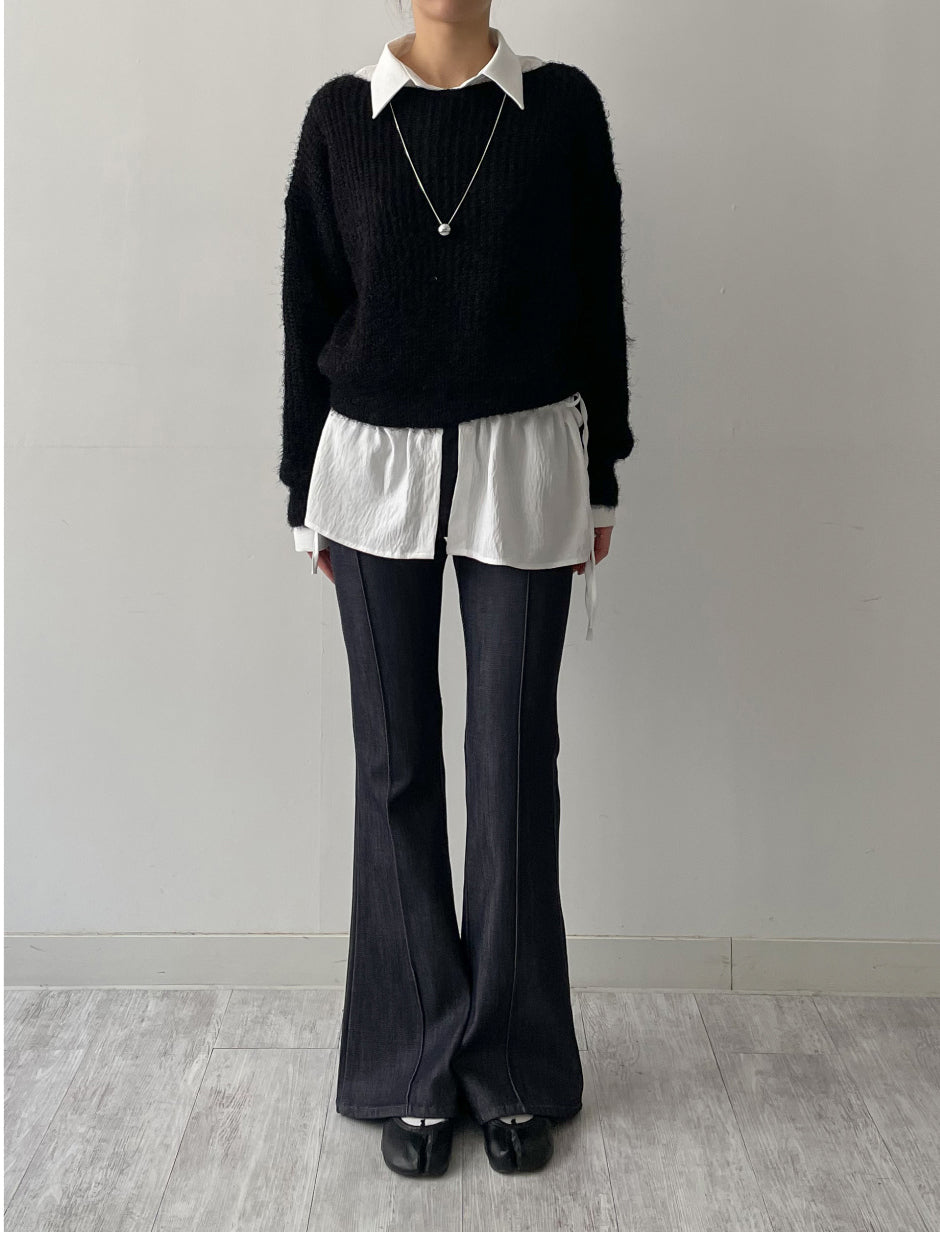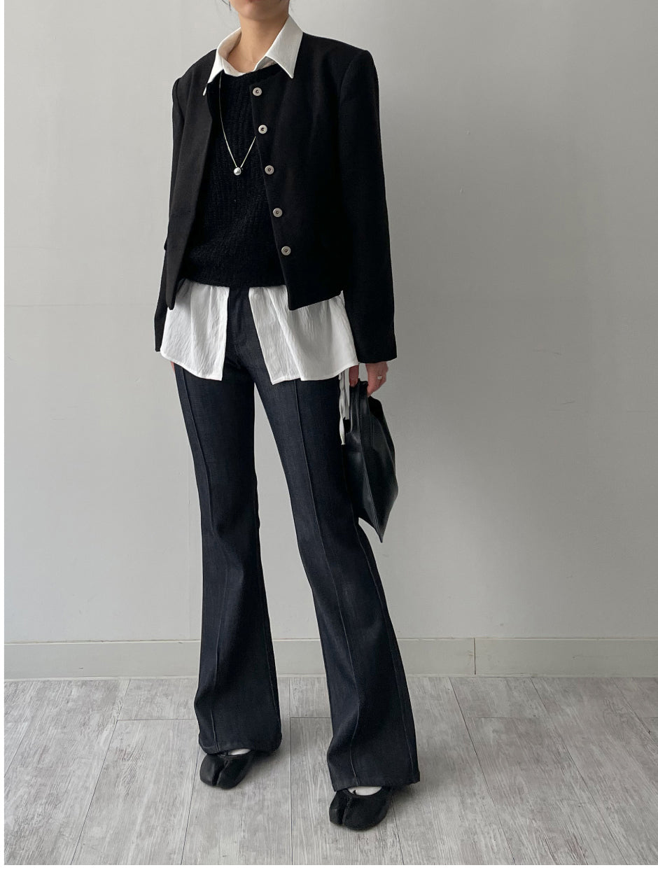 [non-fade] Selvedge Pin Tuck Long Bootcut Denim Pants