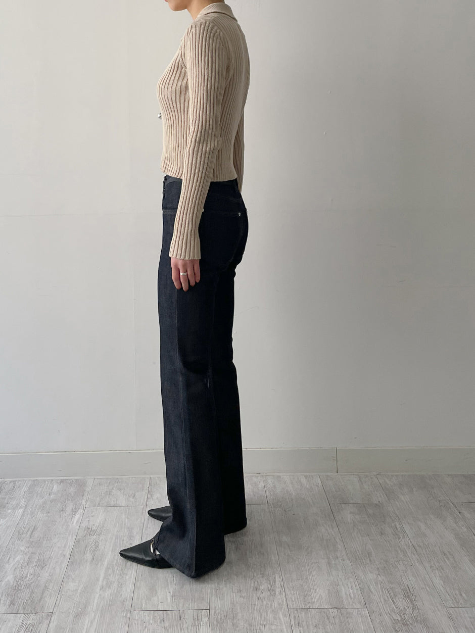 [ノンフェード]セルベッジピンタックロングブーツカットデニムパンツ