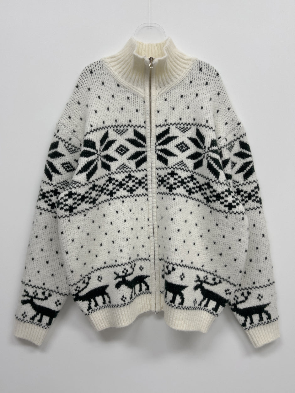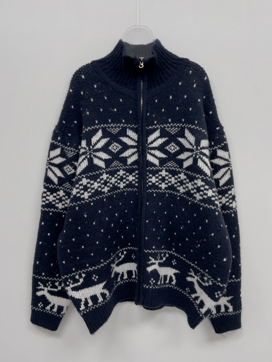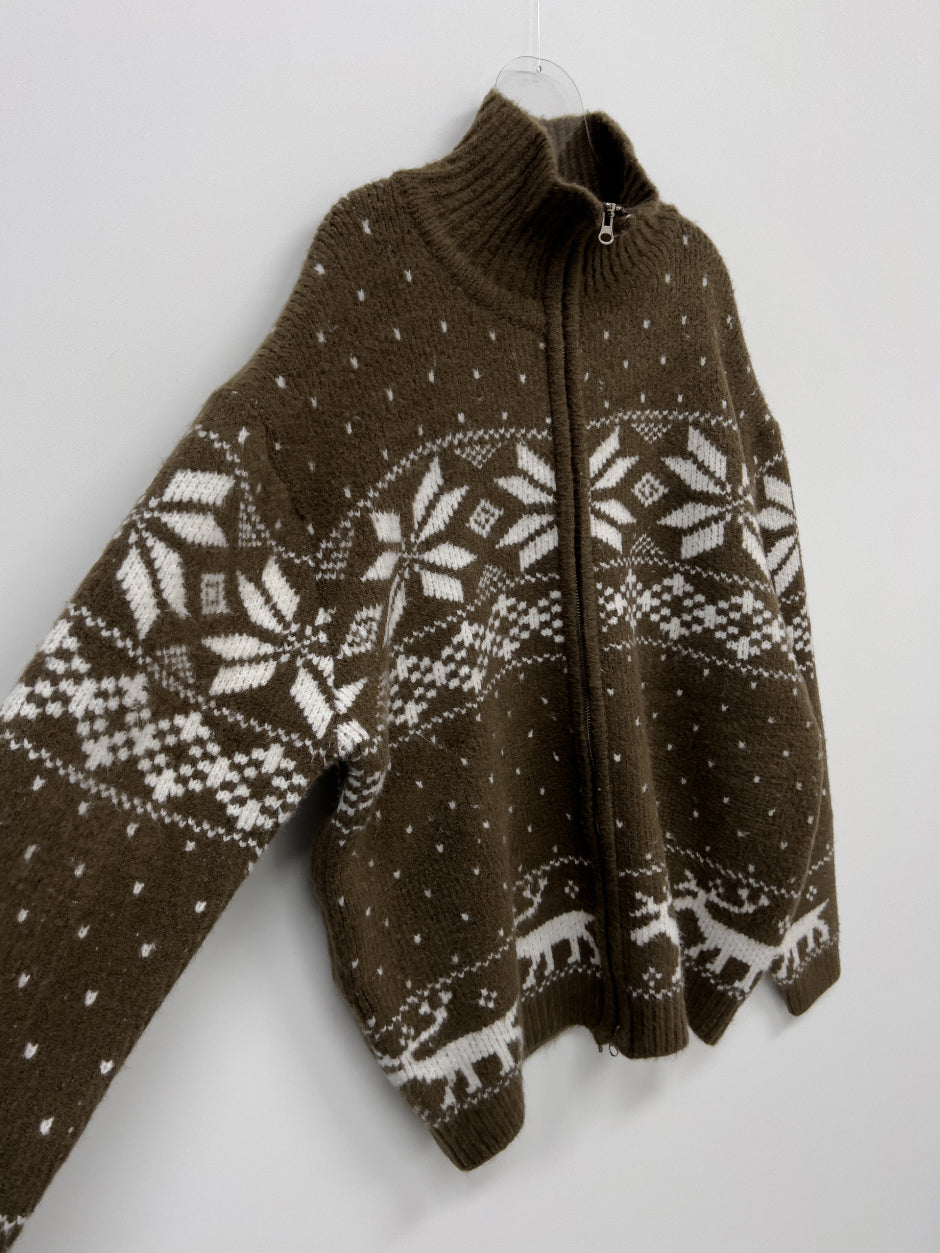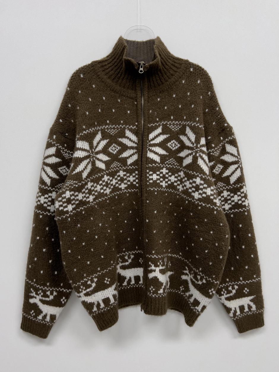 ノルディックコーウィチャンオーバーフィットニットジップアップ
