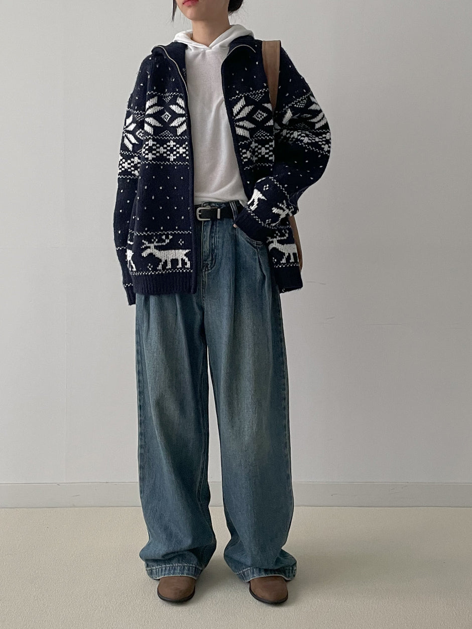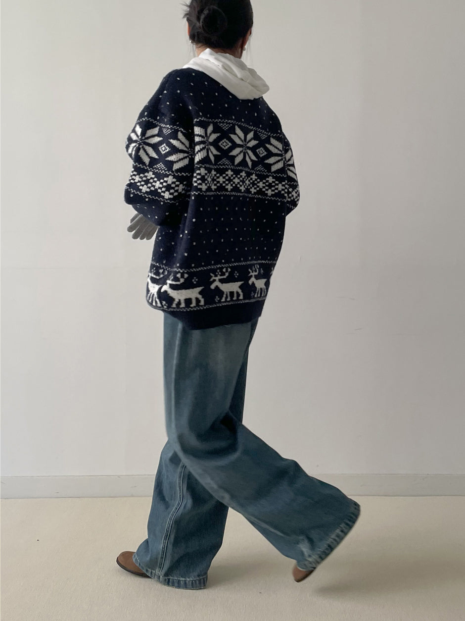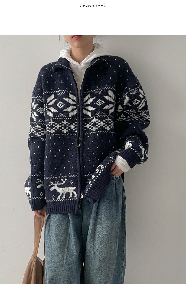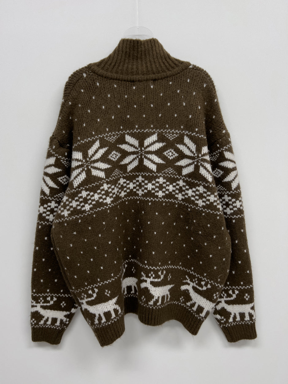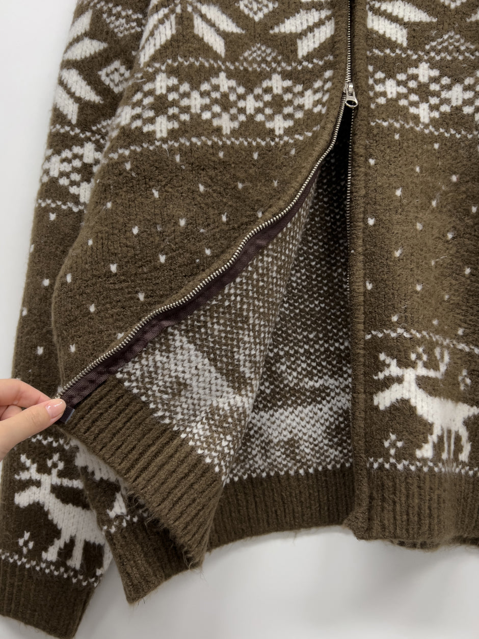 ノルディックコーウィチャンオーバーフィットニットジップアップ