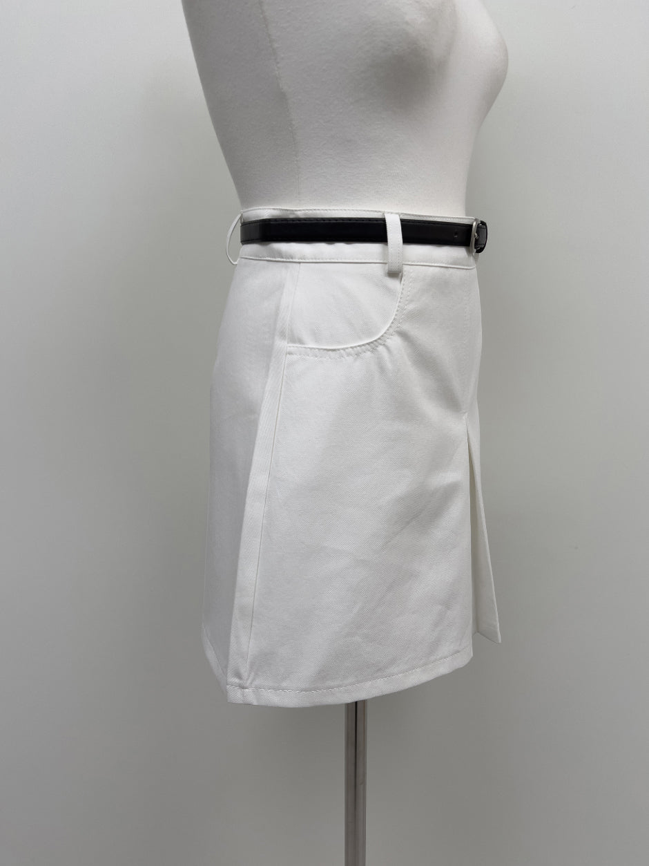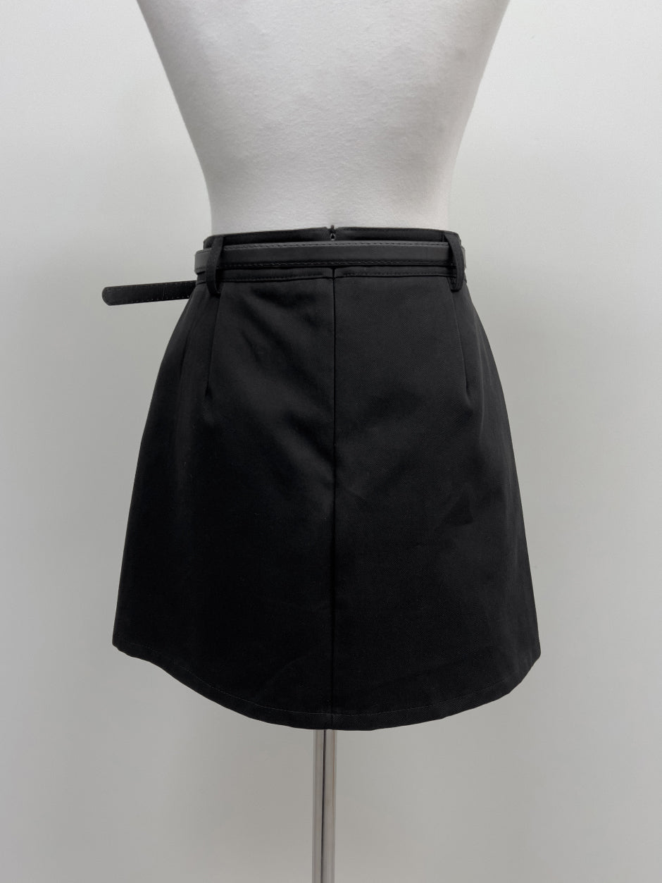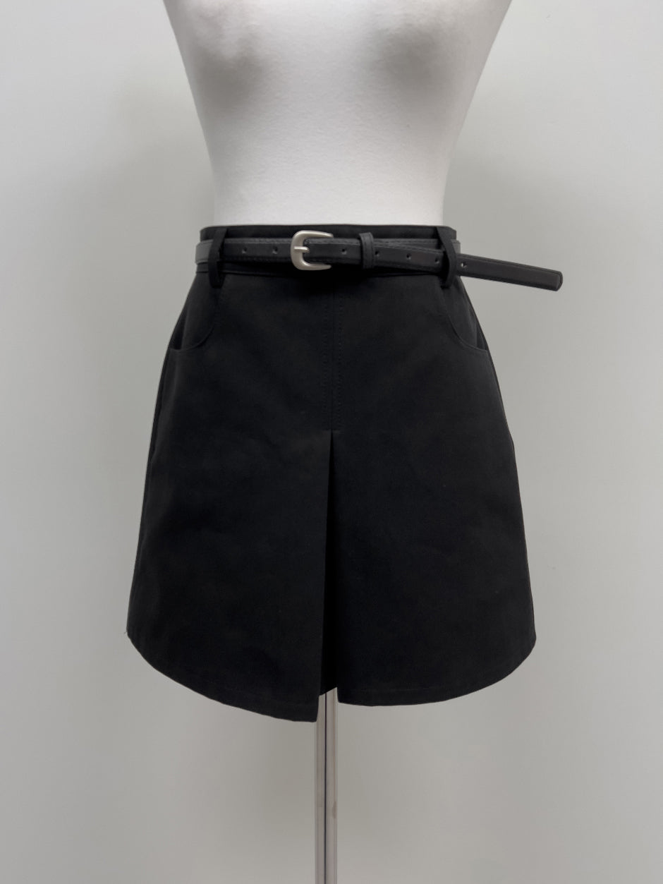 [Pants Lining! Belt SET] Benny Pleated A-Line Mini Skirt