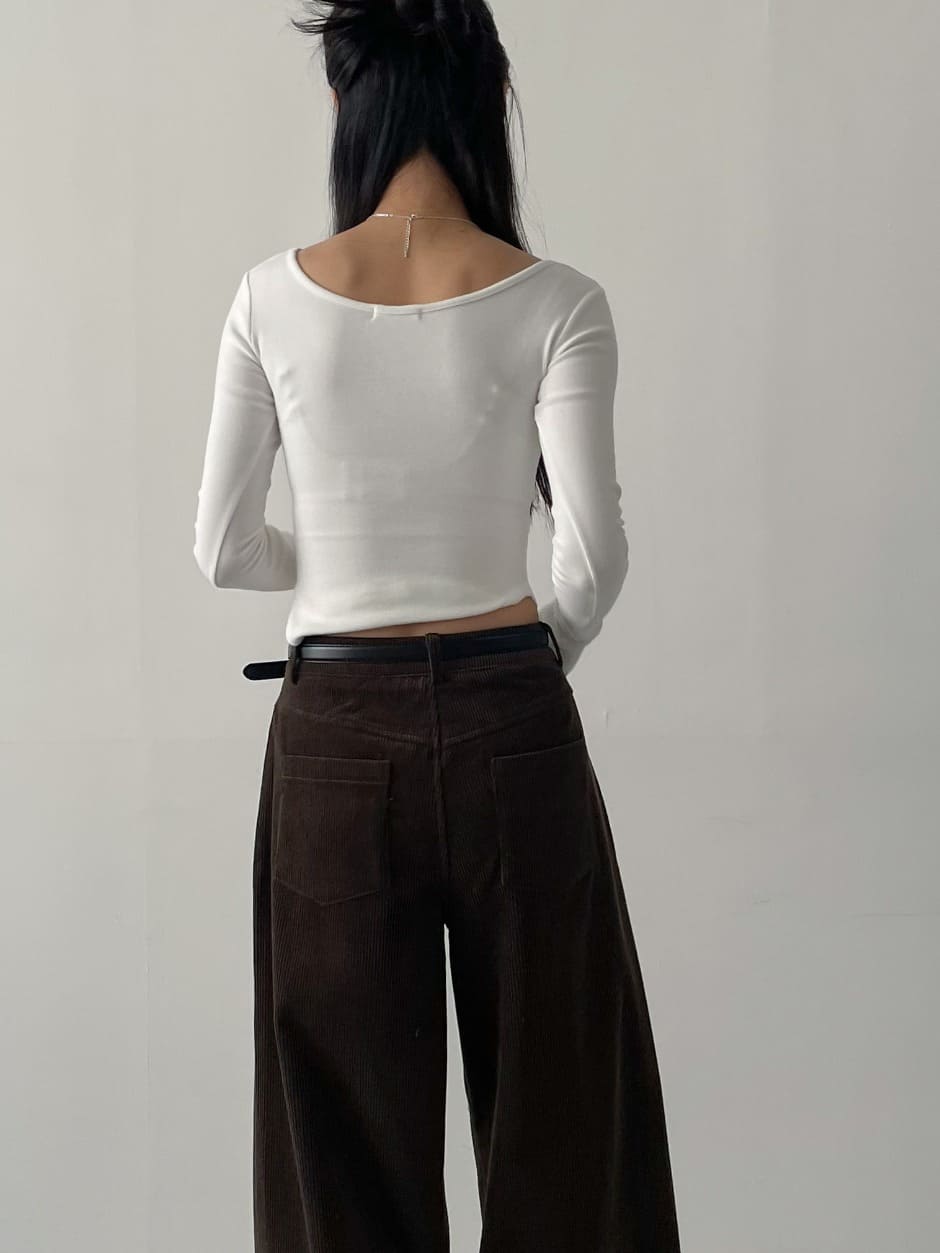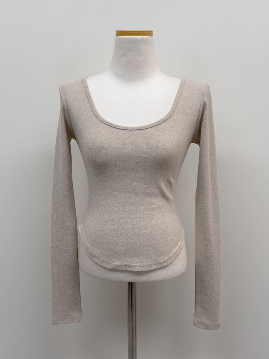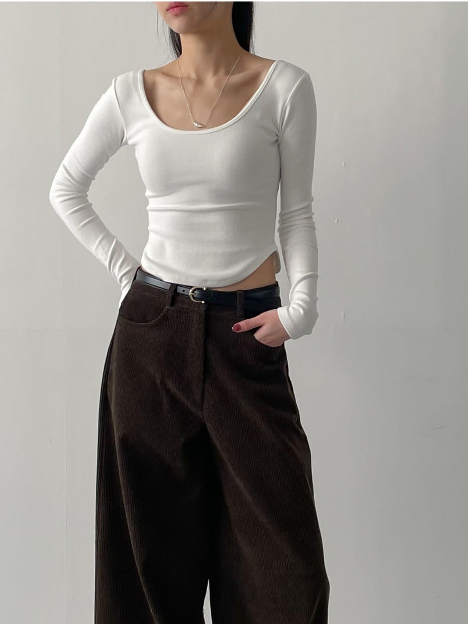 Peach Deep U-Neck Crop Long Sleeve T-Shirt