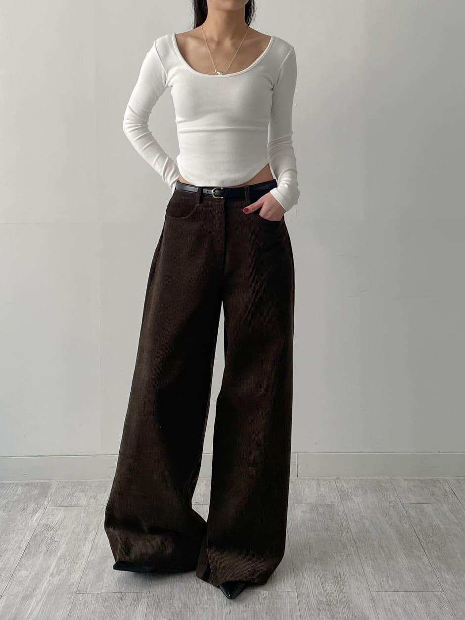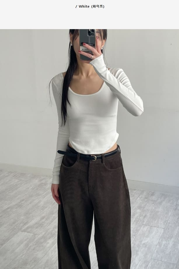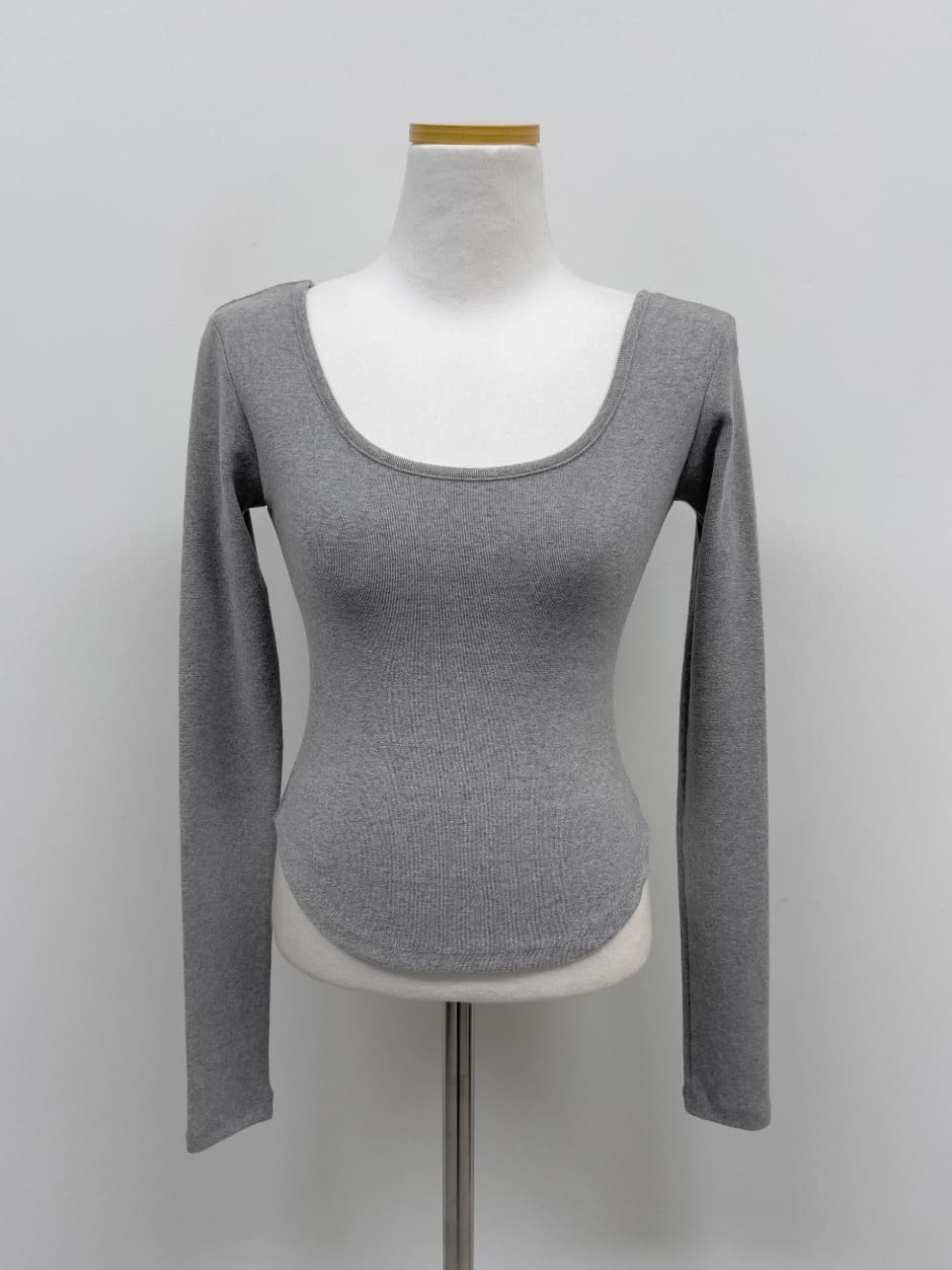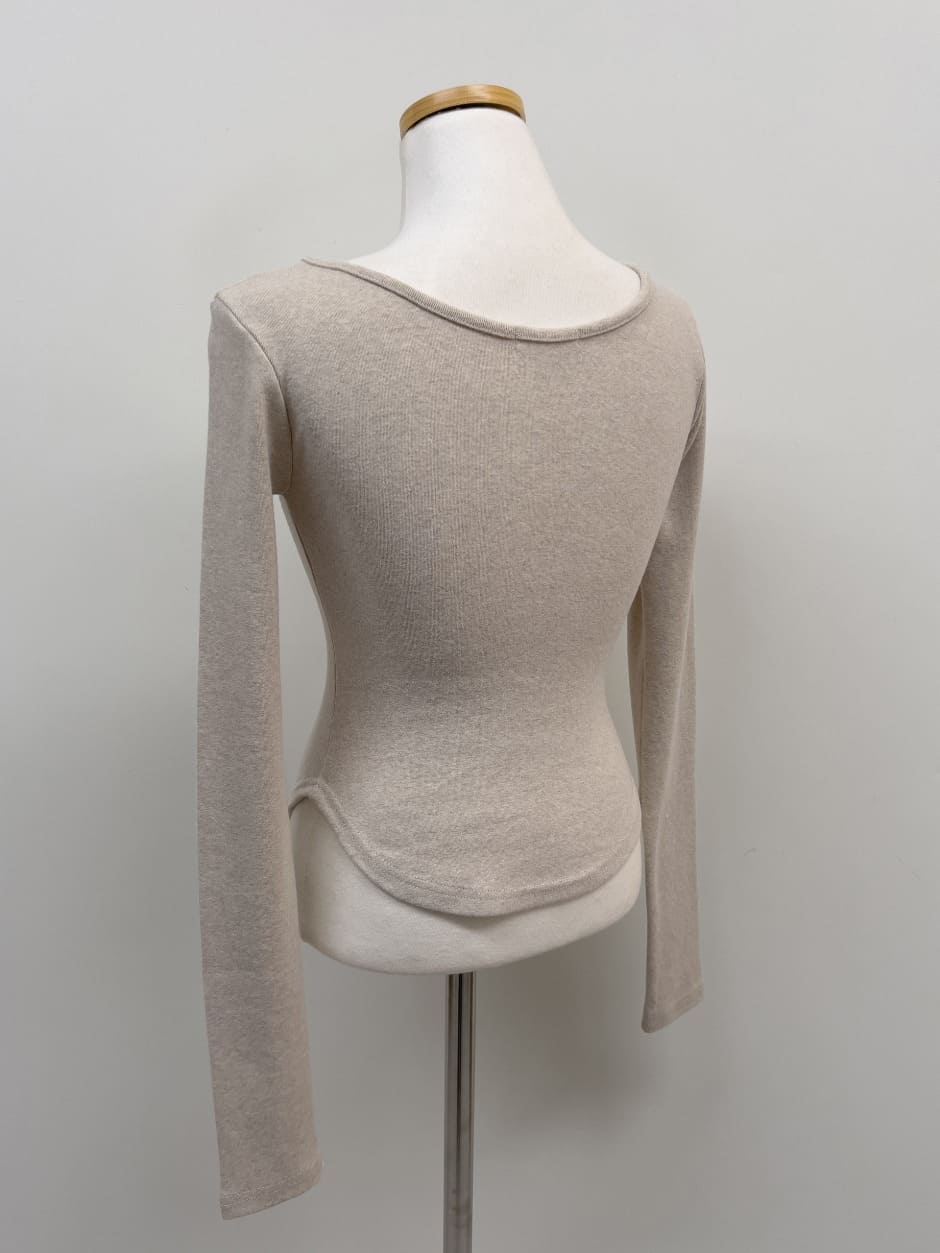 Peach Deep U-Neck Crop Long Sleeve T-Shirt