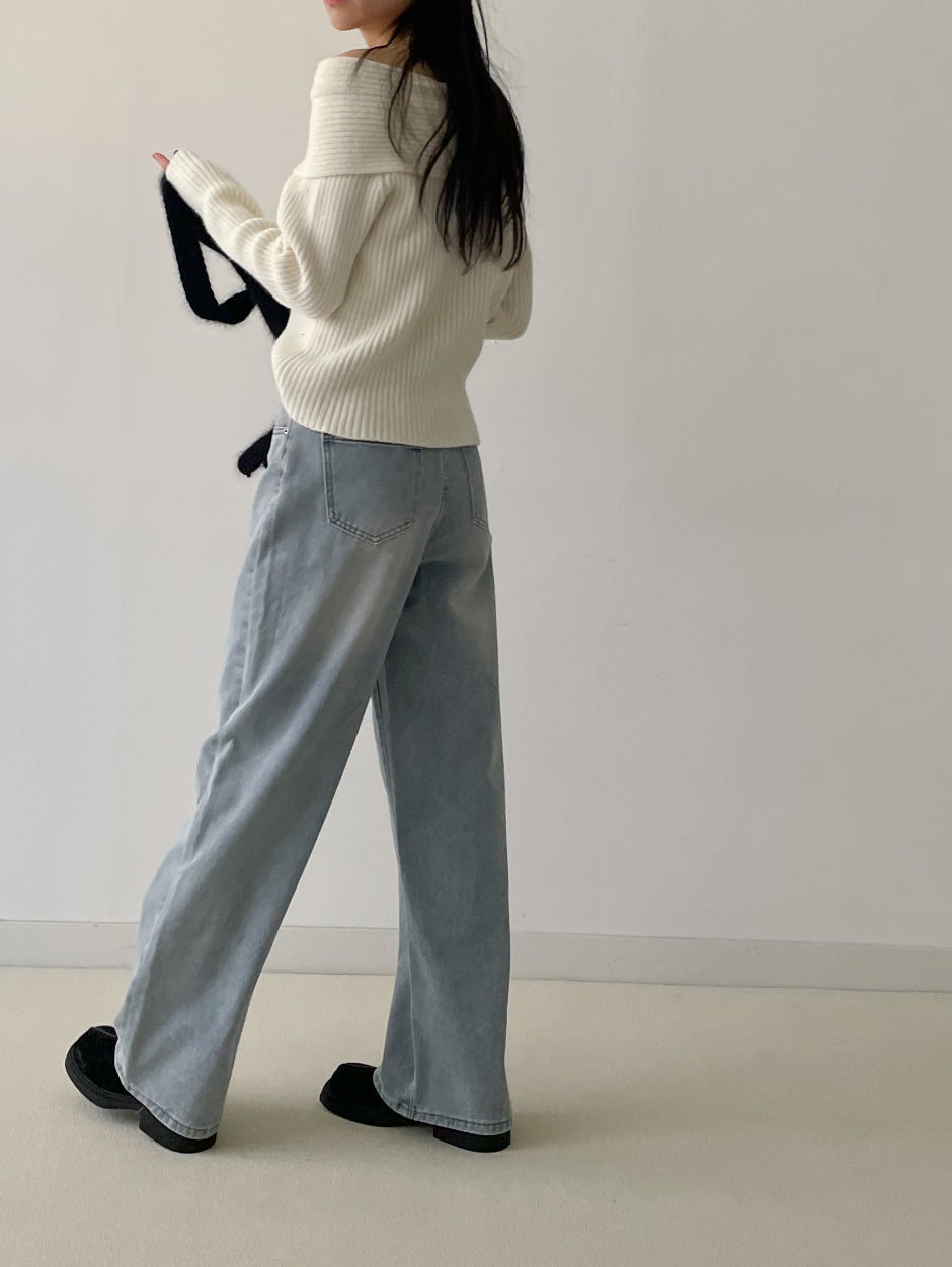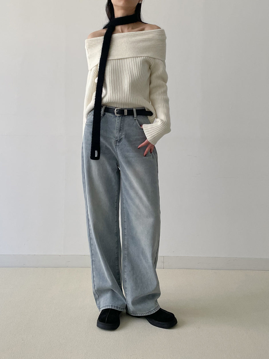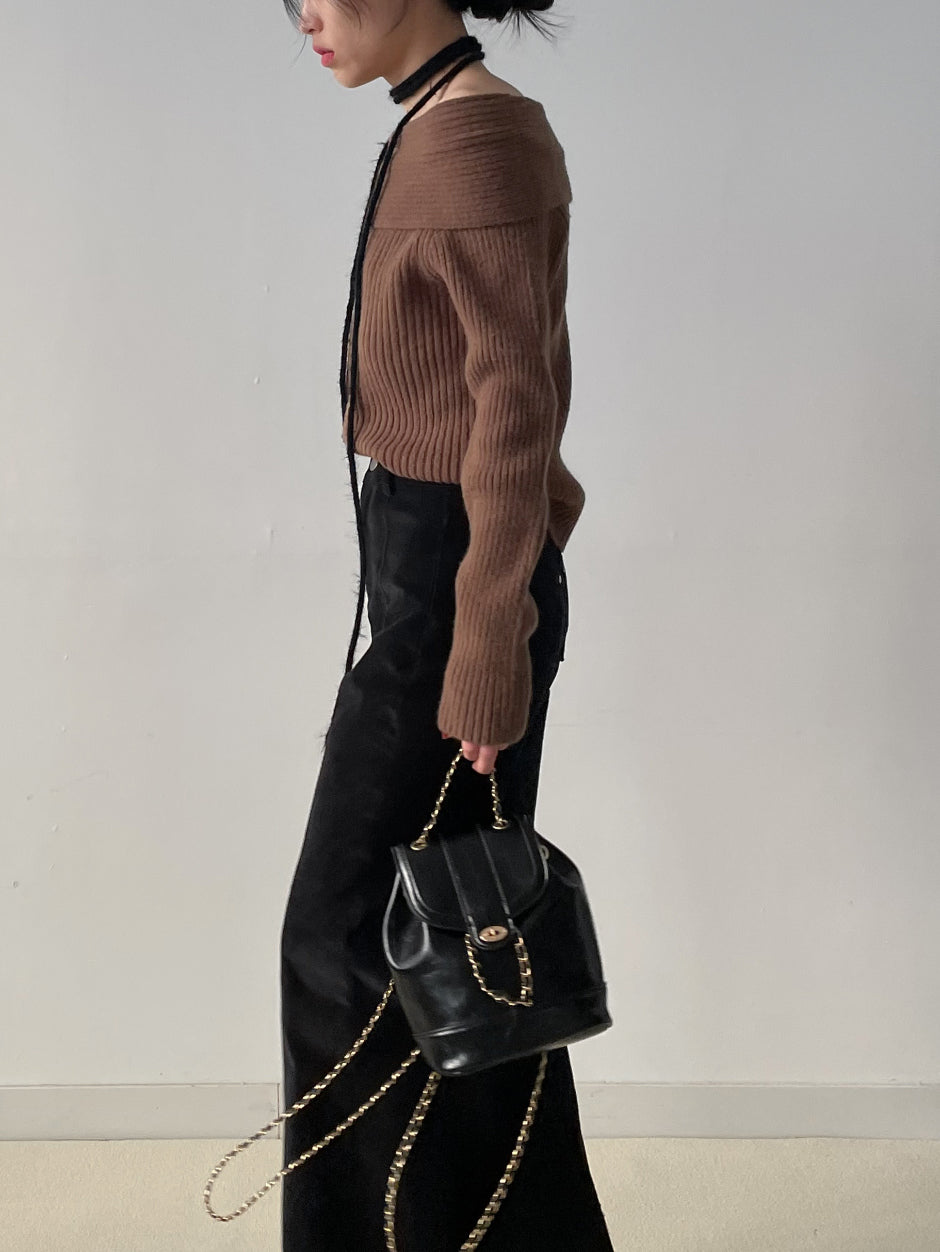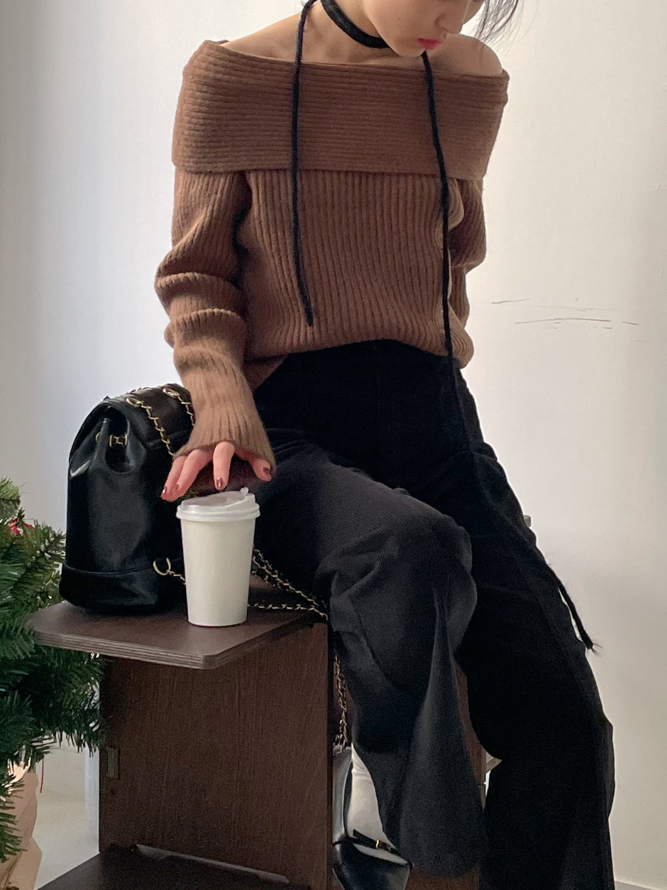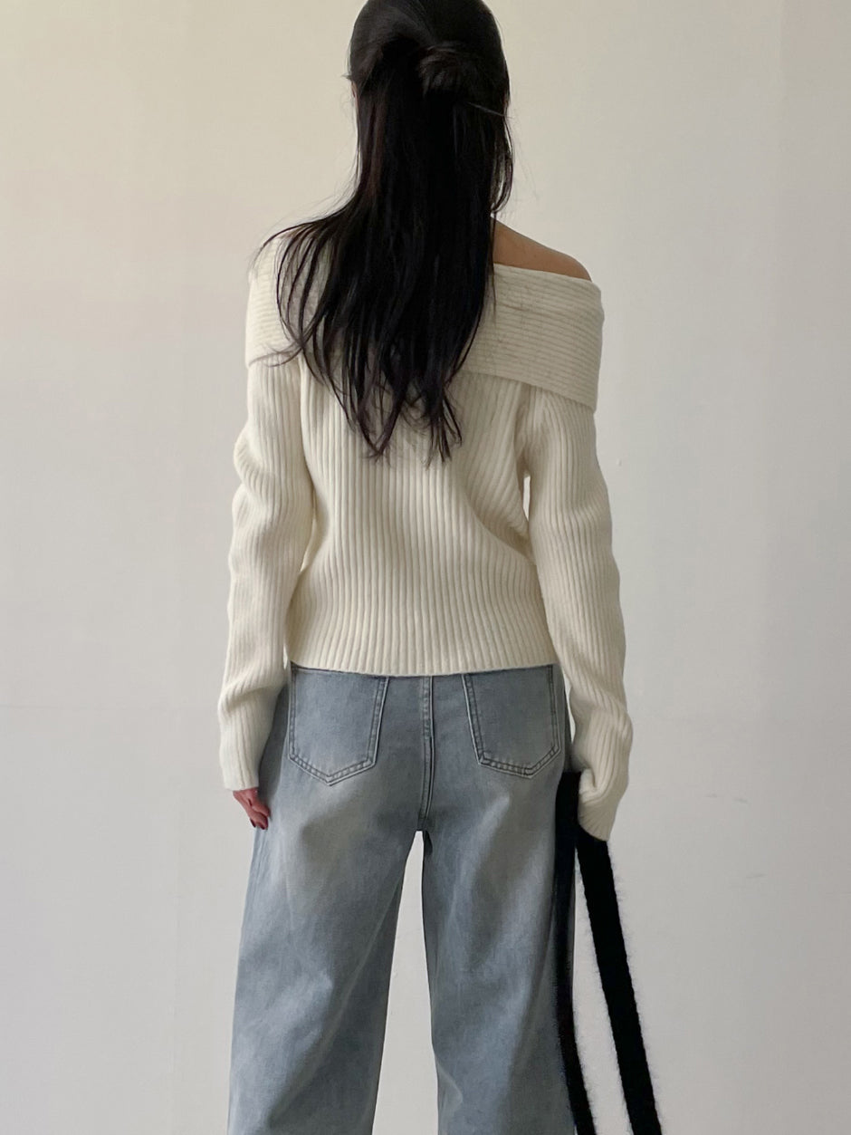 ピッキーリブオフショルダーニット