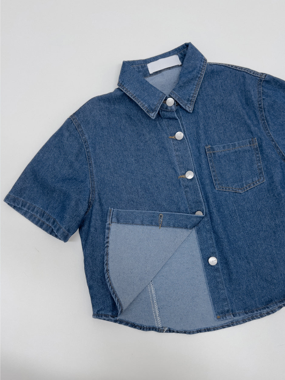 PLEASE DENIM CROP HALF SLEEVE JACKET