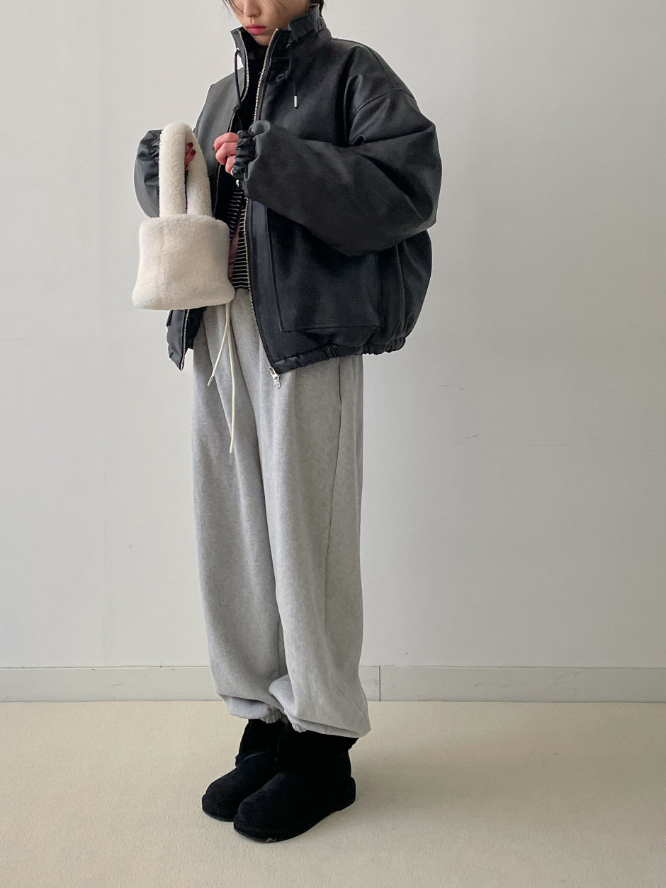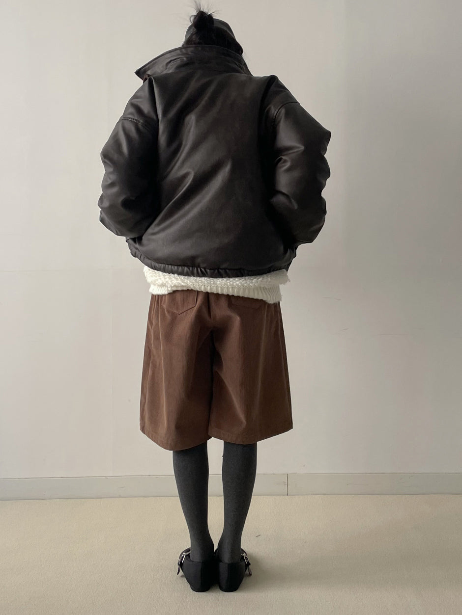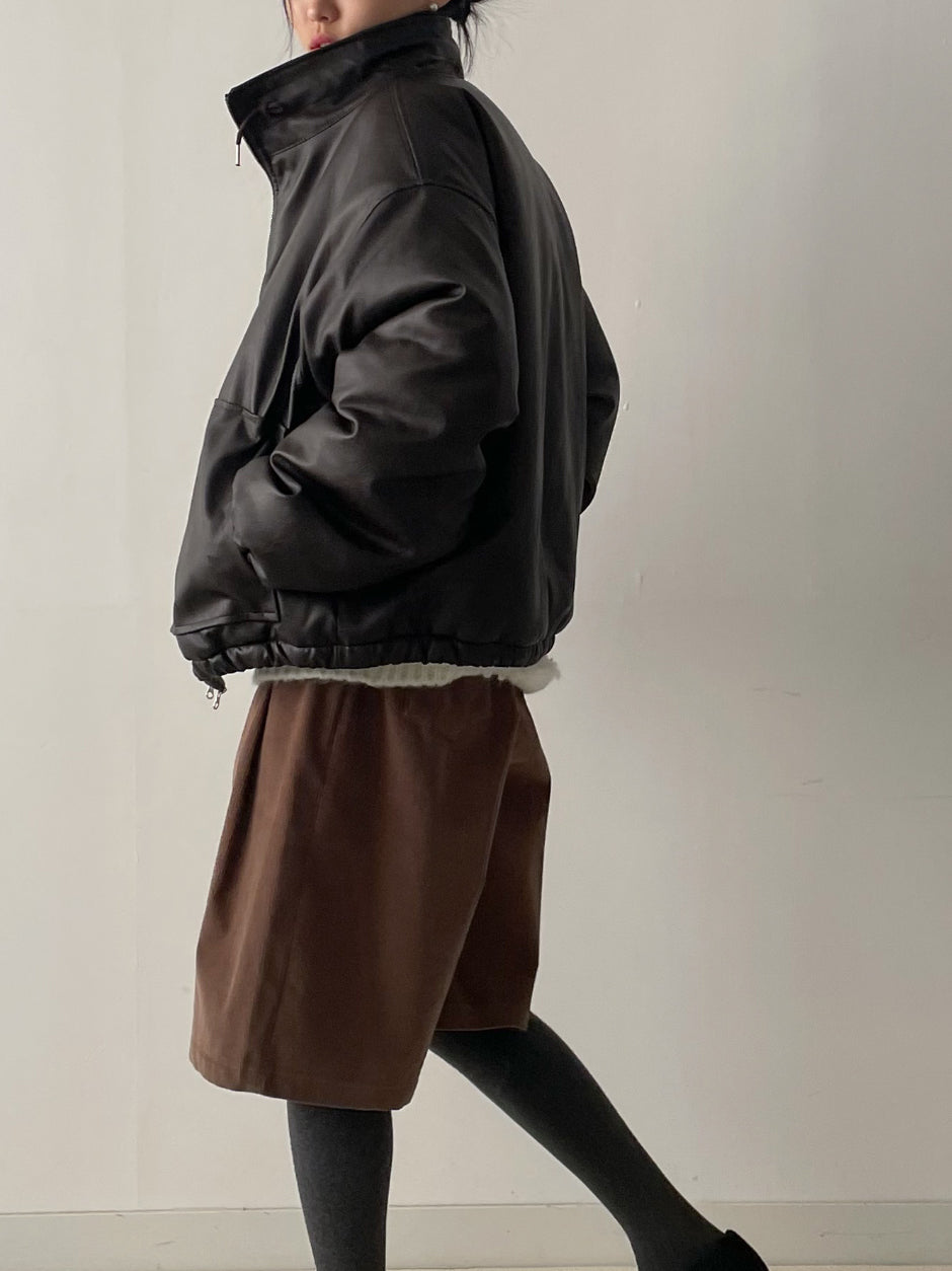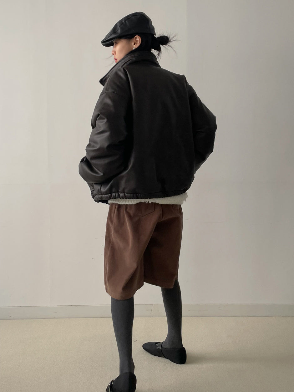 [キルト/男女兼用]ディープレザーオーバーフィットブルゾン
