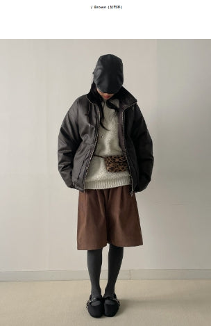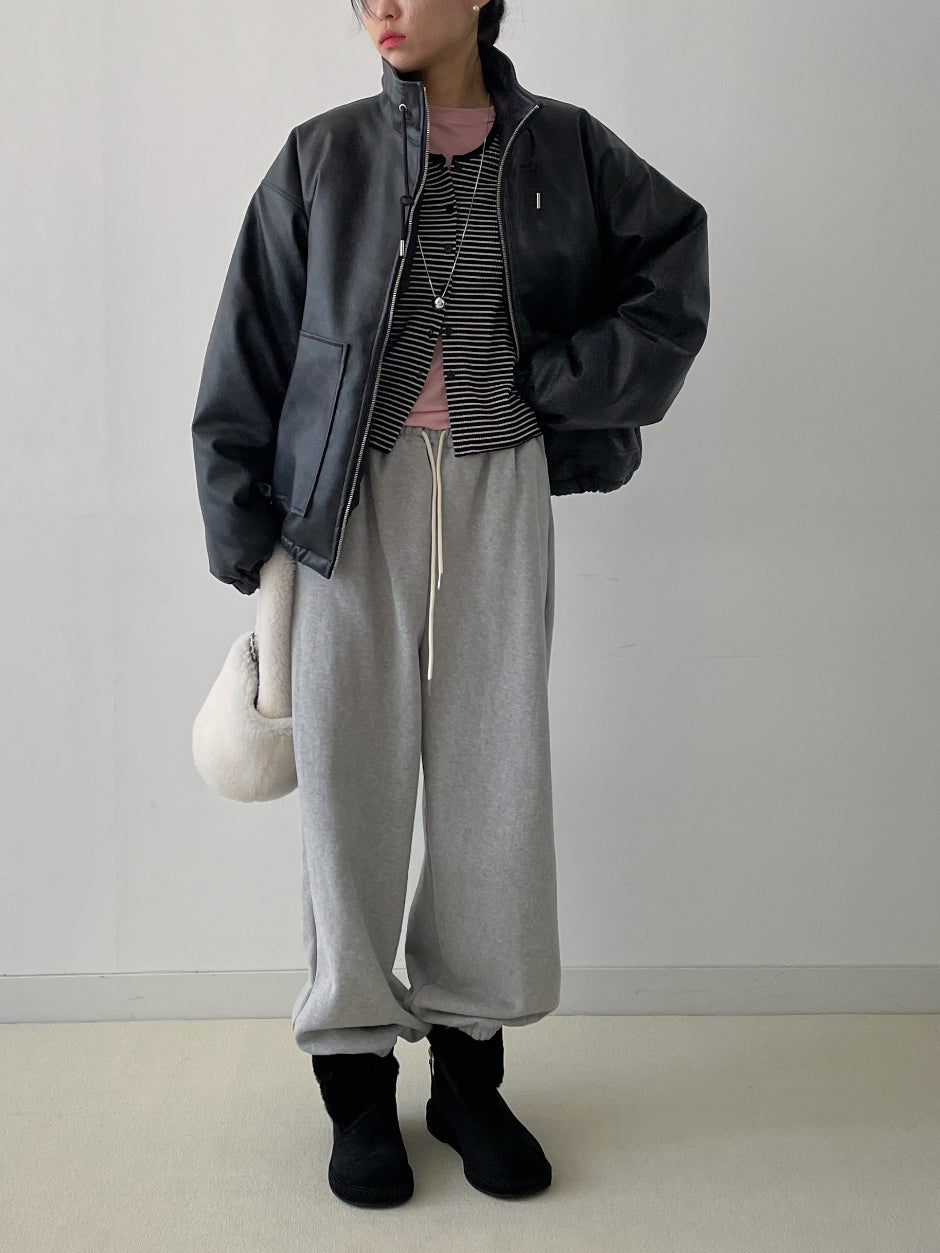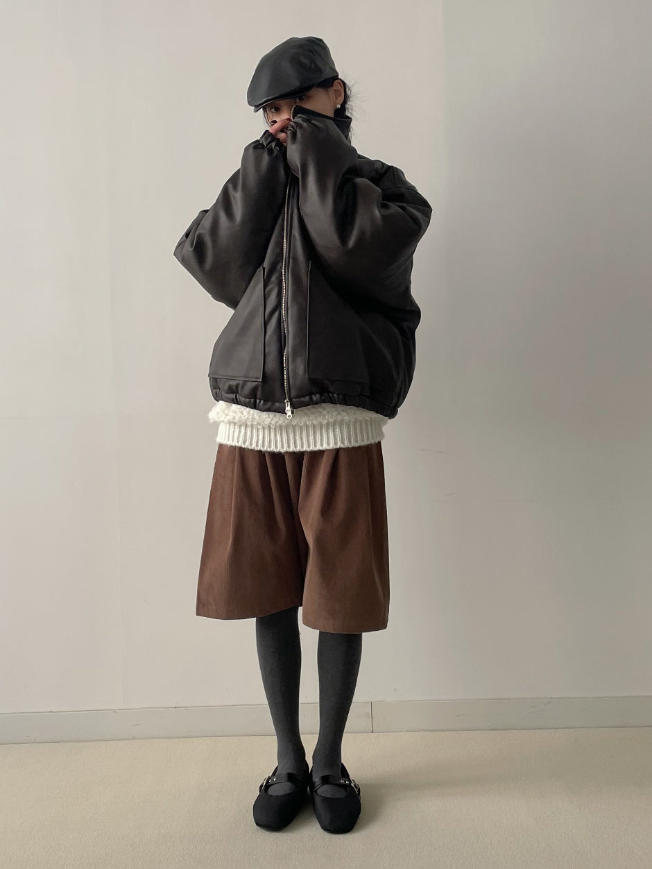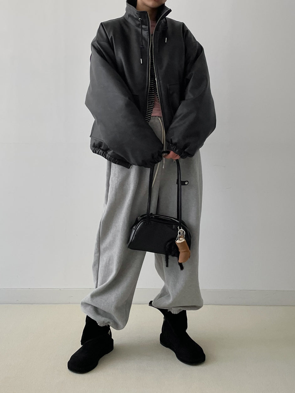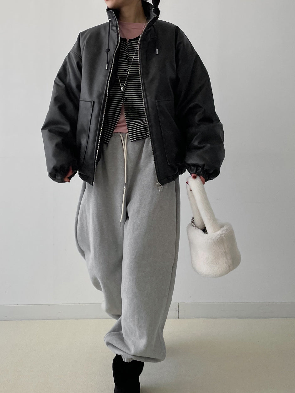 [キルト/男女兼用]ディープレザーオーバーフィットブルゾン