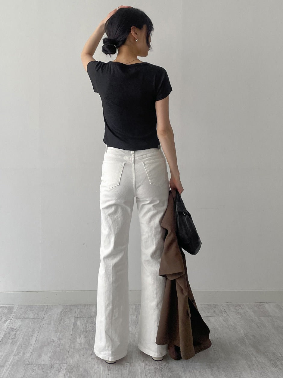 リブディープUネック半袖Tシャツ