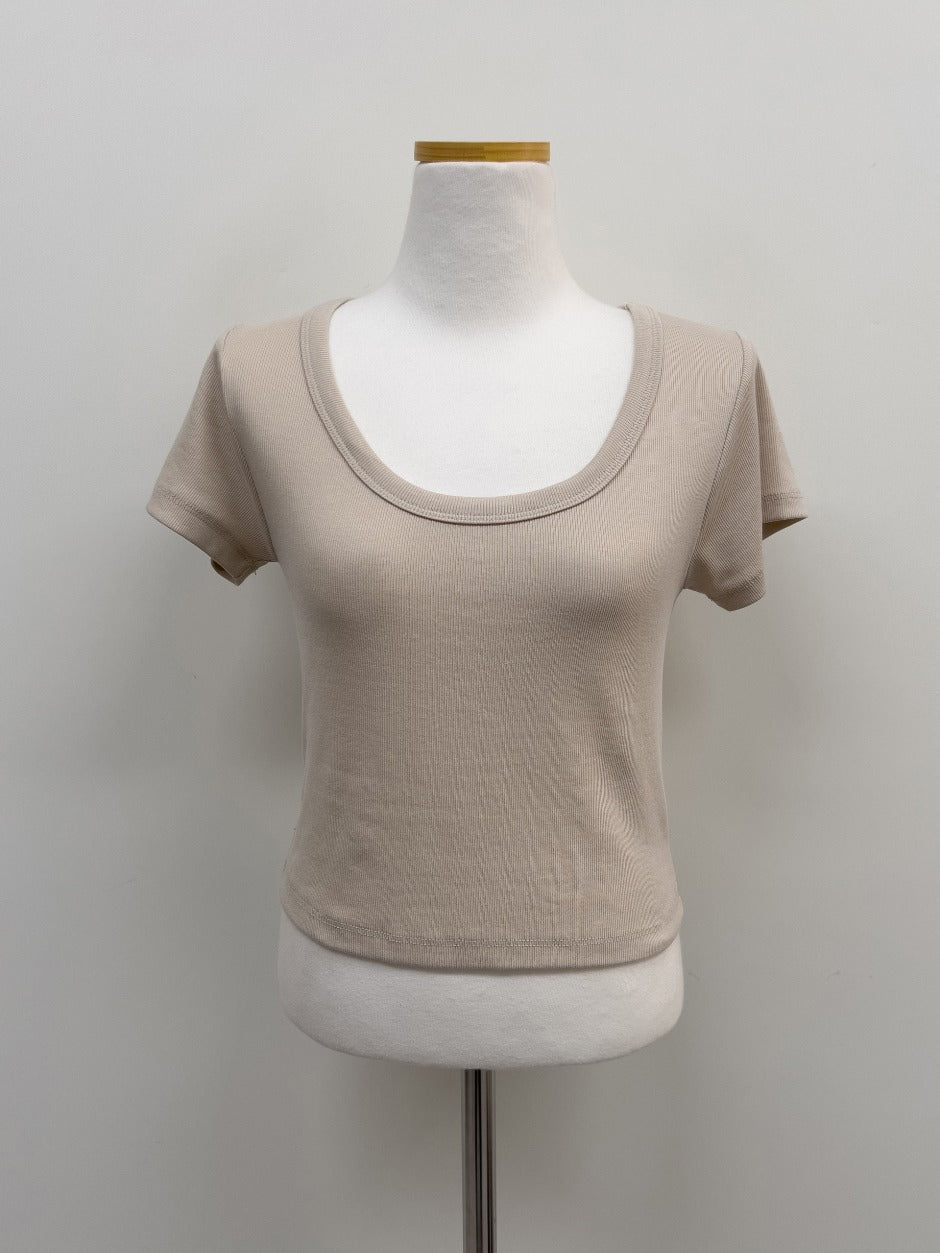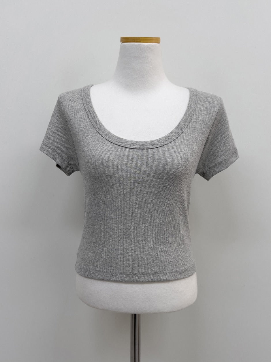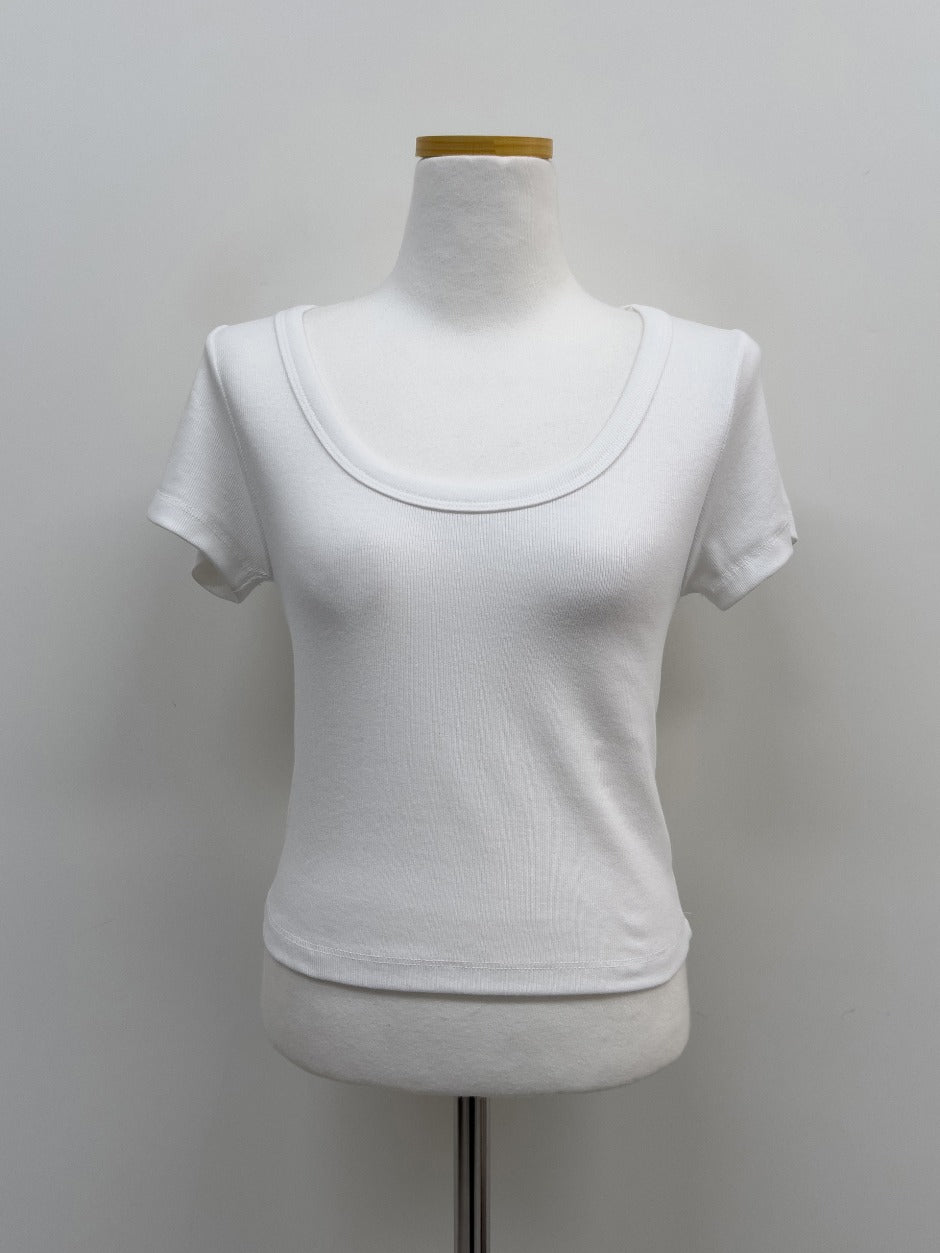Rib Deep U-neck Short Sleeve T-Shirt