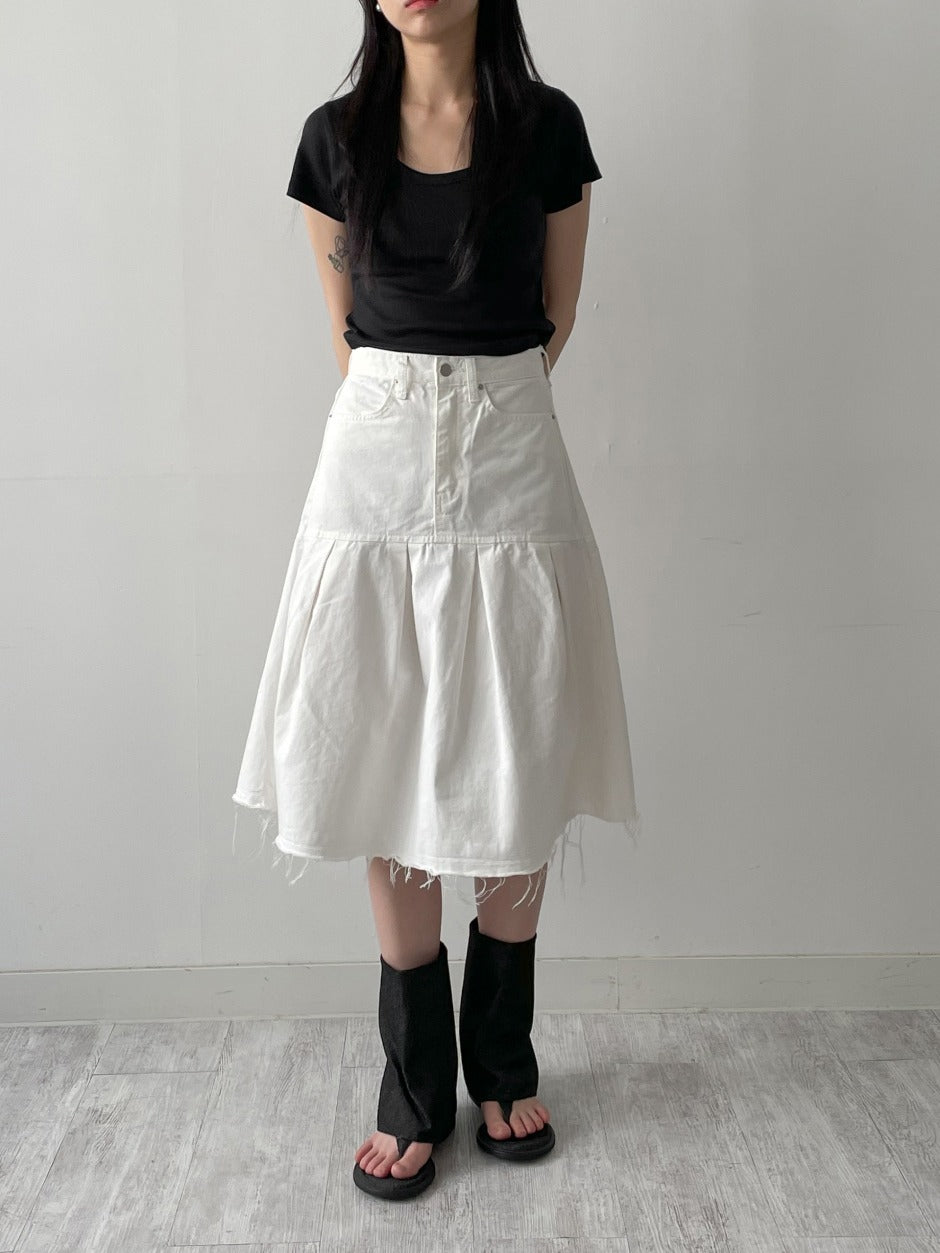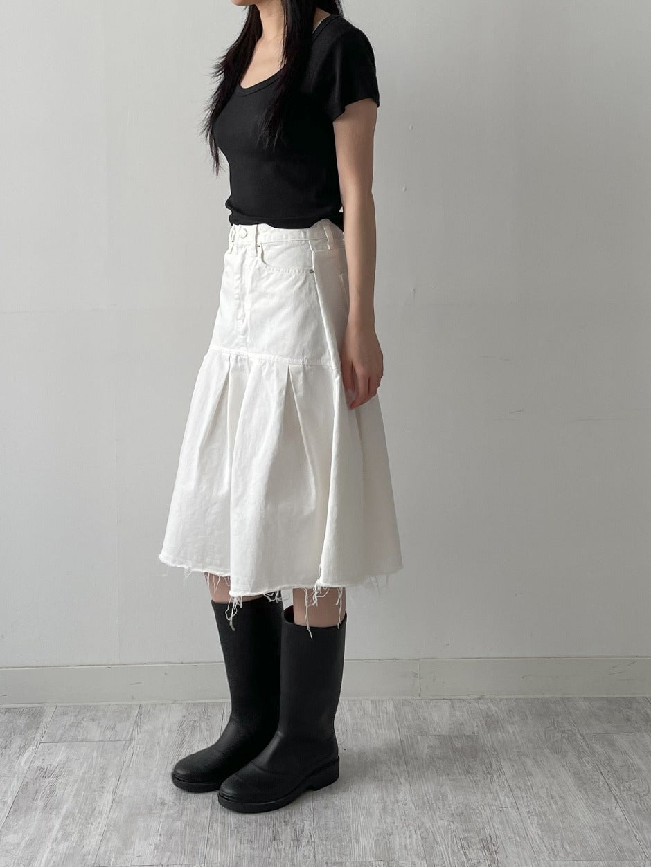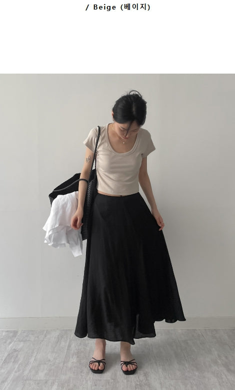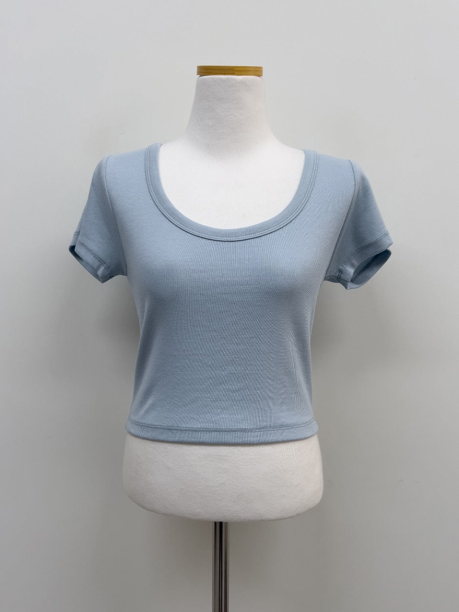 Rib Deep U-neck Short Sleeve T-Shirt