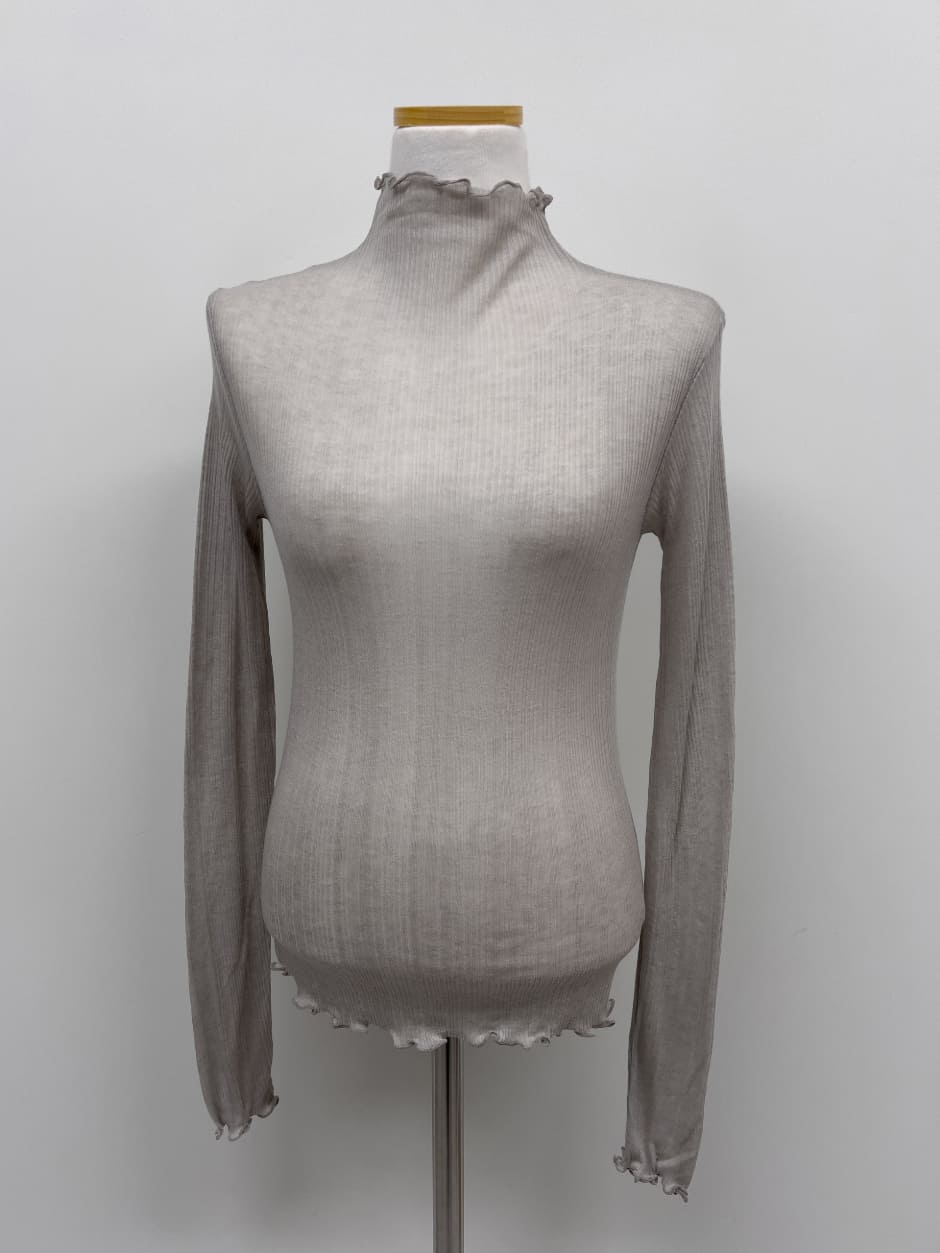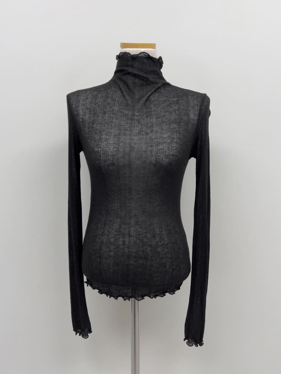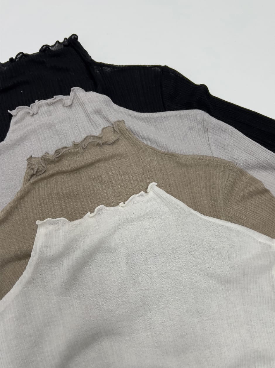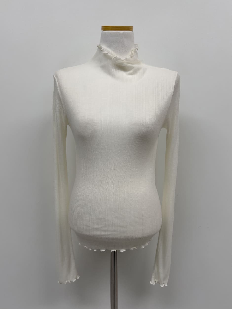リブウェイビーシースルーポーラTシャツ