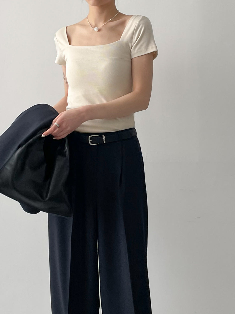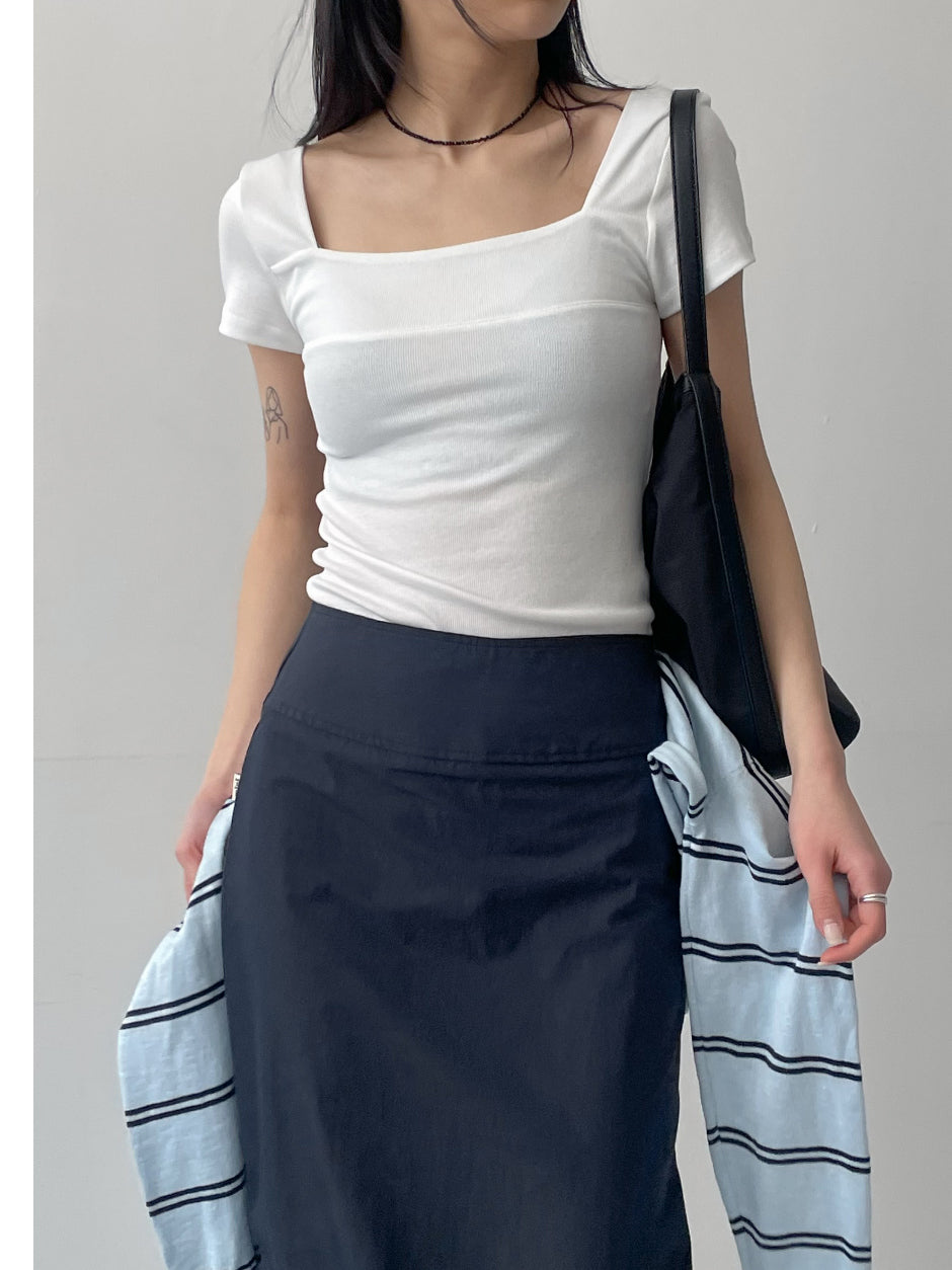 Rie RIb Square Neck Short Sleeve T-Shirt