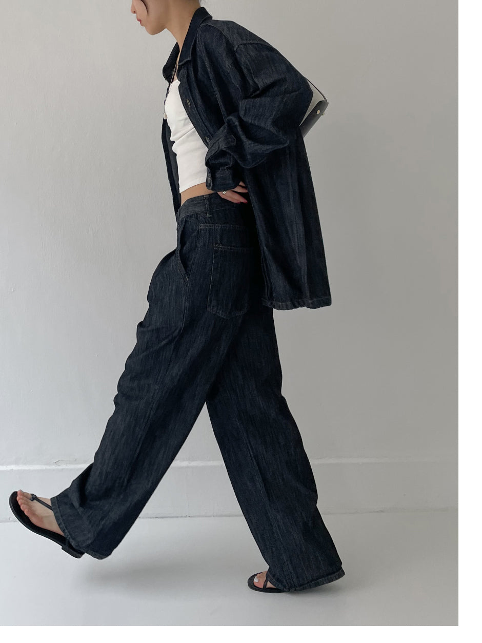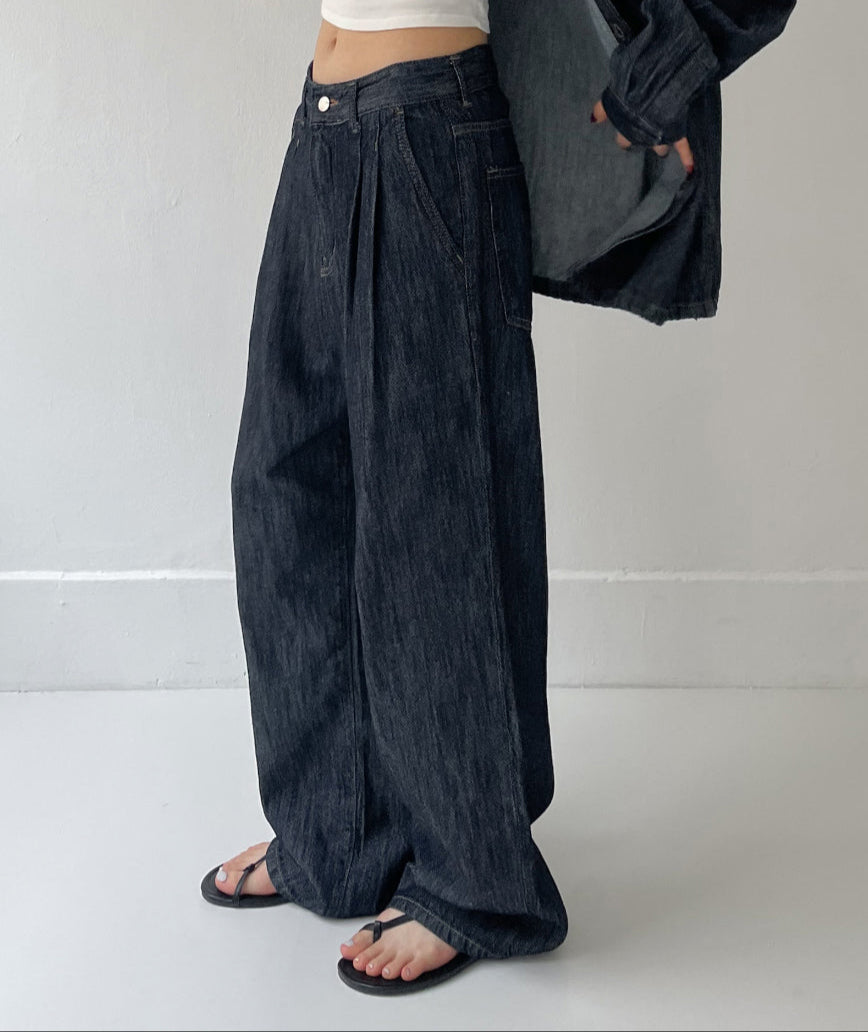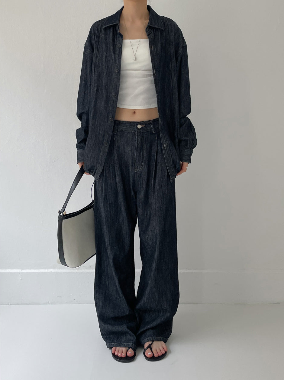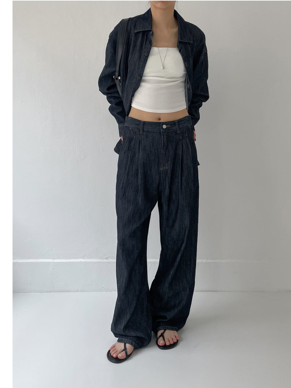 [Setup Available/Unisex] Colin Two Tuck Wide Denim Pants