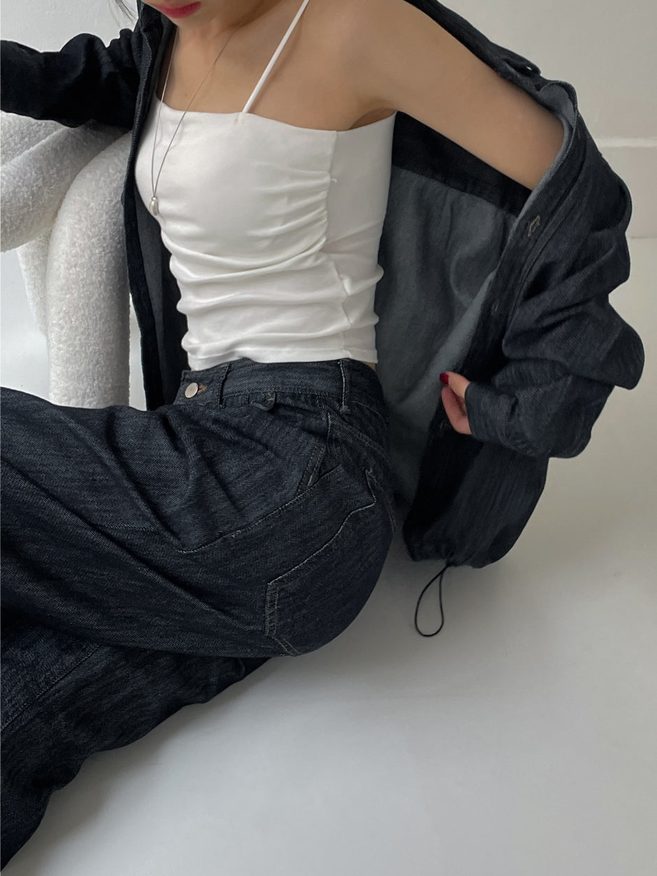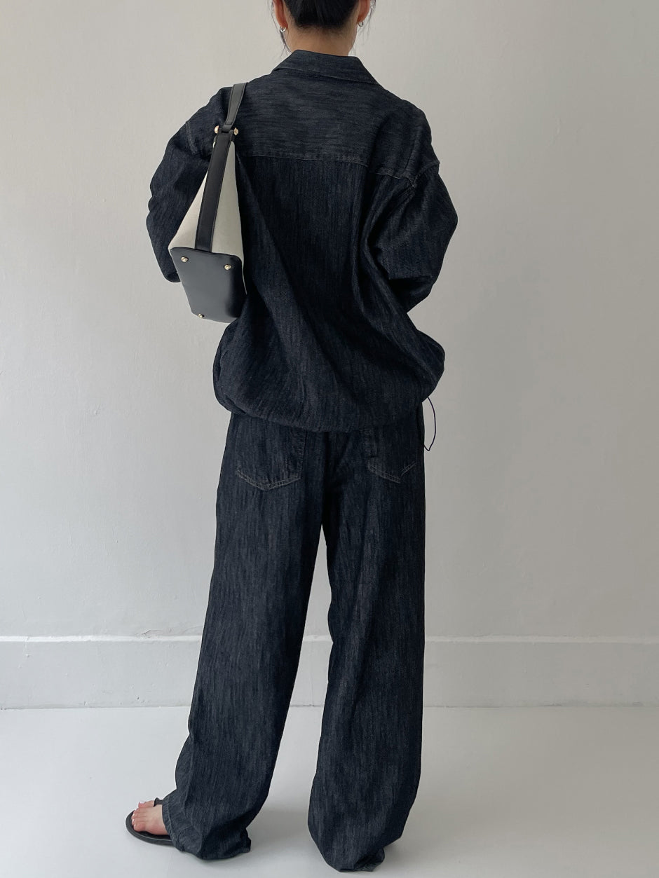 [セットアップ可/男女兼用]コリンツータックワイドデニムパンツ