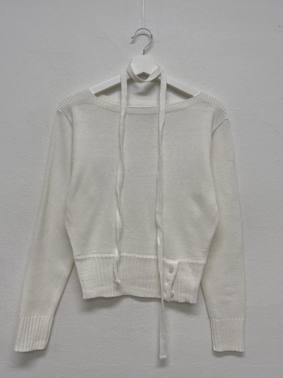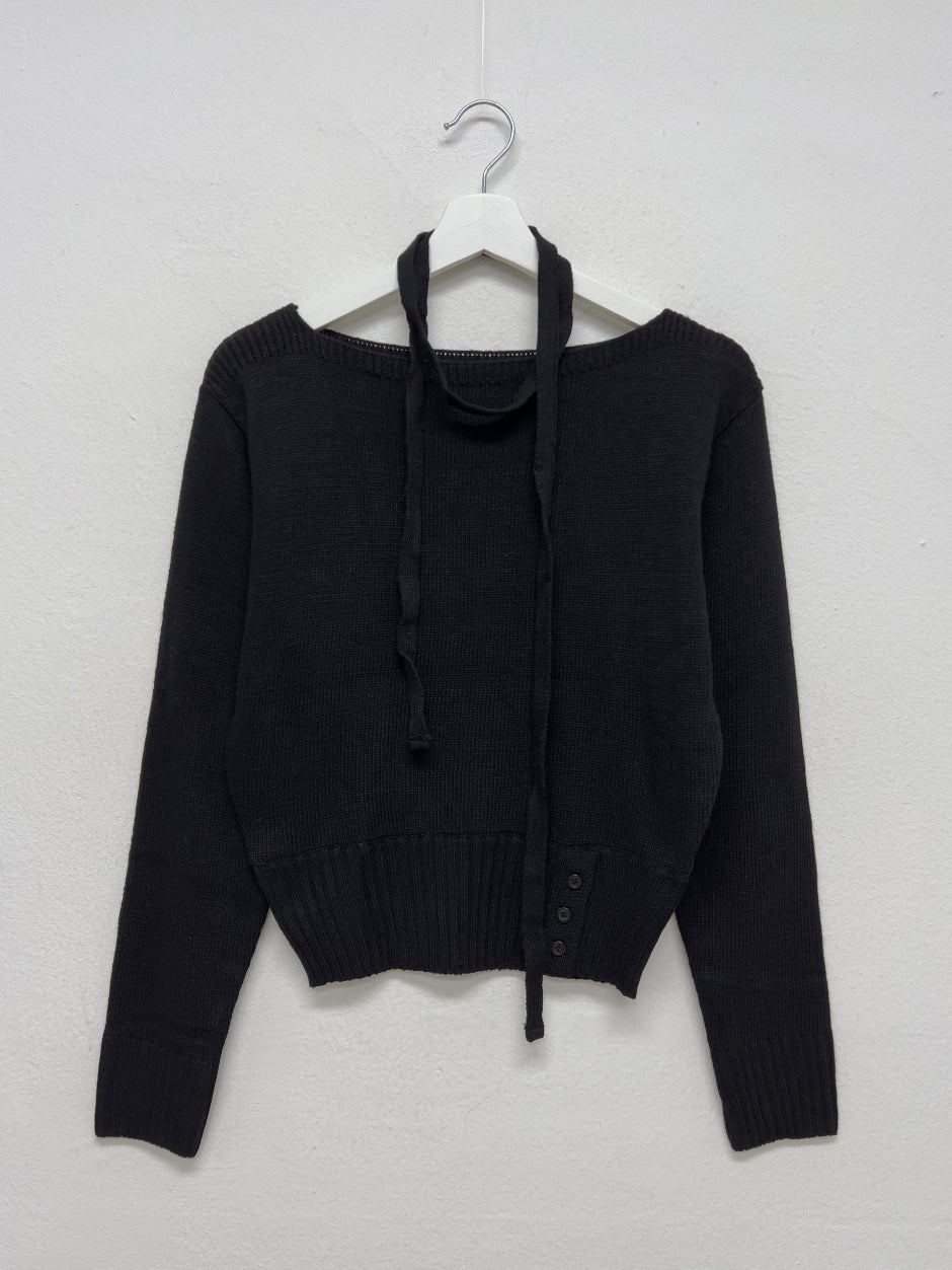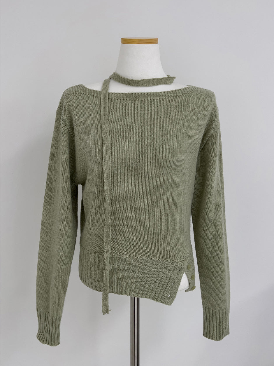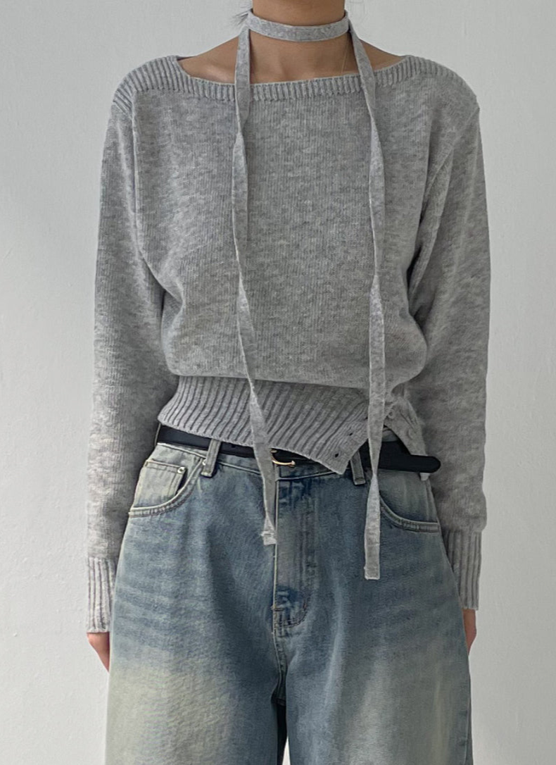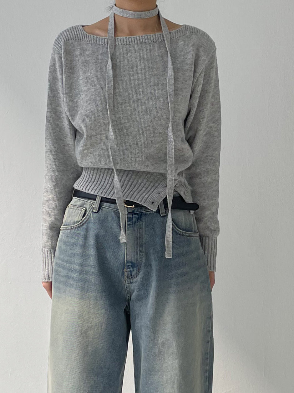 [スカーフSET]トゥユボートネックスリットクロップニット
