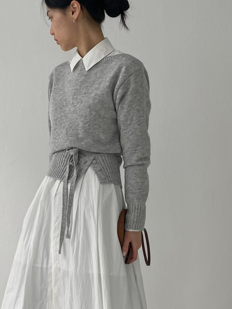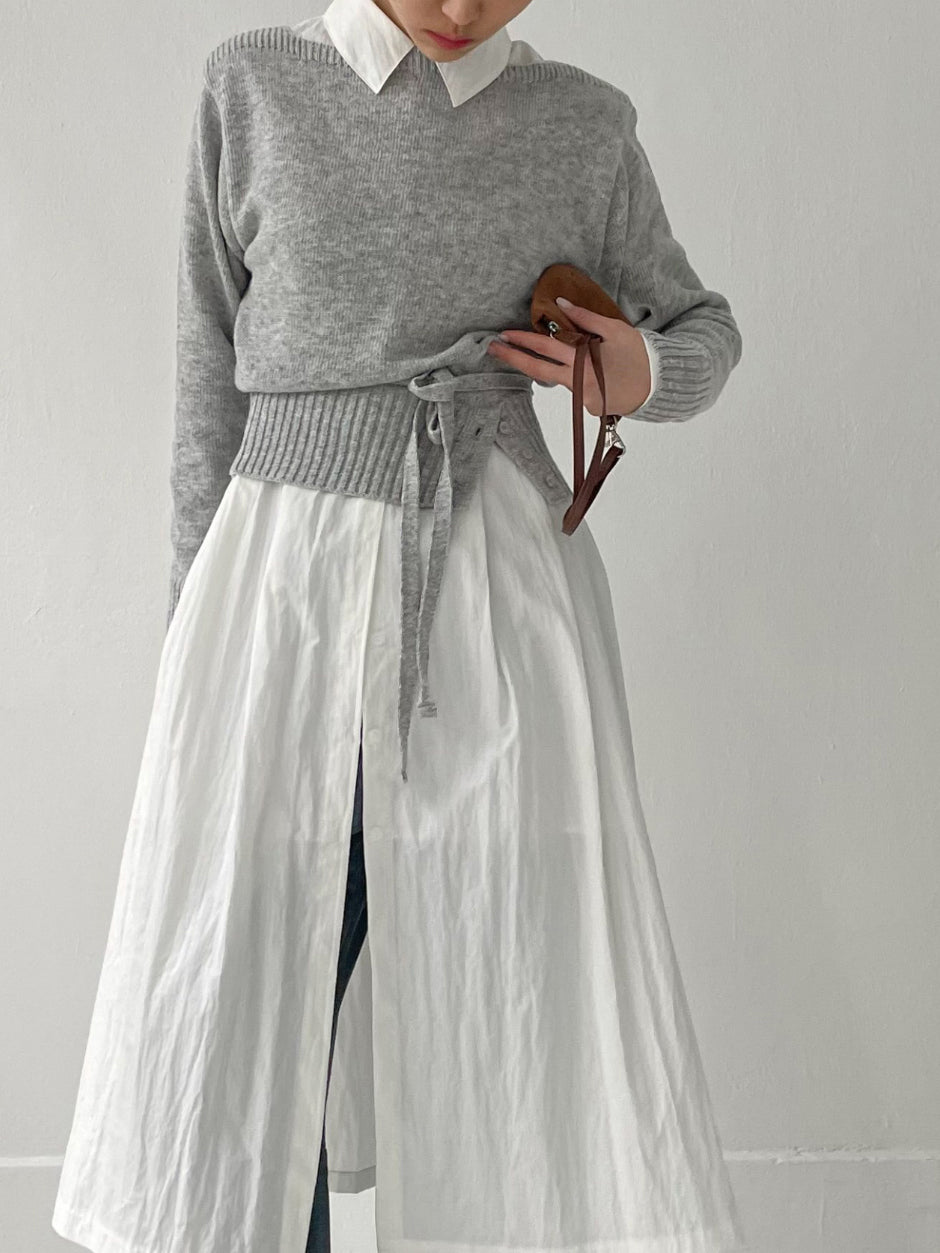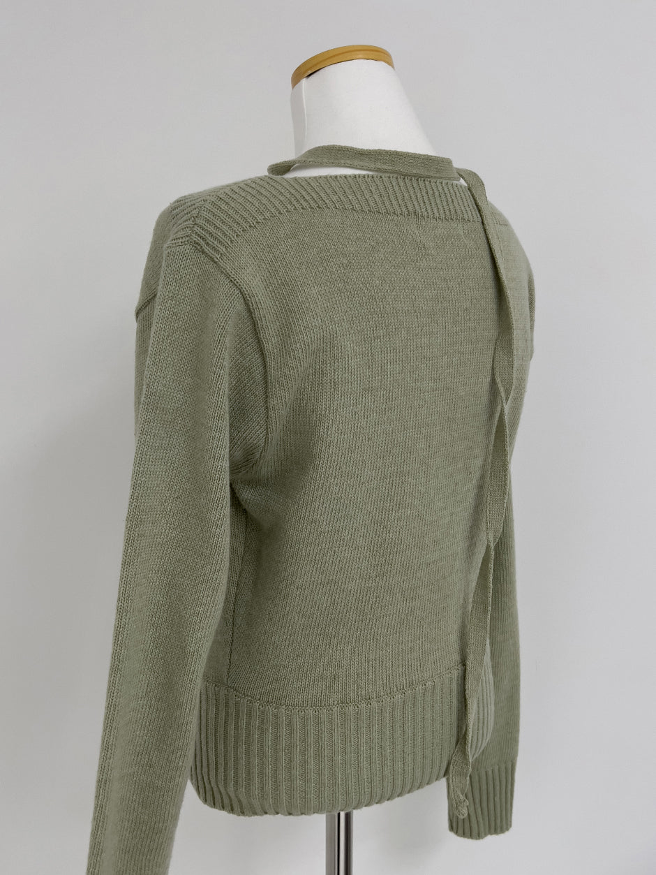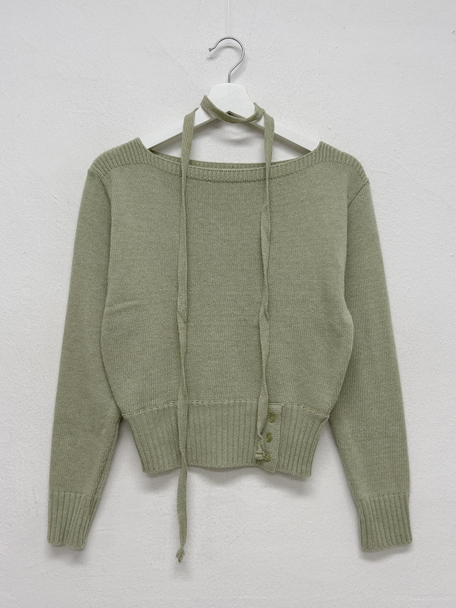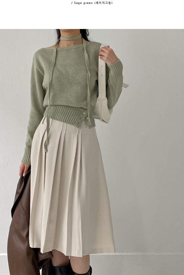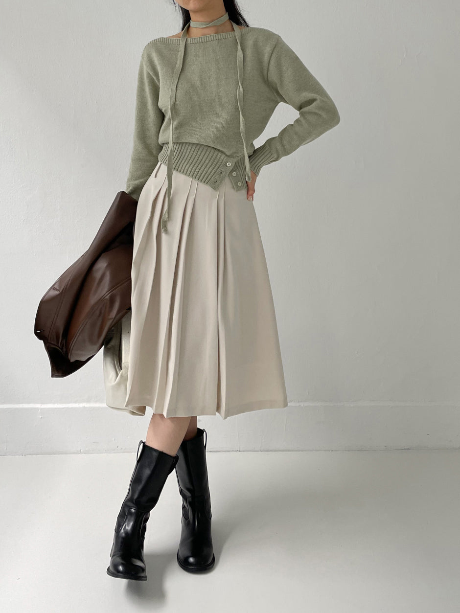 [スカーフSET]トゥユボートネックスリットクロップニット