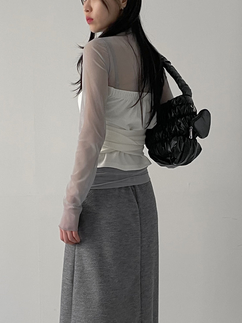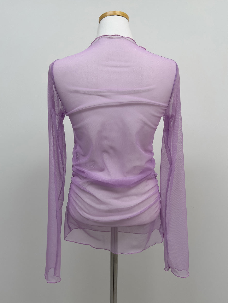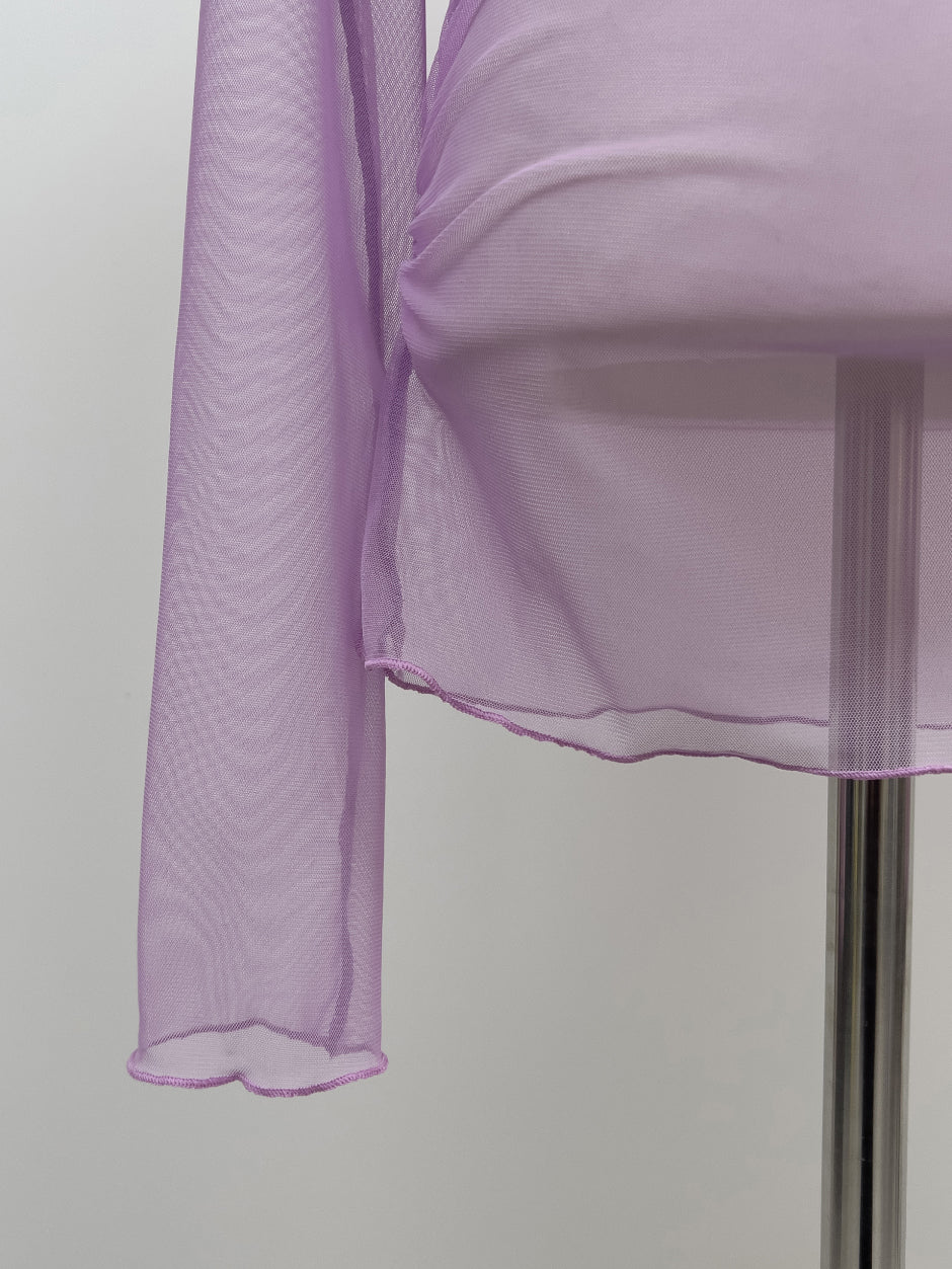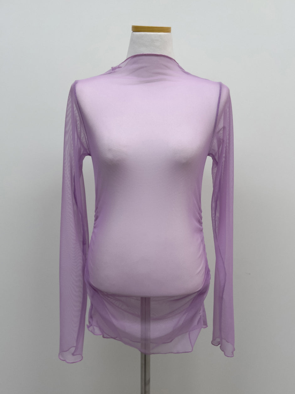シースルーシャーリングレイヤードタートルネックTシャツ