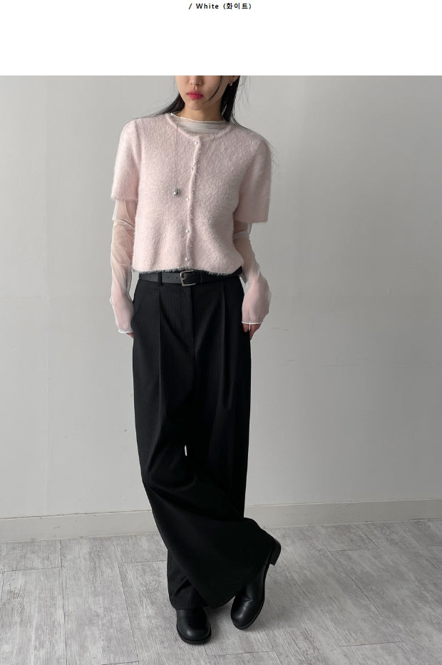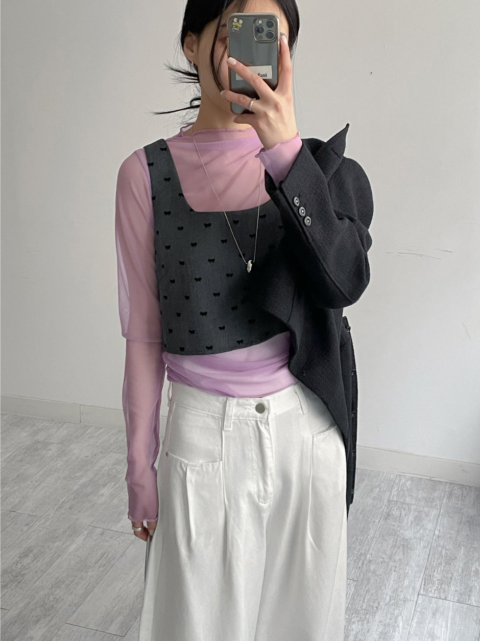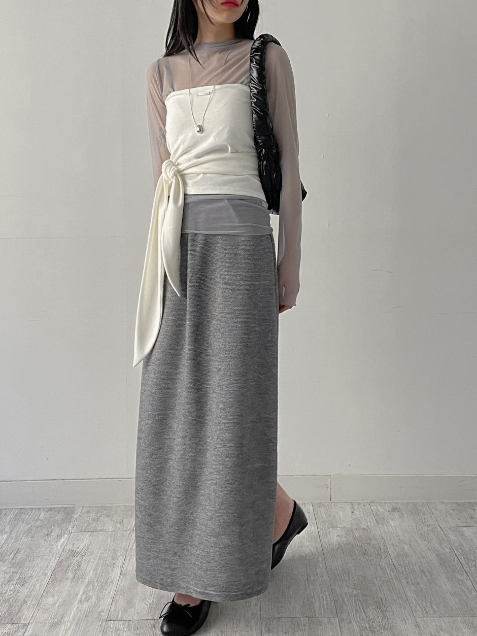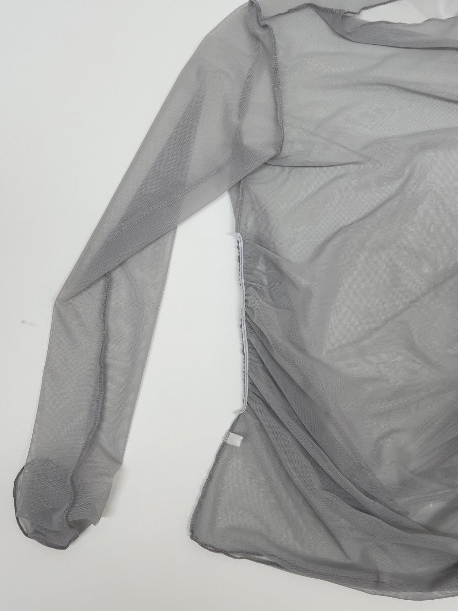 シースルーシャーリングレイヤードタートルネックTシャツ