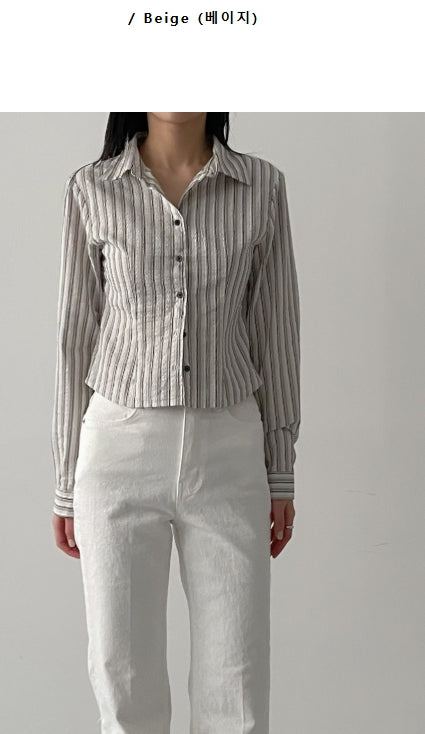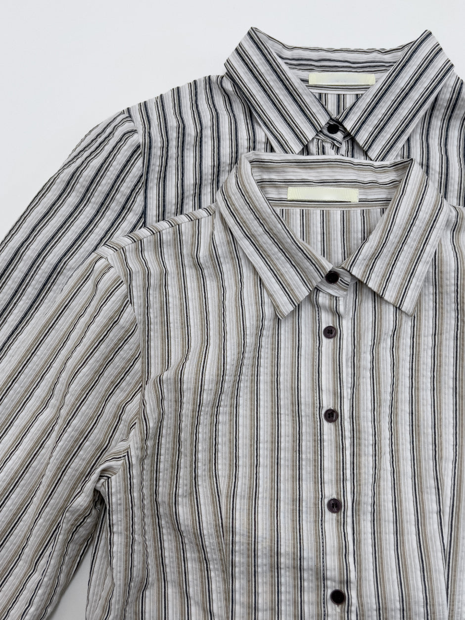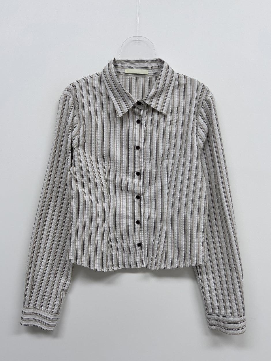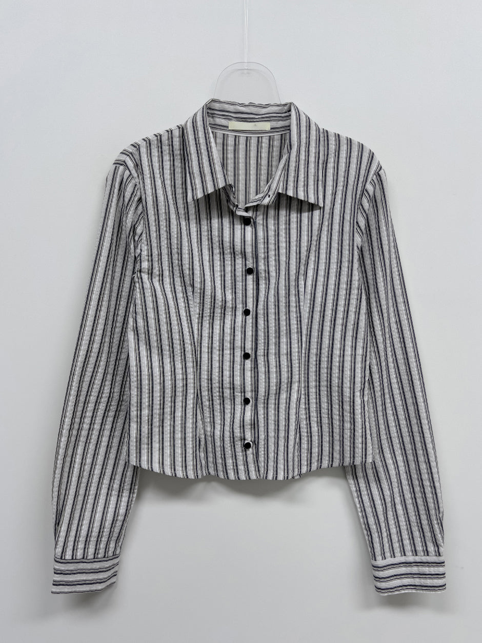 シアサッカーストライプスリムフィットシャツ
