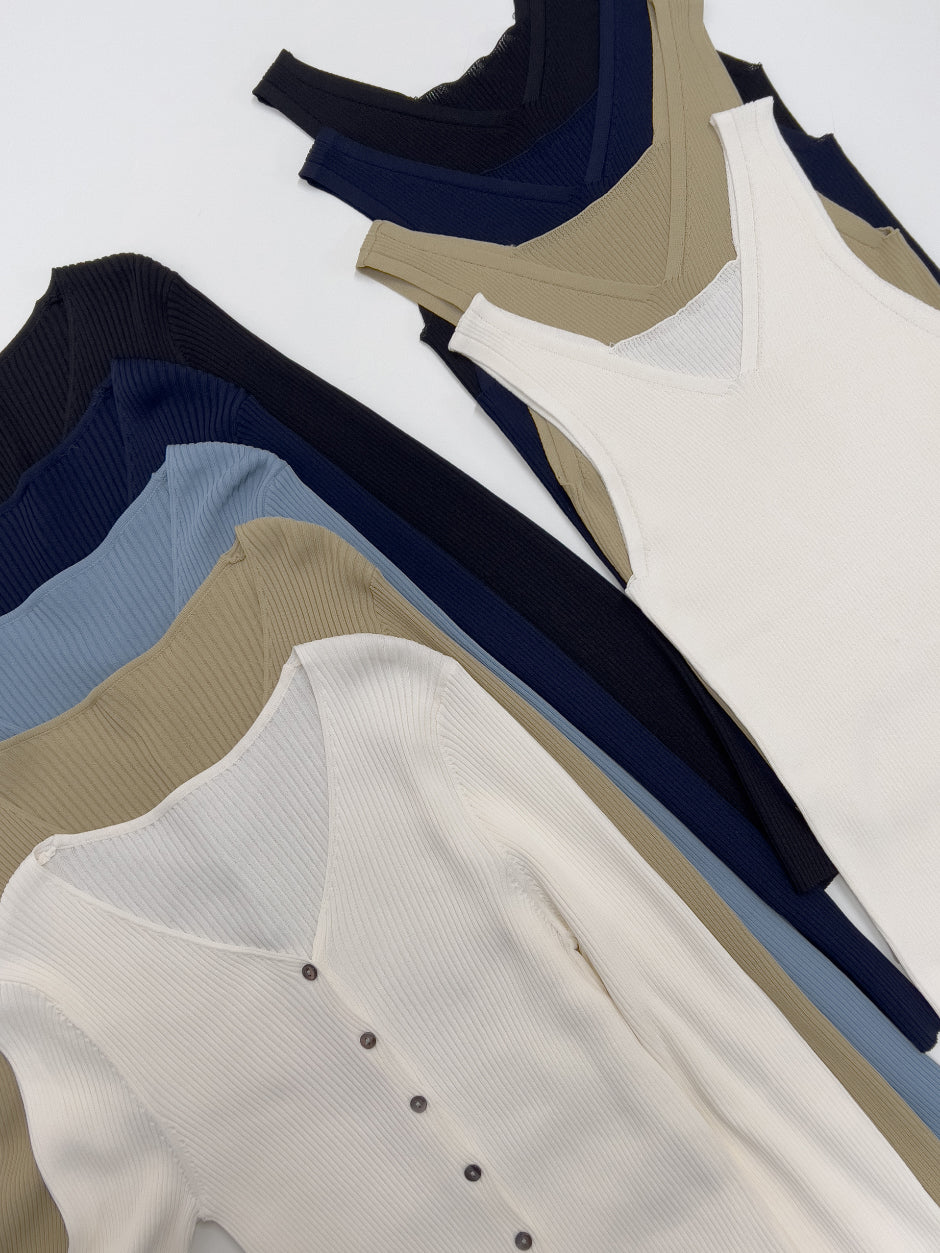 [SET] Ferral Ribbed Cardigan Sleeveless Set