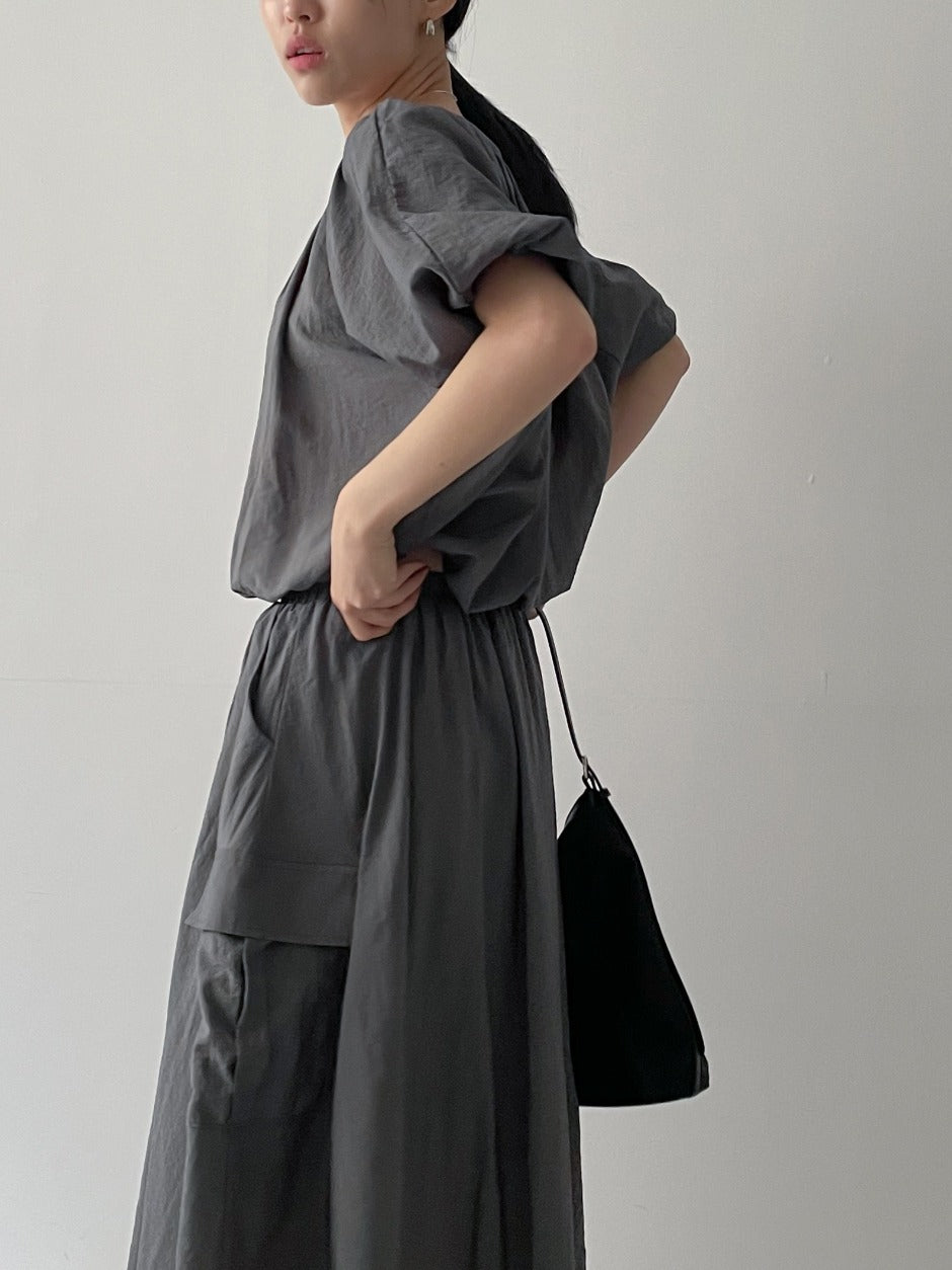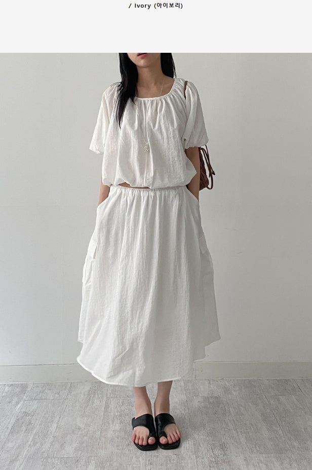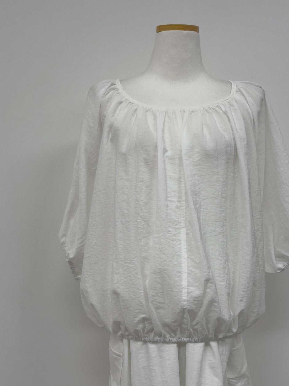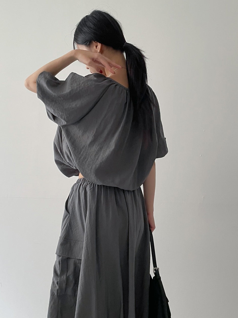 [Setup Available] Denma Balloon Banding Crop Blouse