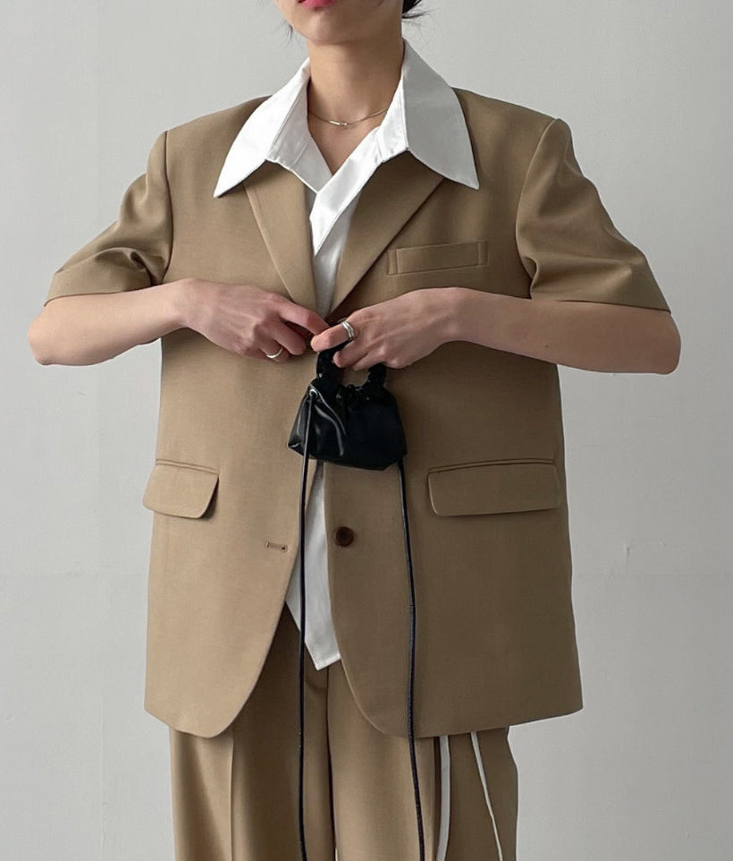 [セットアップ可能]ルミエ3ボタンオーバーフィットハーフジャケット