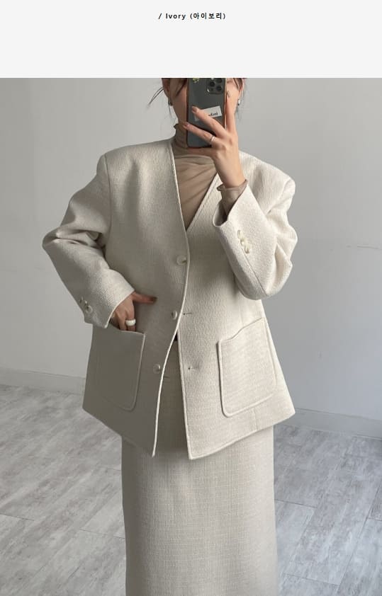 [Setup Available] Monet No Collar Overfit Tweed Jacket