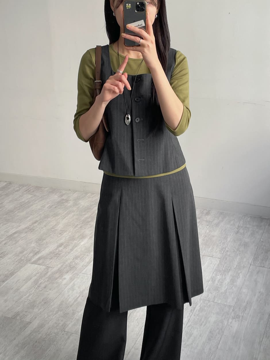 [Setup Available] Phone Stripe Layered Bootcut Slacks