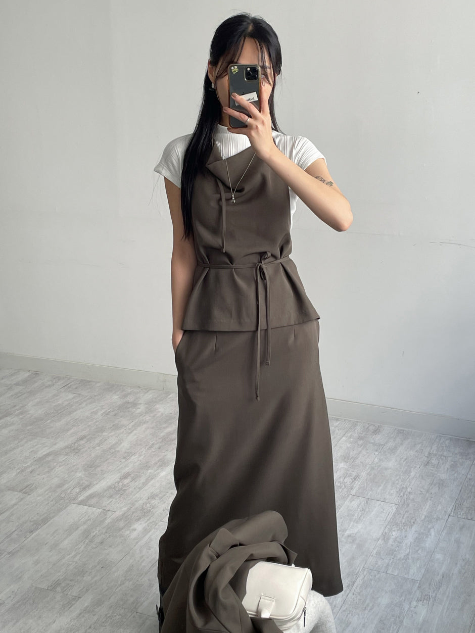 [Setup Available Three-Piece] Bird H-Line Long Skirt