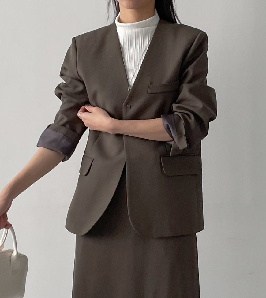 [Setup Available Three-Piece] Bird No-Collared Loose-Fit Jacket