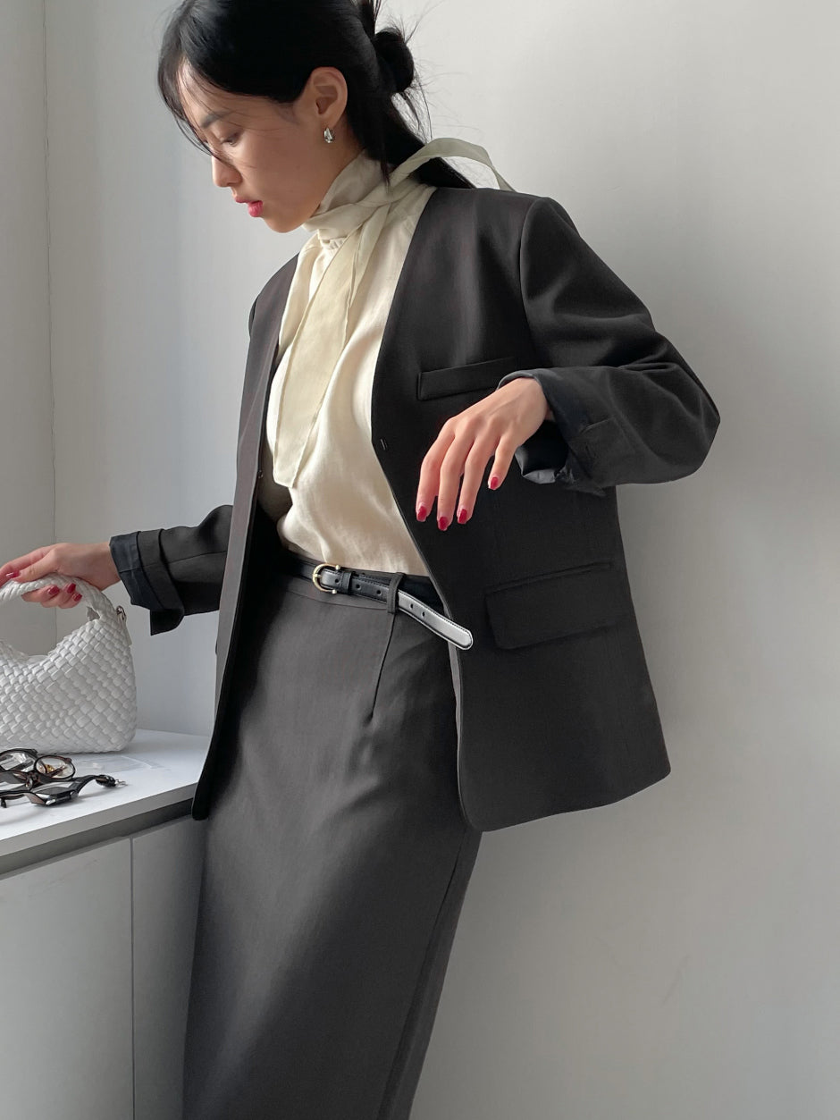 [セットアップ可/スリーピース]バードノーカラールーズフィットジャケット