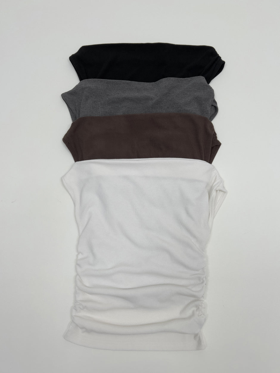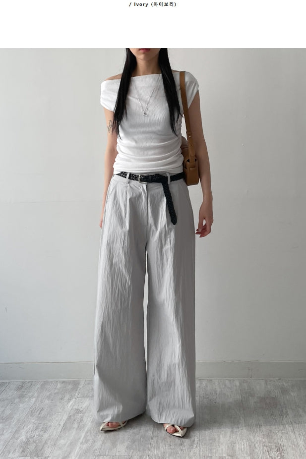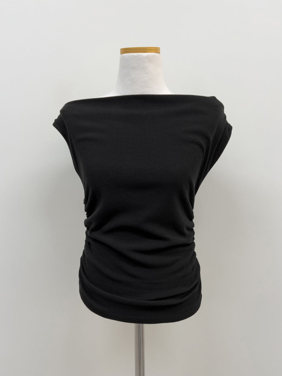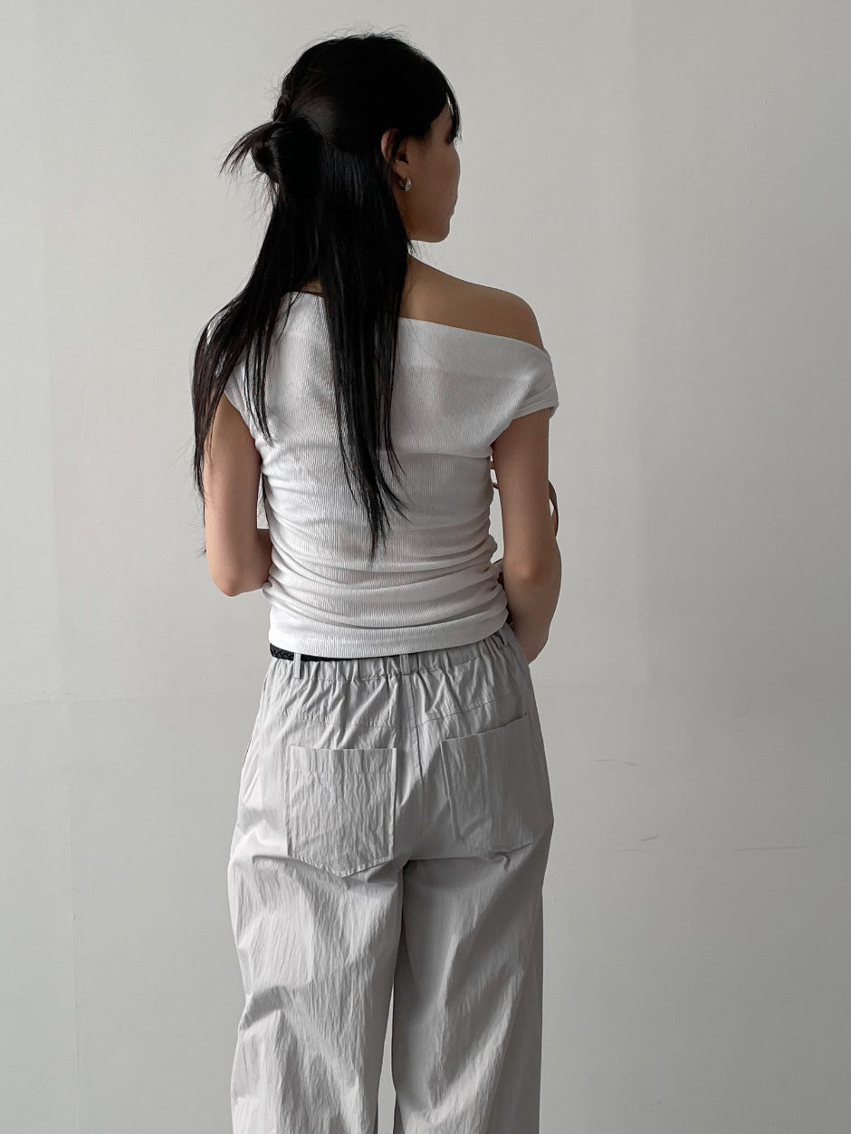 シャーリングオフショルダーTシャツ