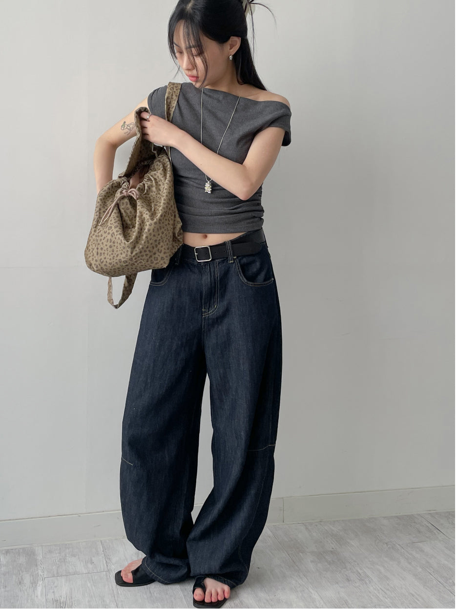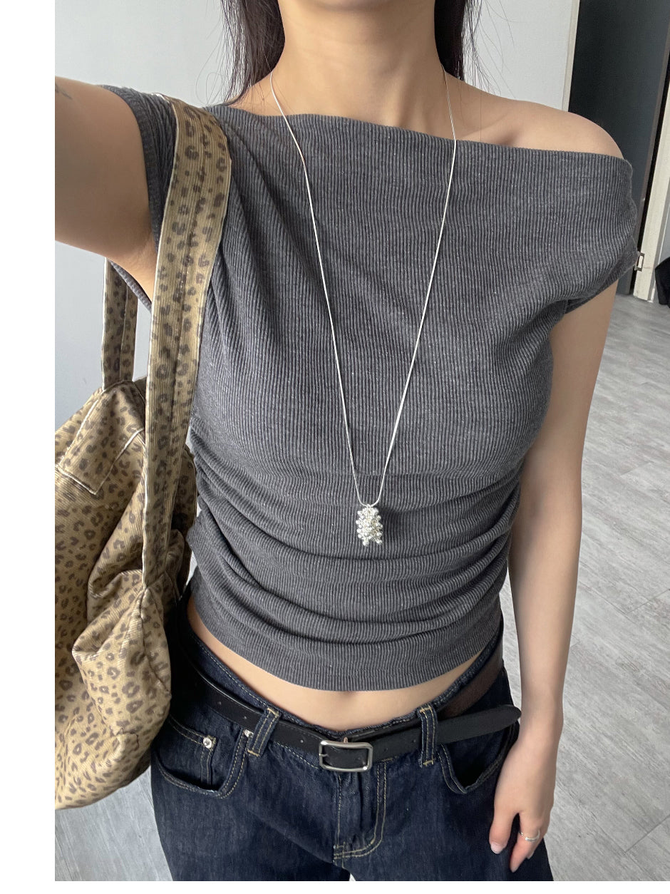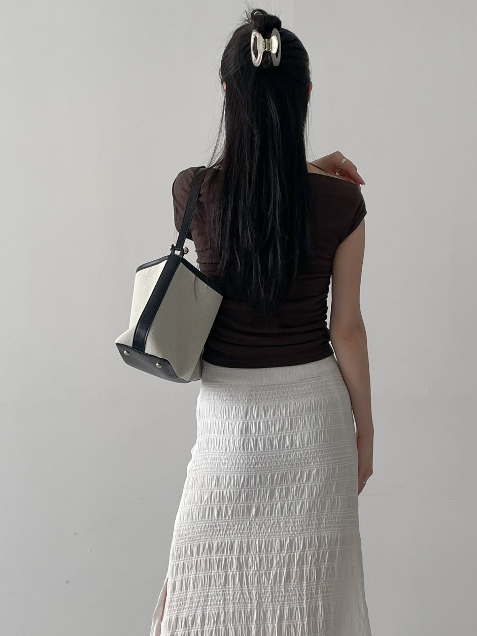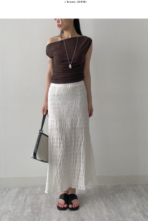 Shirring one off-shoulder T-shirt
