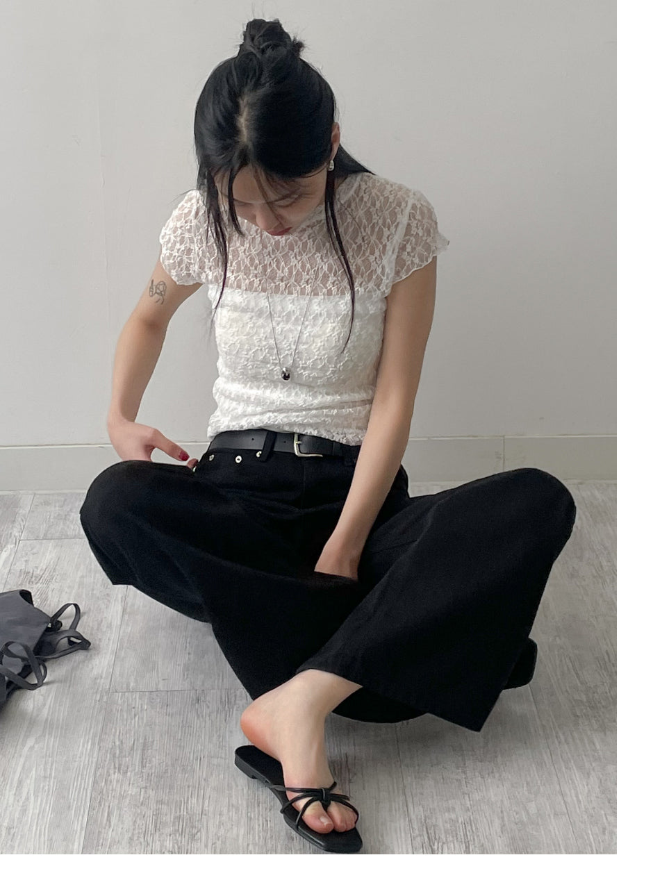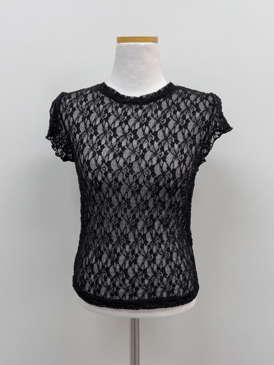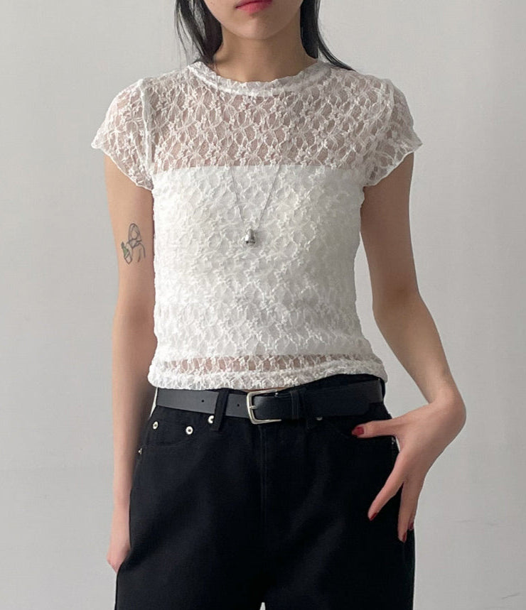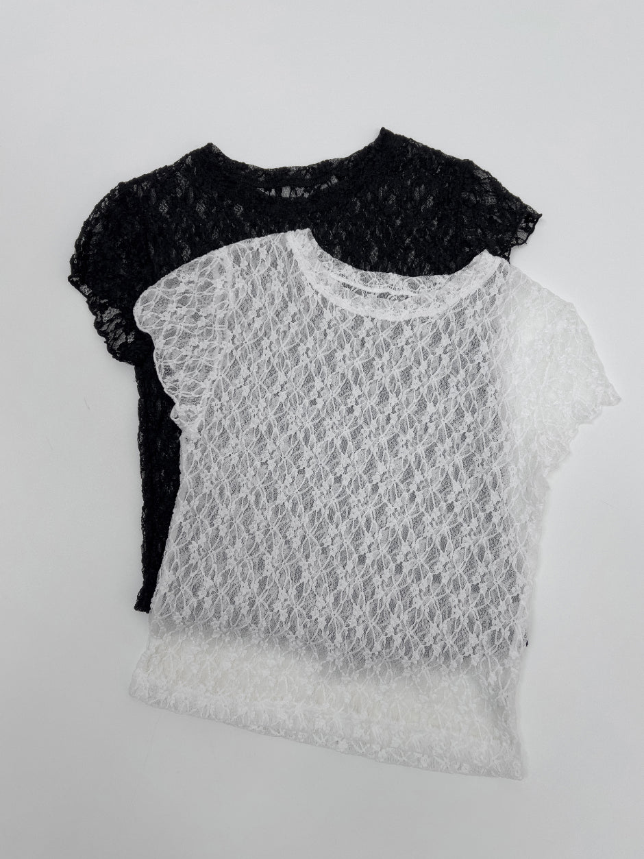 [Short sleeve ver.] Floral Lace See-through T-Shirt