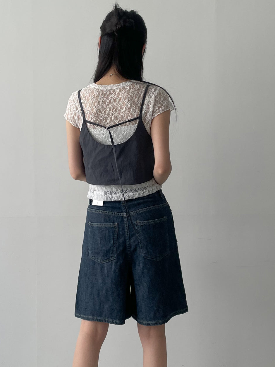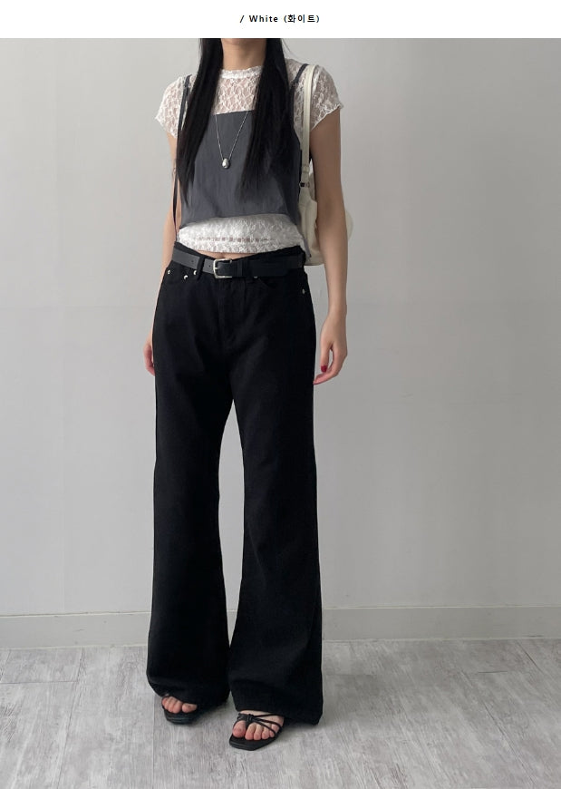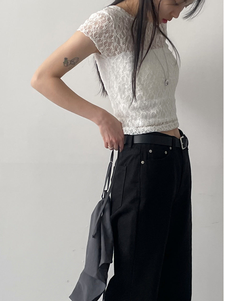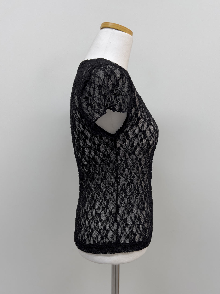 [Short sleeve ver.] Floral Lace See-through T-Shirt