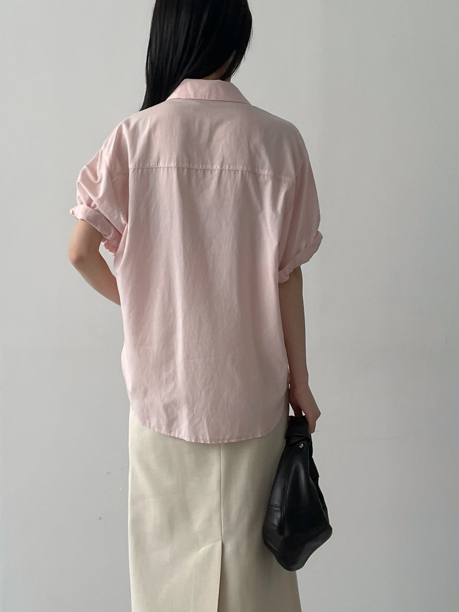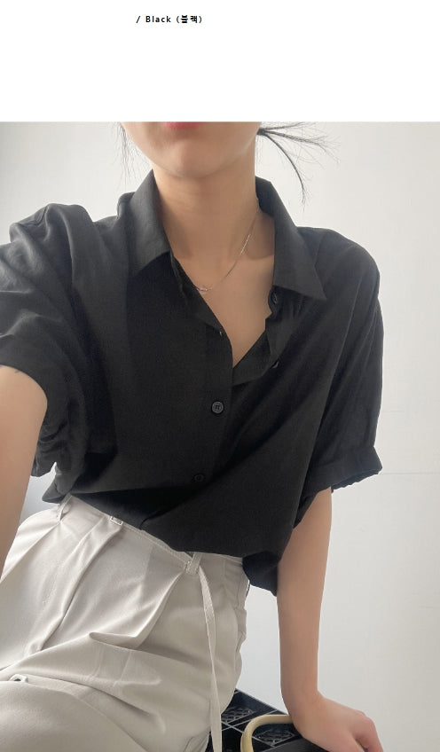 Silky Roll-up Overfit Short Sleeve Shirt
